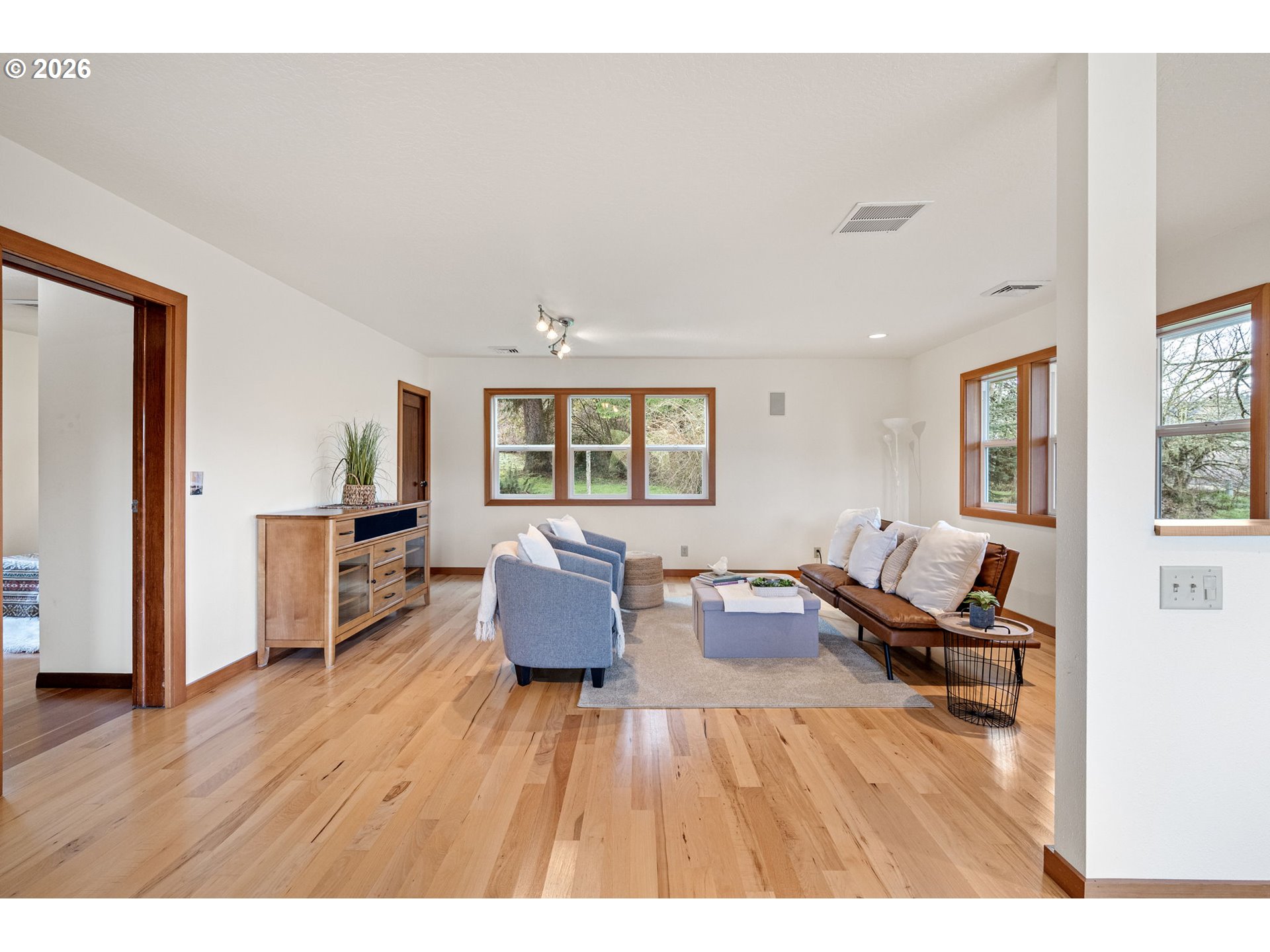 (503) 336-1515OPEN HOUSE Sun 1/18 1pm-3pm. Beautiful property and home with privacy from neighbors and very well maintained. Just over 5 acres, 3 tax lots, zoned EFU. Home is single level that has ample windows for plenty of light and views of the country setting. Wood accents throughout the home give it character and warmth. Updated over the years with a nice separation of space between living areas and bedrooms. Flexible floor plan to adapt to your needs. Primary suite has double sinks and a custom shower. Multiple outdoor living areas with a partially covered and partially uncovered deck off the living room/dining room space. Mudroom and laundry room. Seller previously used closet in mudroom for wine storage. Detached oversized 2 car garage/shop was built in 2007. There is a large barn (38x61) that is used for storage but could but utilized for animals. Driveway is paved. Garden area and multiple mature fruit trees.DSL internet through Monroe Telephone Co, satellite dish from Direct TV.