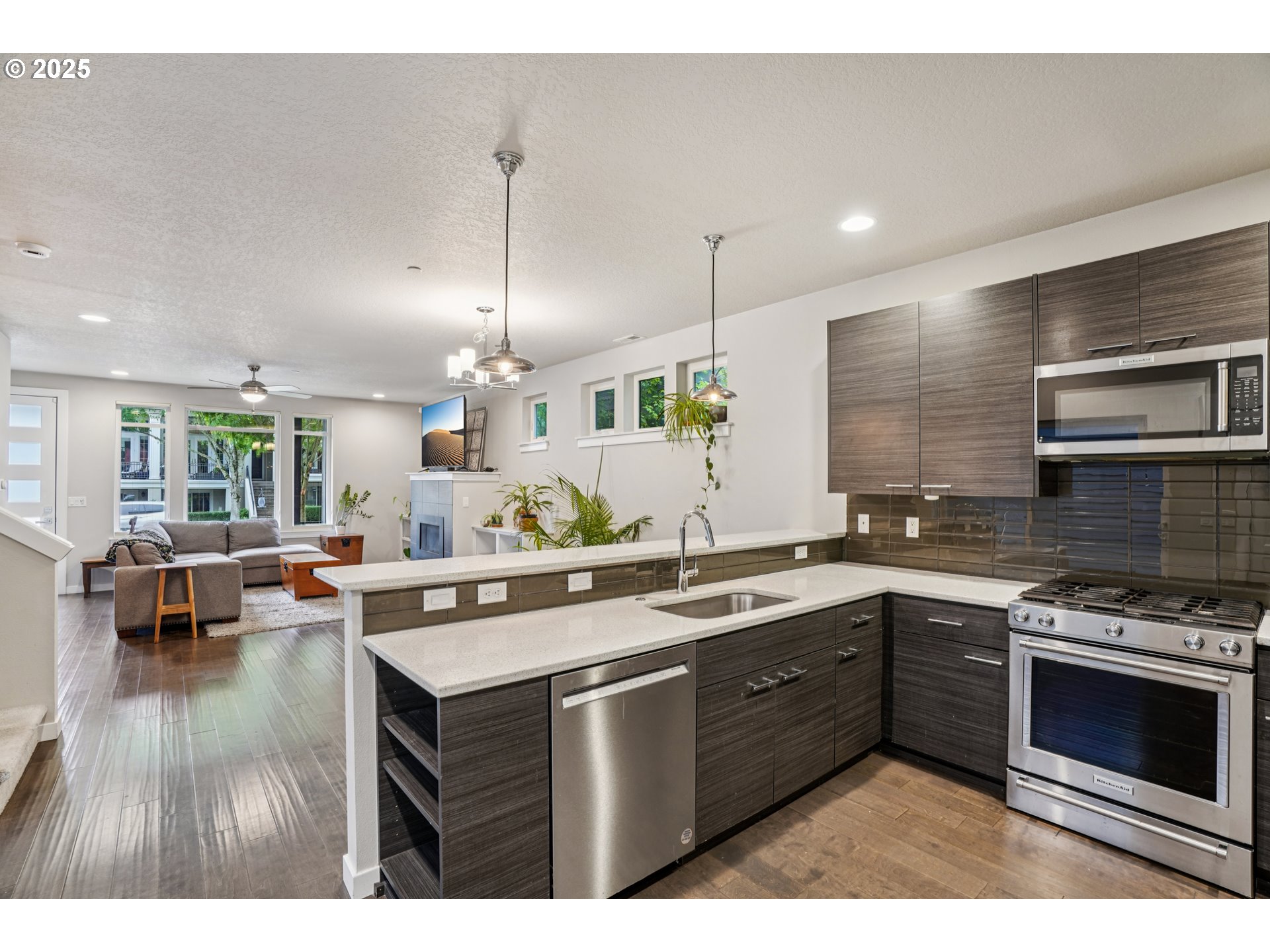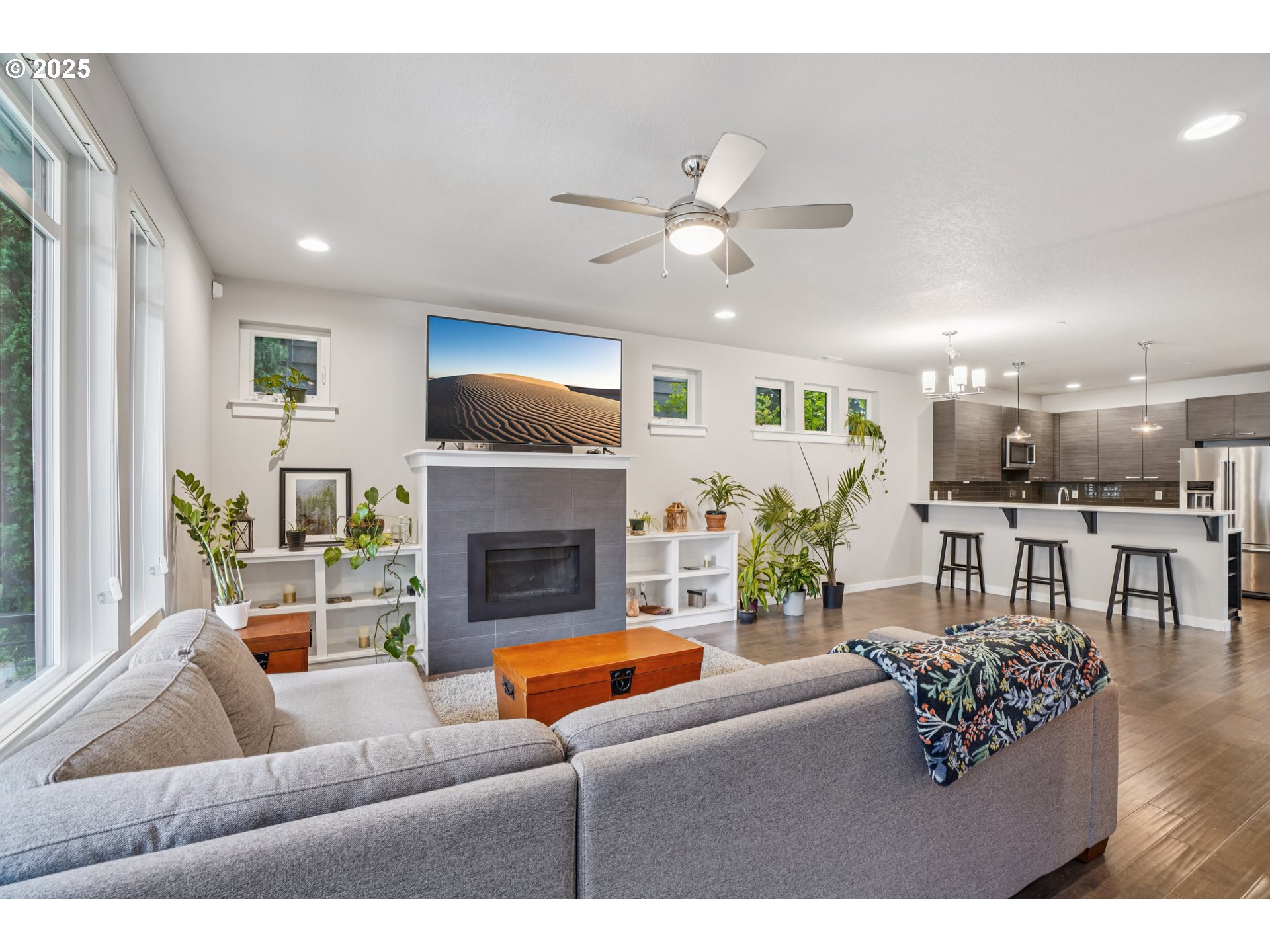 (503) 336-1515Bright, modern living in the awesome Villebois neighborhood. Built in 2016, this 4-bed home delivers effortless everyday comfort with parks, paths, and a seasonal neighborhood market nearby. Step out for fresh produce, coffee, and community events, then come home to a quiet street and an easy low maintenance lifestyle.Inside, soaring 9 ft ceilings and hardwoods on the main level set a warm, open feel. The kitchen is dialed for cooking and gathering with quartz counters, gas range, pantry, and an eat-in bar that flows to dining and a gas-fireplace living room. Large windows bring in great natural light. Slide out to the fenced patio and side yard for pets, grilling, or a morning coffee. Central air keeps things comfortable year-round.The layout works hard: a main-level primary suite with barn-door entry, dual sinks, soaking tub, walk-in shower, and walk-in closet. Two additional bedrooms and a full bath are on the next level. Up top, a versatile third-level suite with a full bath makes an ideal 4th bedroom, guest space, media room, or office. Attached 2-car garage for easy parking and storage. Well-run HOA with commons and neighborhood care. Quick access to I-5 plus nearby parks and the community scene make this a smart Wilsonville home base. This home is ready for your next chapter.