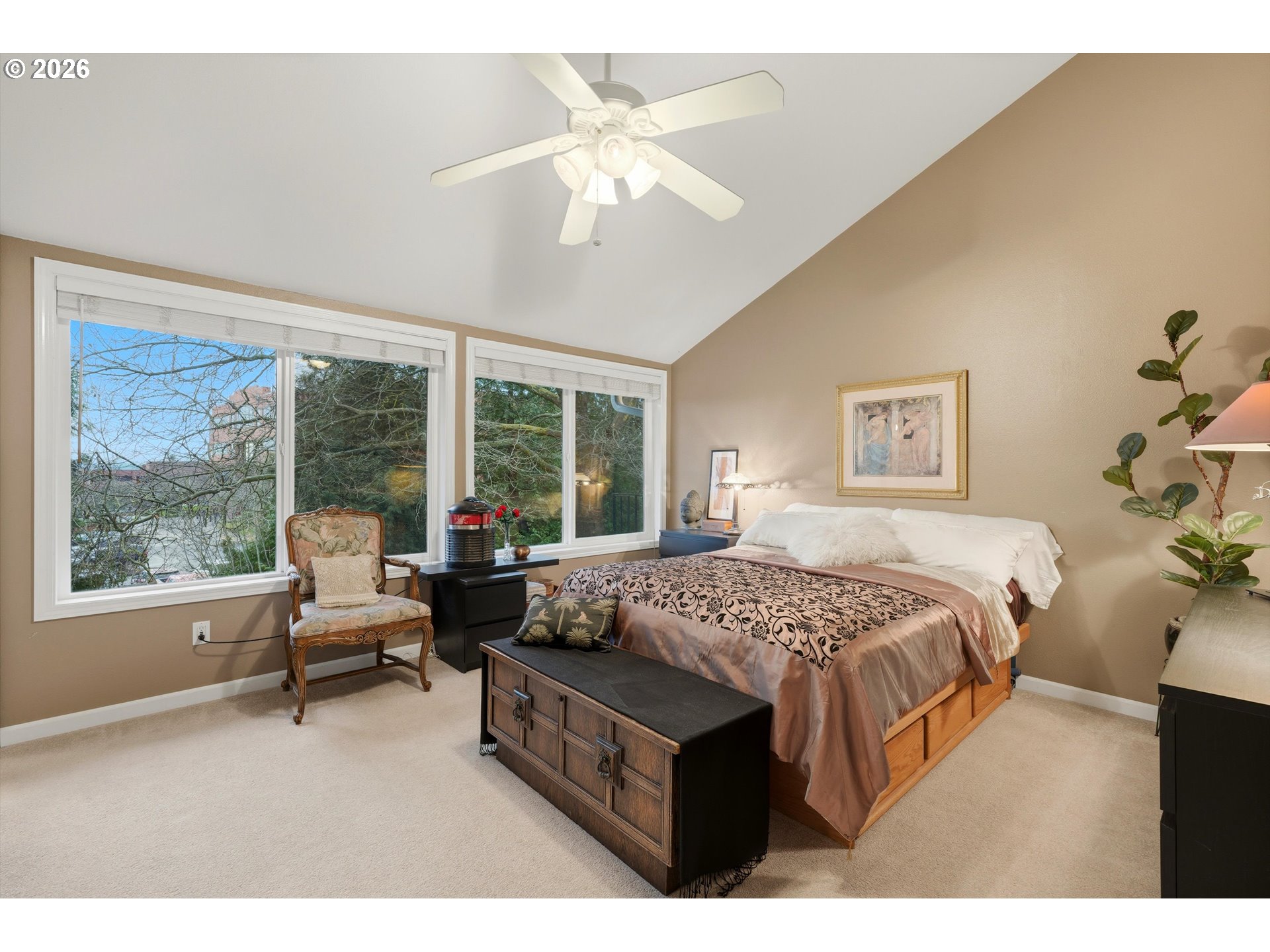 (503) 336-1515Filled with natural light, this designer-owned condo offers rare privacy, thoughtful updates, and everyday convenience. Multiple skylights and a distinctive rounded wood-burning fireplace create warmth and character, while the private patio feels like a true retreat—lush and leafy beneath a Sycamore canopy in summer, with year-round privacy provided by a tall hedge. Thoughtful updates include Velux solar skylights with remote-controlled shades, triple-pane windows, faux-exposed beams, and vaulted ceilings in the primary suite. An detached garage with a pull-down ladder provides valuable additional attic storage—an uncommon perk in condo living. Located just across Sunnyside Road from Kaiser, shopping, and quick I-205 access, this home balances comfort, efficiency, and low-maintenance living. With no rental cap, this condo offers flexibility for both owner-occupants and investors.