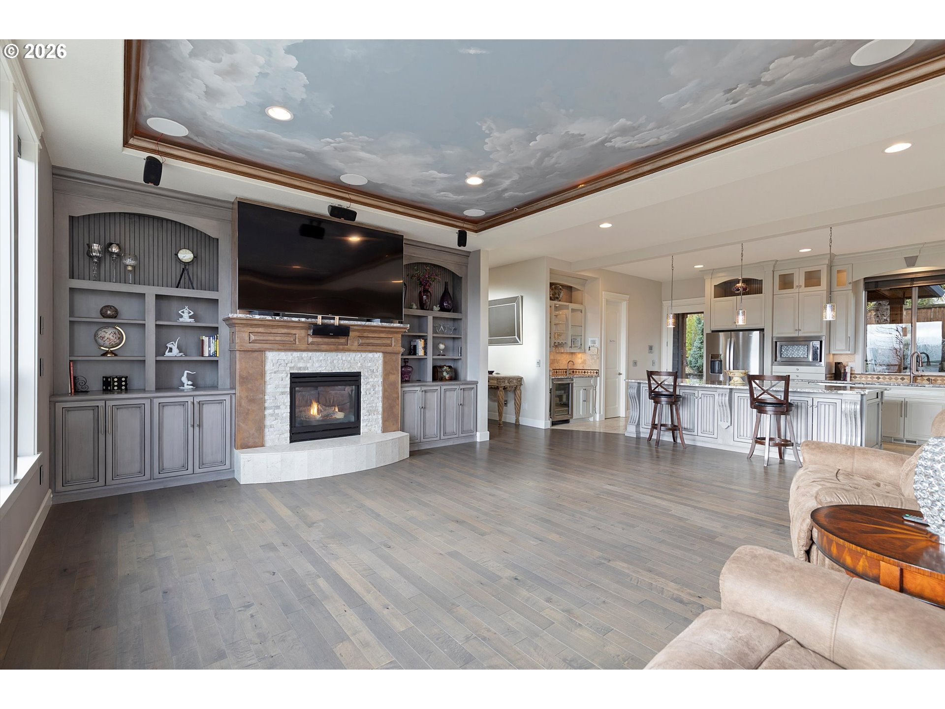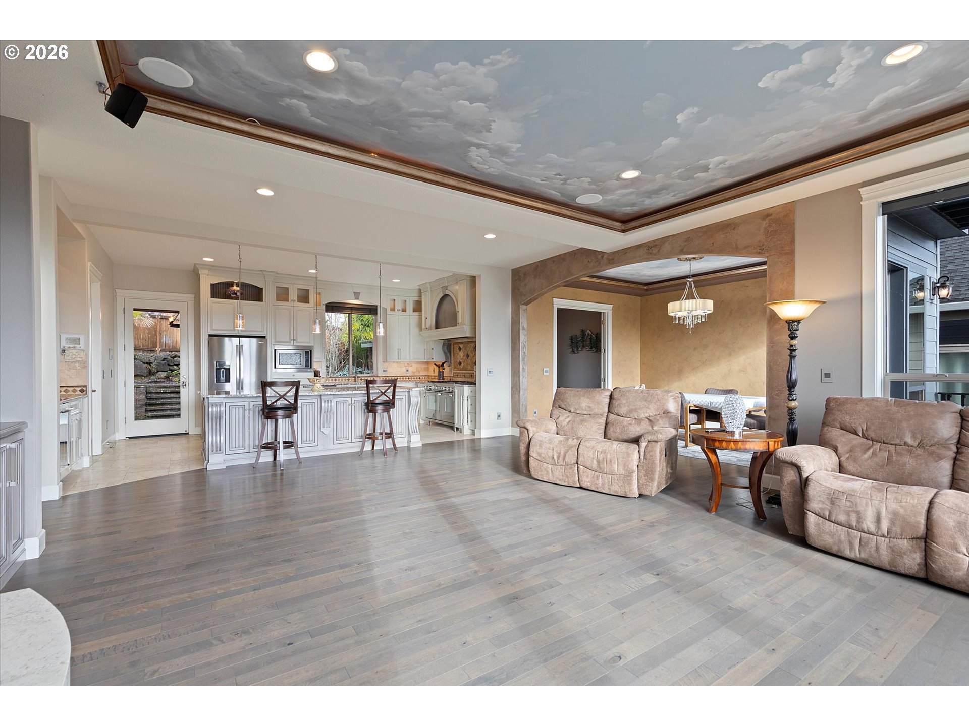 (503) 336-1515Exquisite custom home offering sweeping valley views. The expansive gourmet kitchen and great room serve as the centerpiece of the home, featuring 10-foot ceilings and high-end appliances. Custom hand-painted tray ceilings accent the dining room and primary bedroom, complemented by beautiful flooring throughout. Enjoy entertaining with a beverage bar, large pantry, and direct access to a private outdoor beautifully covered patio featuring extensive stamped concrete, a tranquil water feature, and mature landscaping. The spacious primary suite offers breathtaking views, a private balcony, and a luxurious bathroom complete with a makeup area, walk-in shower, and jetted tub. This exceptional home truly has it all including: Abundant storage areas, generously sized rooms, large laundry room with sink, Jack & Jill bath, office with built-ins, a workshop area in the garage and exercise room, extensive built-ins throughout home, all located in a beautiful upscale neighborhood with amazing views. A must see!