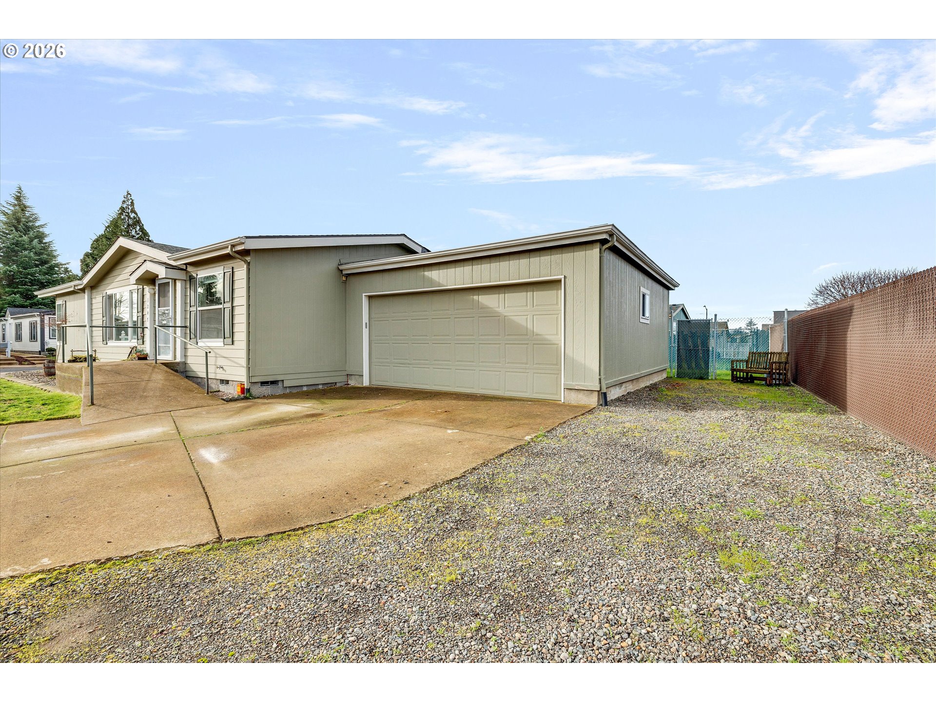 (503) 336-1515Your 'Someday' Just Hit the Market: Comfort, Convenience & Peace of Mind! This spacious 1,244-square-foot double-wide with a Garage sits on a prime corner lot, offering a bright and open floor plan with high ceilings, elegant rounded corners, that create an airy, inviting atmosphere. The home features three comfortable bedrooms and two full bathrooms, including a dedicated laundry room complete with a washer and dryer. All appliances are included, and the home is already strapped to meet earthquake safety requirements. So Bring your FHA financing! The property has been meticulously maintained with significant big-ticket upgrades, including a new exterior paint job in 2019, a durable, copper-infused 40-year roof installed in 2017, Newer Water Heater and a Heat Pump! Did I mention, the 2- Car garage and additional parking pad? Outside, you’ll find a 6-foot cyclone fence equipped with a privacy screen, providing a secure and secluded feel. Ideally situated on the edge of town, and just a short, scenic drive away, from Oregon City. Discover a rare opportunity where uncompromising quality meets true affordability. Your dream home is ready but it won't wait forever!