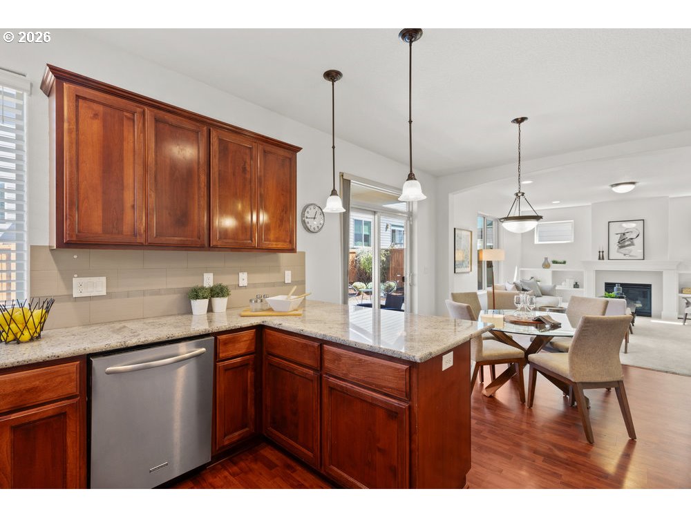 (503) 336-1515Modern design, thoughtful layout, and unbeatable location come together at 13543 SE Almond Drive. This 4-bedroom, 3-bath home offers over 2,500 sq ft of versatile living space, complete with standout features like a third full bathroom and 612 sq ft of dedicated garage storage. The open-concept main floor features a spacious living area, dining room, and a well-appointed kitchen with stainless steel appliances, a large island, and ample storage. A full bathroom and bedroom on the main level create the perfect setup for guests, remote work, or multigenerational living.The home has been freshly painted throughout, and the three upstairs bedrooms feature brand-new flooring. The light-filled primary suite includes a walk-in closet and en suite bath, while a third full bathroom, laundry room, and bonus loft provide flexibility for any lifestyle.The backyard offers a flat lawn, raised garden beds, and direct access to green space through a private gate—ideal for play, pets, or relaxing outdoors. The oversized garage delivers rare additional storage or workshop potential, with 612 sq ft of space not included in the main square footage.Located on the same street as Pfiefer Park and just two blocks from Rock Creek Middle School and Clackamas High School, this home also offers unbeatable access to local dining, shopping, and the seasonal farmers market—all just minutes away. A perfect blend of comfort, functionality, and convenience in one of Clackamas’ most desirable neighborhoods.
