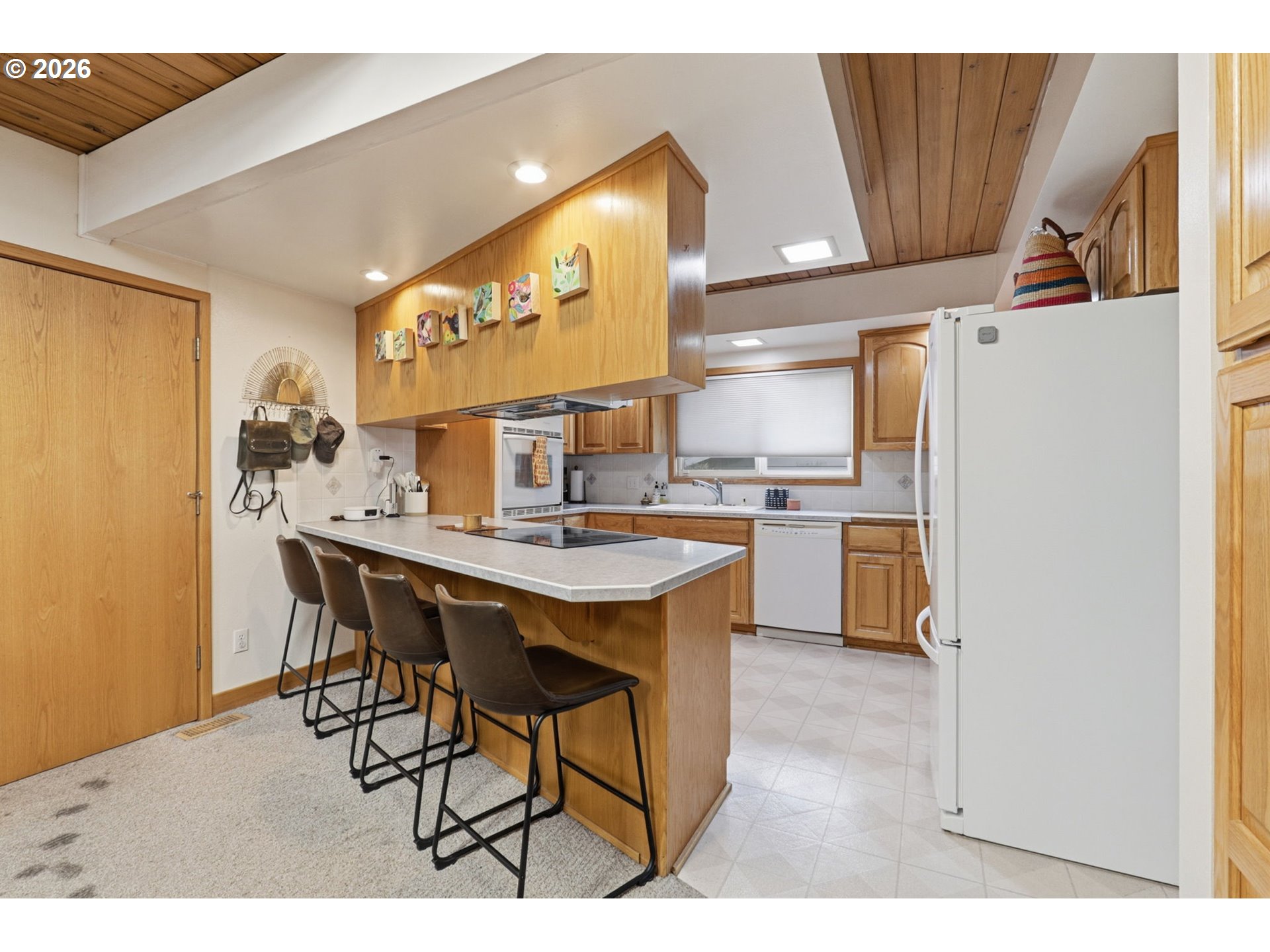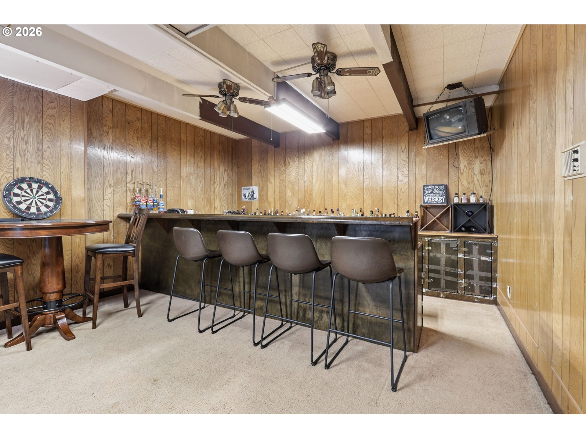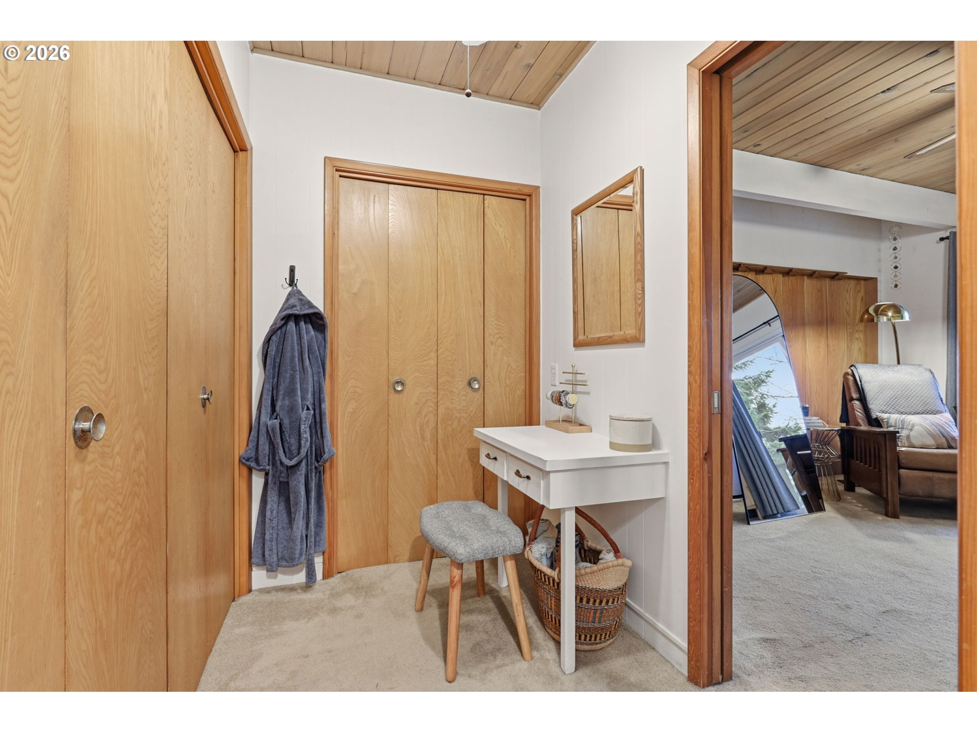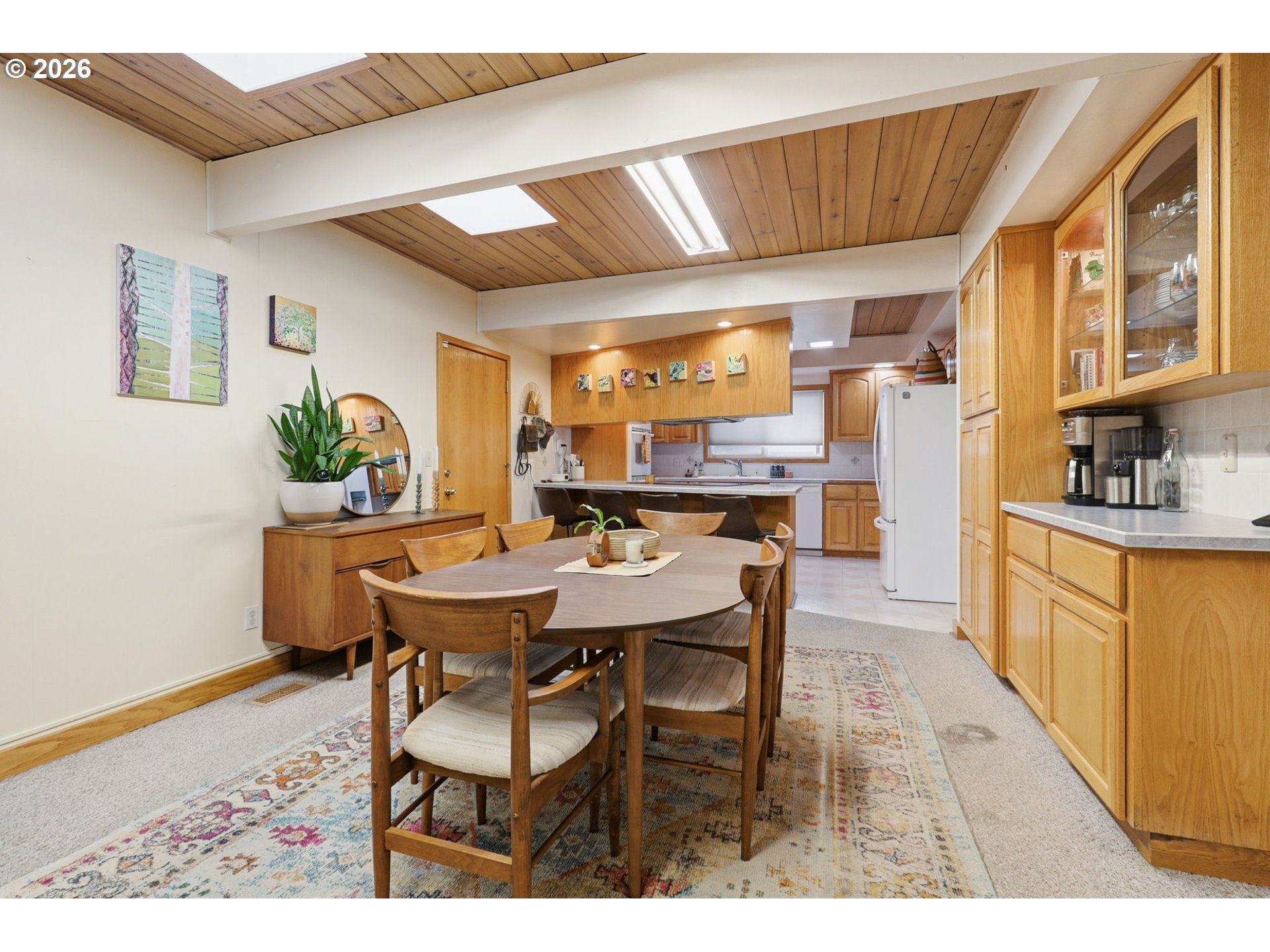 (503) 336-1515Gorgeous Mid-Century Modern with iconic architectural lines and timeless design, this 4 bedroom, 2.1 bath home features soaring vaulted ceilings with dramatic beams, striking angles, warm wood character, and a wall of windows that floods the interiors with natural light. A statement fireplace anchors the main living space, while built-in shelving adds both function and style, including a main-level office with rich wood paneling and custom built-ins that feels like a private library or den. The flexible layout includes a daylight basement with a separate entrance, offering exceptional potential for a second living area, guest suite, multigenerational living, creative studio, or private work-from-home space, plus a “secret” tucked-away second office downstairs for quiet focus. A standout opportunity to make a one-of-a-kind architectural home your own.