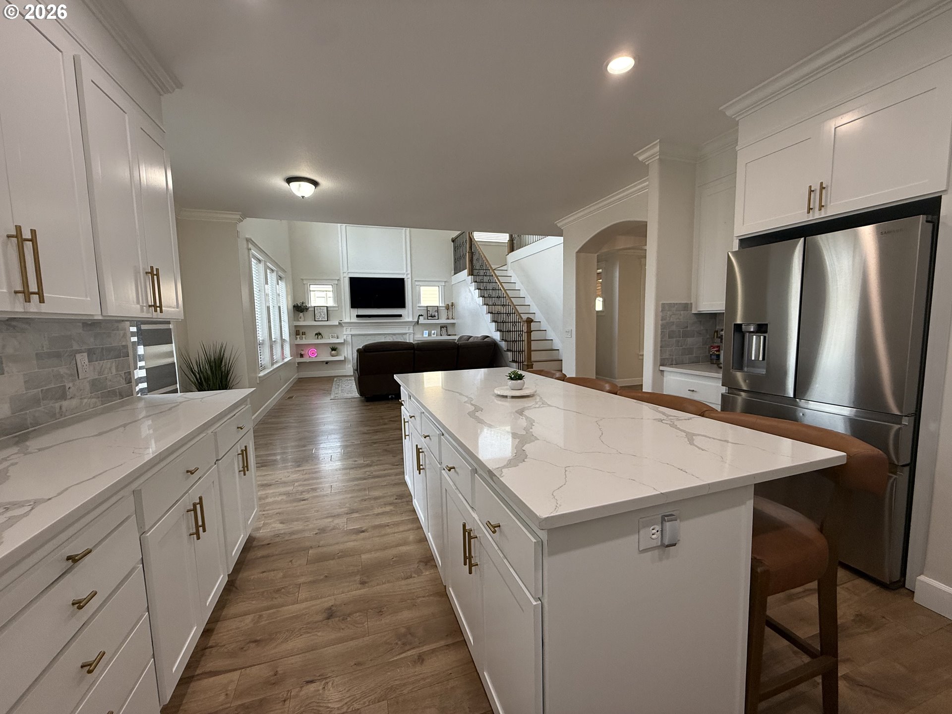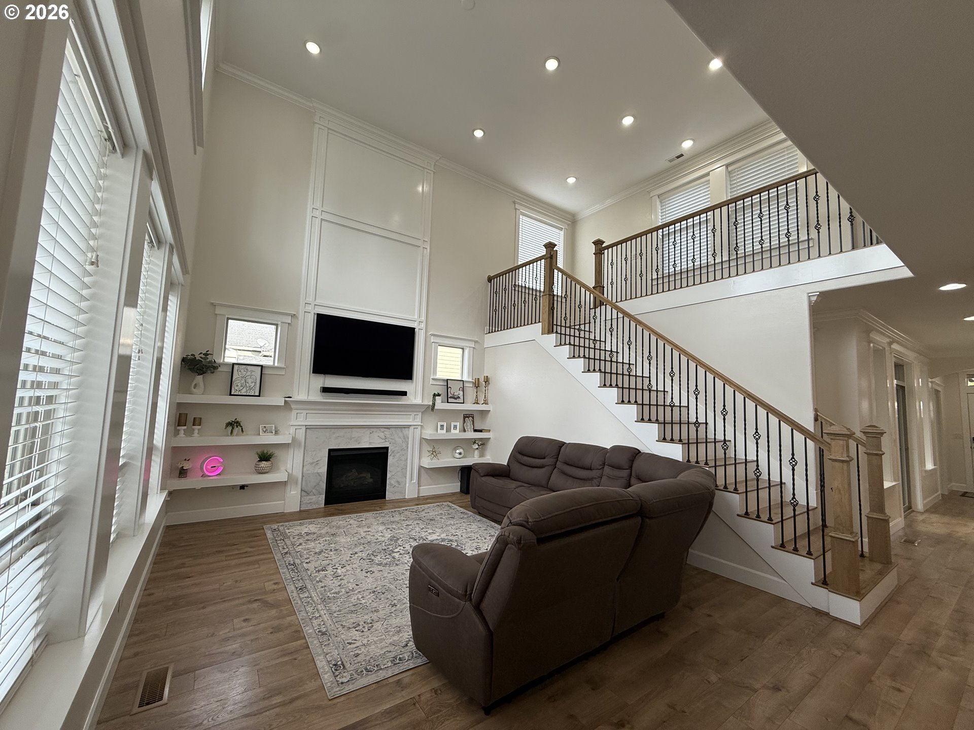 (503) 336-1515Welcome to this exquisite two-story residence showcasing refined finishes, a thoughtful layout, and elegant curb appeal. The impressive two-story great room features striking laminate flooring, an open staircase, and expansive windows that bathe the space in natural light. A beautifully appointed fireplace anchors the room, offering a warm and inviting atmosphere. The gourmet kitchen boasts a center island, stainless steel appliances, and quartz countertops—perfect for both everyday culinary pursuits and elevated entertaining. The upper level hosts four spacious bedrooms, while the main-level ensuite bedroom with a walk-in closet provides an ideal option for multi-generational living, guests, or a private home office. Step outside to a beautifully landscaped backyard designed for relaxation and sophisticated outdoor gatherings. Situated minutes from major freeways.
