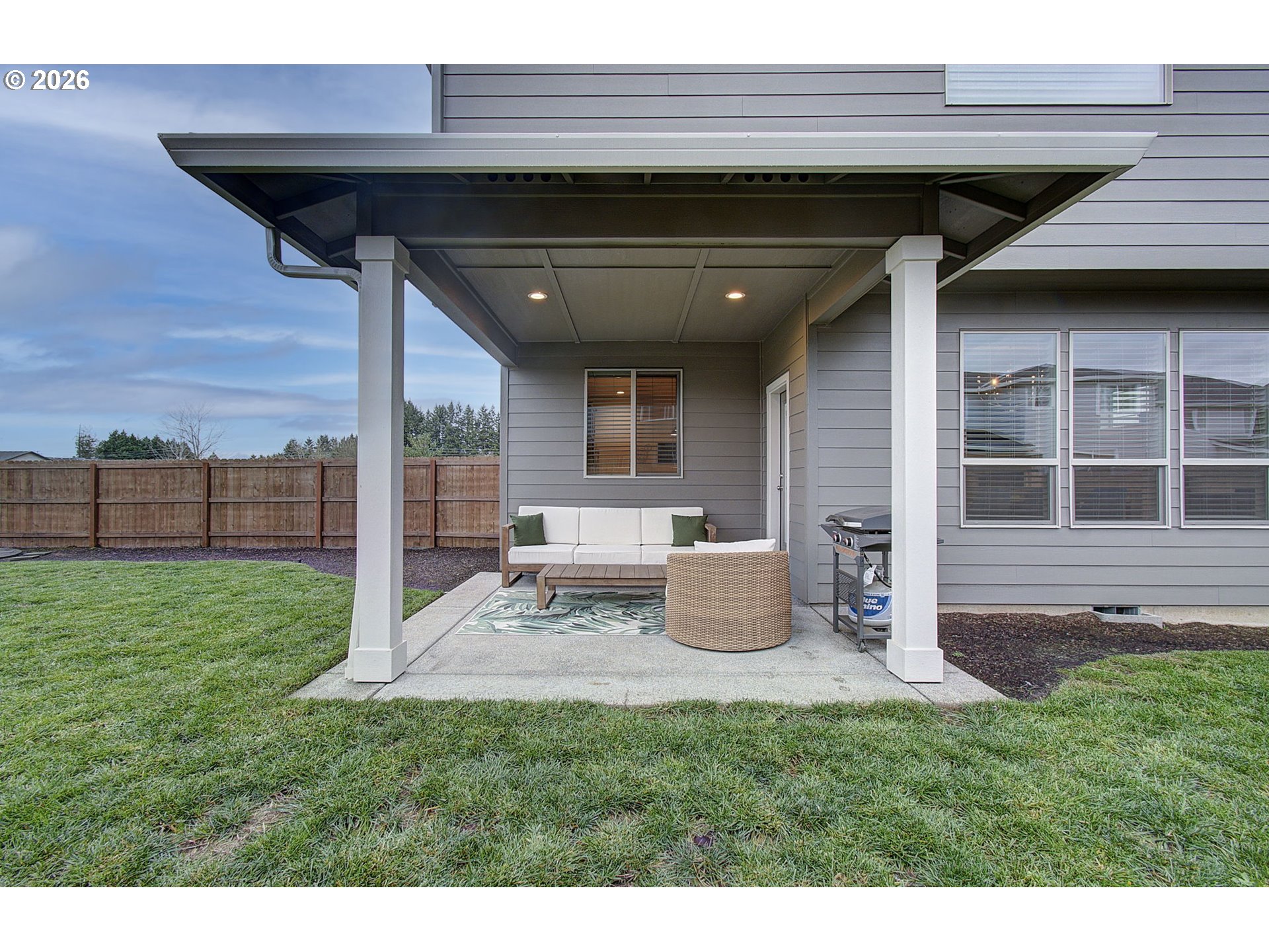 (503) 336-1515Built in 2024, this thoughtfully designed 4-bedroom home offers modern comfort on a rare double-size corner lot next to greenspace and across from an open field. The main floor features a versatile den with French doors—ideal as an office, workout space, or flex room. The kitchen centers around a quartz-topped island, with soft-close cabinetry, a large pantry, stainless steel appliances, and an included refrigerator.The spacious great room flows to a 13×11 covered patio and an oversized, fully fenced backyard—nearly 2,500 sq. ft. of usable outdoor space with sprinklers and an installed above-ground pool that may be included in negotiations.Upstairs, the private primary suite includes a generous walk-in closet with custom organizer, plus an ensuite bath featuring a free-standing soaking tub and walk-in shower. Three additional bedrooms, a full bath, and convenient laundry complete the upper level—washer and dryer included.Additional highlights include a heat pump with AC, smart thermostat, luxury vinyl plank flooring, and a finished 2-car garage. Sidewalks connect throughout the quiet neighborhood. The structural builder warranty is believed to be transferable—buyer to verify. Located in fast-growing Brush Prairie, just minutes from shopping and schools, this quiet setting offers space to live, relax, and enjoy.