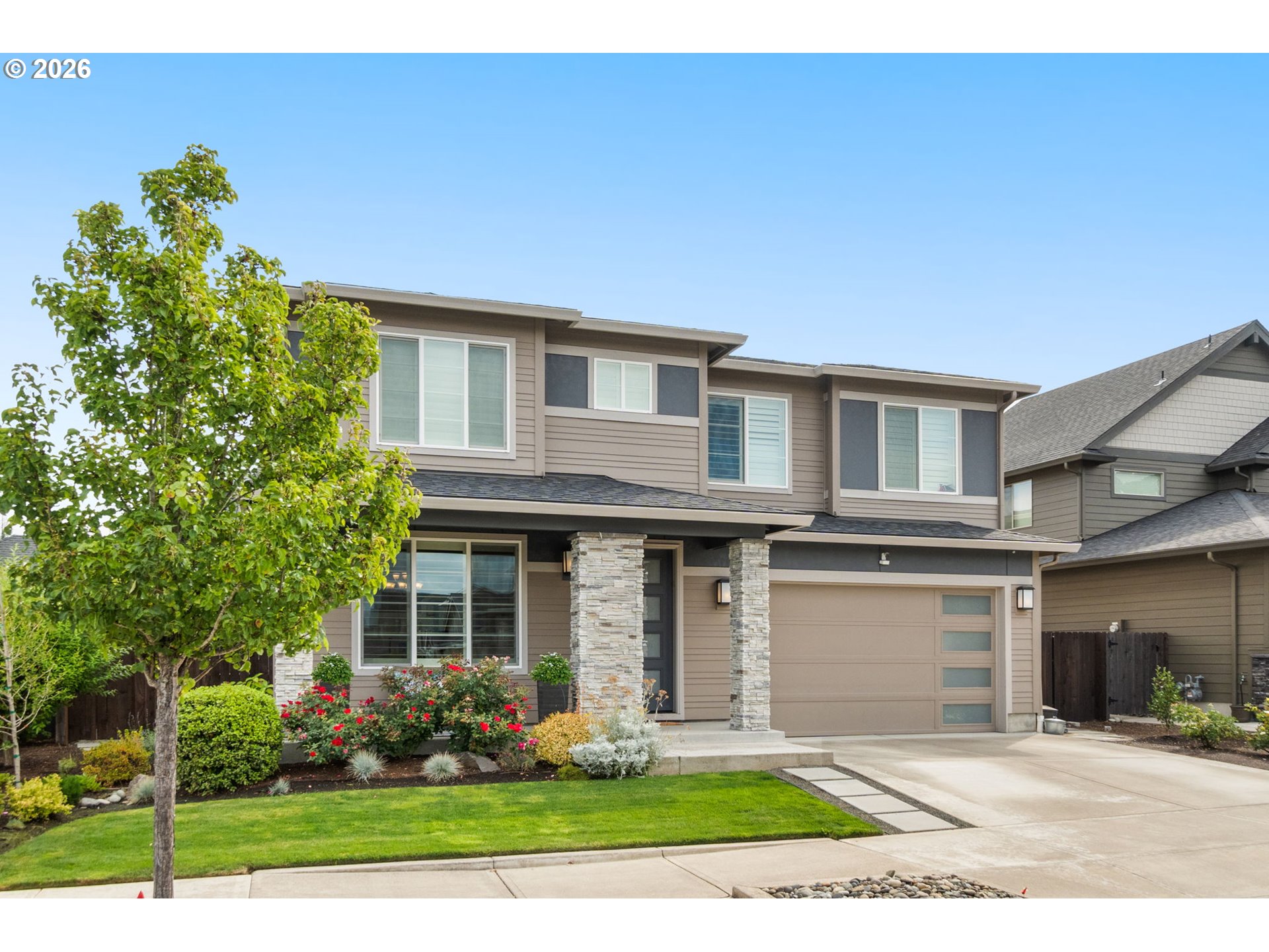 (503) 336-1515This beautifully maintained 3,300+ sq ft home in Philbrook Farms neighborhood offers exceptional indoor-outdoor living and feels like new throughout. Built in 2017, the spacious floor plan features four bedrooms plus huge bonus room, den on main and durable laminate flooring throughout the home. The gourmet kitchen is a true highlight, featuring quartz countertops, stainless steel appliances, double ovens, huge farmhouse style sink and a whole-home water softener system perfectly designed for both everyday living and entertaining. The open great room layout flows effortlessly into the main living and dining spaces. The fully fenced backyard has been thoughtfully upgraded with over $50K in improvements, creating a private outdoor retreat. Enjoy year-round entertaining on the covered patio complete with a built-in exterior BBQ, hot tub, firepit, garden boxes, and a full exterior sprinkler system. Inside and out, this home offers comfort and convenience. The HOA maintains the front lawn, while sprinkler coverage extends to both the front and backyard. A rare opportunity to own a move-in-ready home with high-end finishes, exceptional outdoor amenities, and a like-new feel.