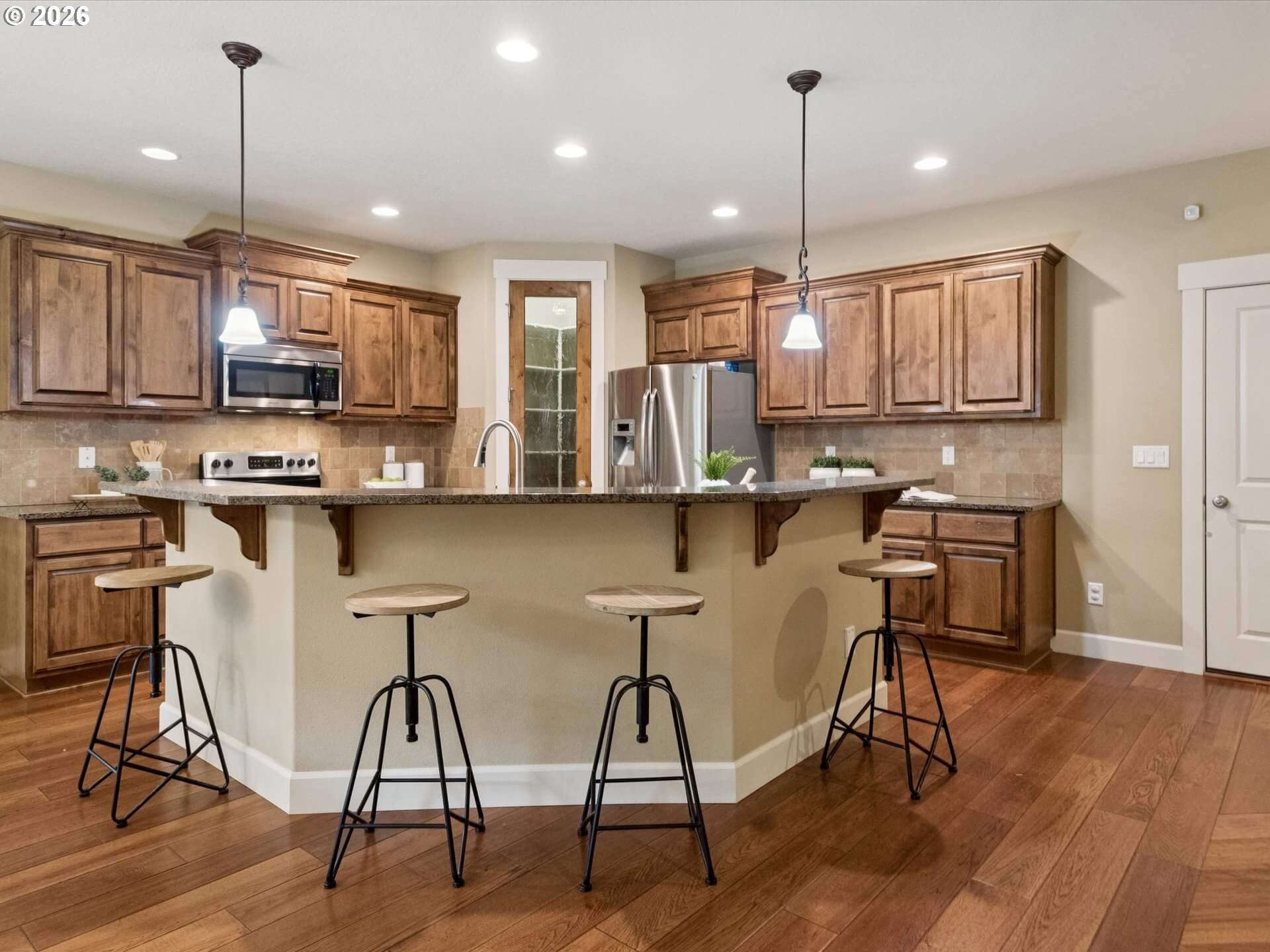 (503) 336-1515Impeccable One-Level Home in Growing RidgefieldWelcome to this stunning traditional-style single-level home nestled in Ridgefield’s fast-growing community. Designed with comfort and sophistication in mind, this home features engineered hardwood floors, tall ceilings, and elegant millwork with beautifully wrapped windows throughout. The spacious kitchen is a chef’s delight, boasting a large two-tier island with bar seating, stainless steel appliances, a pantry, and plenty of counter space—perfect for entertaining or everyday living. The open floor plan flows seamlessly into the living room, where recessed lighting illuminates every corner and enhances the home’s inviting atmosphere.A dedicated office/den off that can double as a fourth bedroom. The main entry offers a quiet space for work or study, while the formal entryway sets a warm tone for guests. The primary suite is a true retreat, featuring a coved, lighted ceiling for ambient mood lighting, plus a walk-in shower and soaking tub for ultimate relaxation. Step outside to the covered patio area complete with a hot tub—ideal for year-round enjoyment. The backyard is beautifully manicured with blueberries, fig & apple trees -- providing a peaceful setting for gatherings or quiet evenings. Conveniently located near Abrams Park, this home blends timeless design, modern comfort, and an unbeatable Ridgefield location. Taxes based on current owners Senior Income. Subject to change. Buyer to do their own due diligence.
