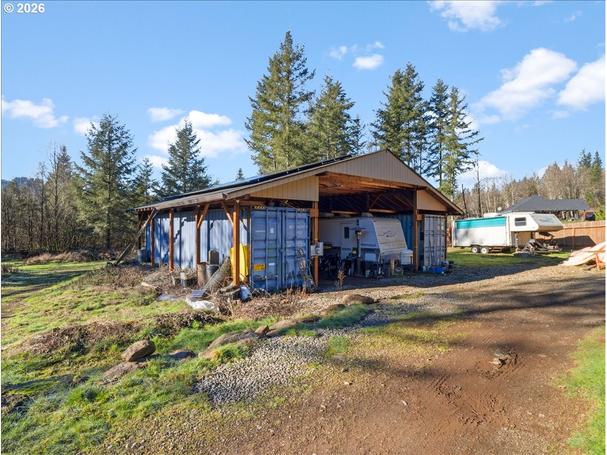(503) 336-1515This 5.29-acre property offers privacy, usable land, and established infrastructure supporting a more self-sufficient lifestyle, allowing the homeowner feel "off-grid", while remaining conveniently close to town. Multiple water sources include a private well, natural spring, and seasonal creek.The land is well-suited for animals and gardening, with established fencing, a greenhouse, and a diverse selection of mature fruit trees and bushes including apple, pear, blueberry, raspberry, strawberry, plum, peach, kiwi, and persimmon.Outbuildings provide substantial utility and storage, including a large pole barn with two shipping containers, dedicated freezer space, and two additional sheds (wood stays). Solar power with 30+ panels offer reduced utility costs. Roosters, chickens, and Guinea fowl may convey.The home offers comfortable, functional living with a spacious mudroom and an enclosed sunroom off the dining area. All appliances and W/D stay. LeafFilter gutters include a lifetime warranty. Don't miss this country retreat offering privacy and endless possibilities without sacrificing access to town and services.
