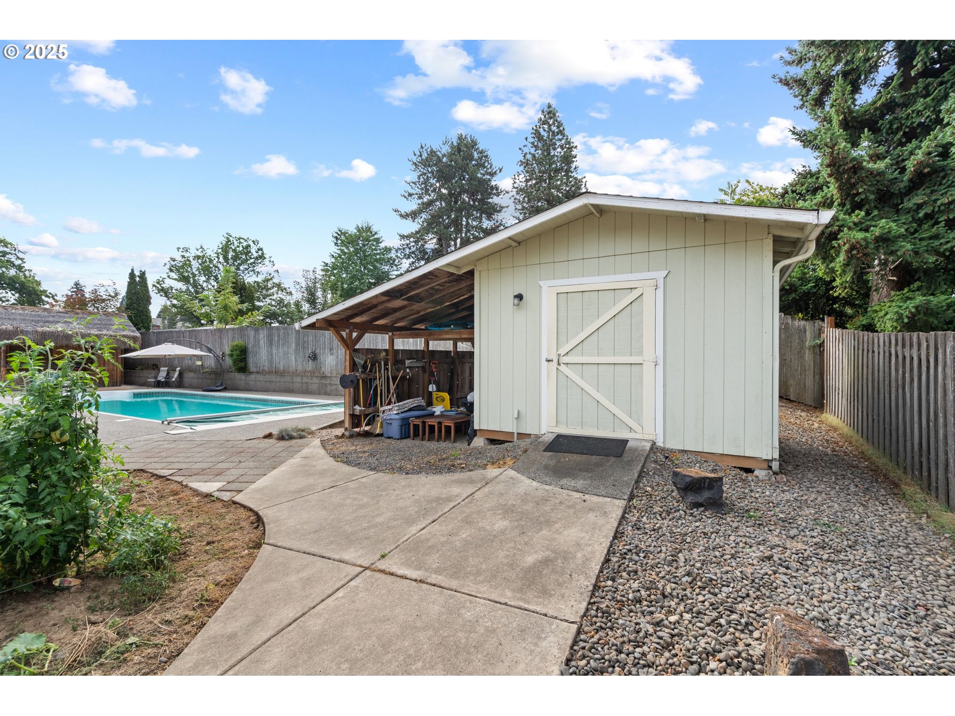 (503) 336-1515OPEN SAT 1/10: 11-1PM...Welcome to your own private oasis! This spacious 4-bedroom home perfectly blends comfort & entertainment on a generous 1/3 acre lot & cul-de-sac. The backyard is built for fun, showcasing a 16’x43’ in-ground pool with solar heating, electric cover, & poolside tiki hut complete with bar, sink, mini fridge, & gas BBQ hookup. An outdoor shower & bathroom make hosting a breeze. Recent updates in 2023 include fresh exterior paint, new windows, new roof, mini split & energy efficient pool pump (2024). The kitchen is bright & inviting, featuring white cabinetry & island that opens seamlessly to the living room, where a cozy wood-burning fireplace invites you to relax. Additional features include a large deck wired & stabilized for a hot tub, a powered workshop with lean-to, full RV hookups, front & back sprinklers, & a beautifully landscaped, fully fenced yard. Whether lounging poolside, entertaining guests, or enjoying peaceful evenings at home, this property truly has it all!!