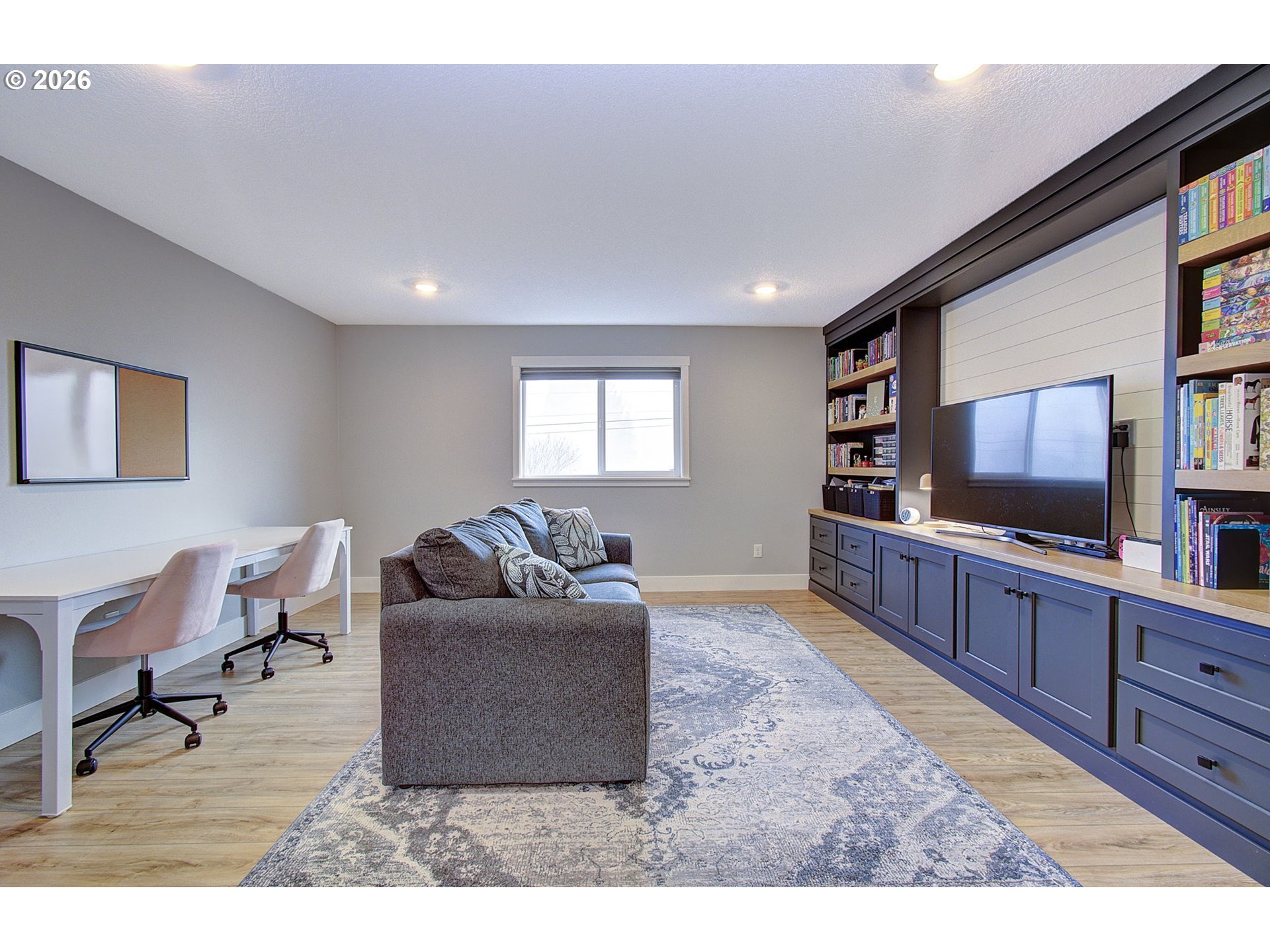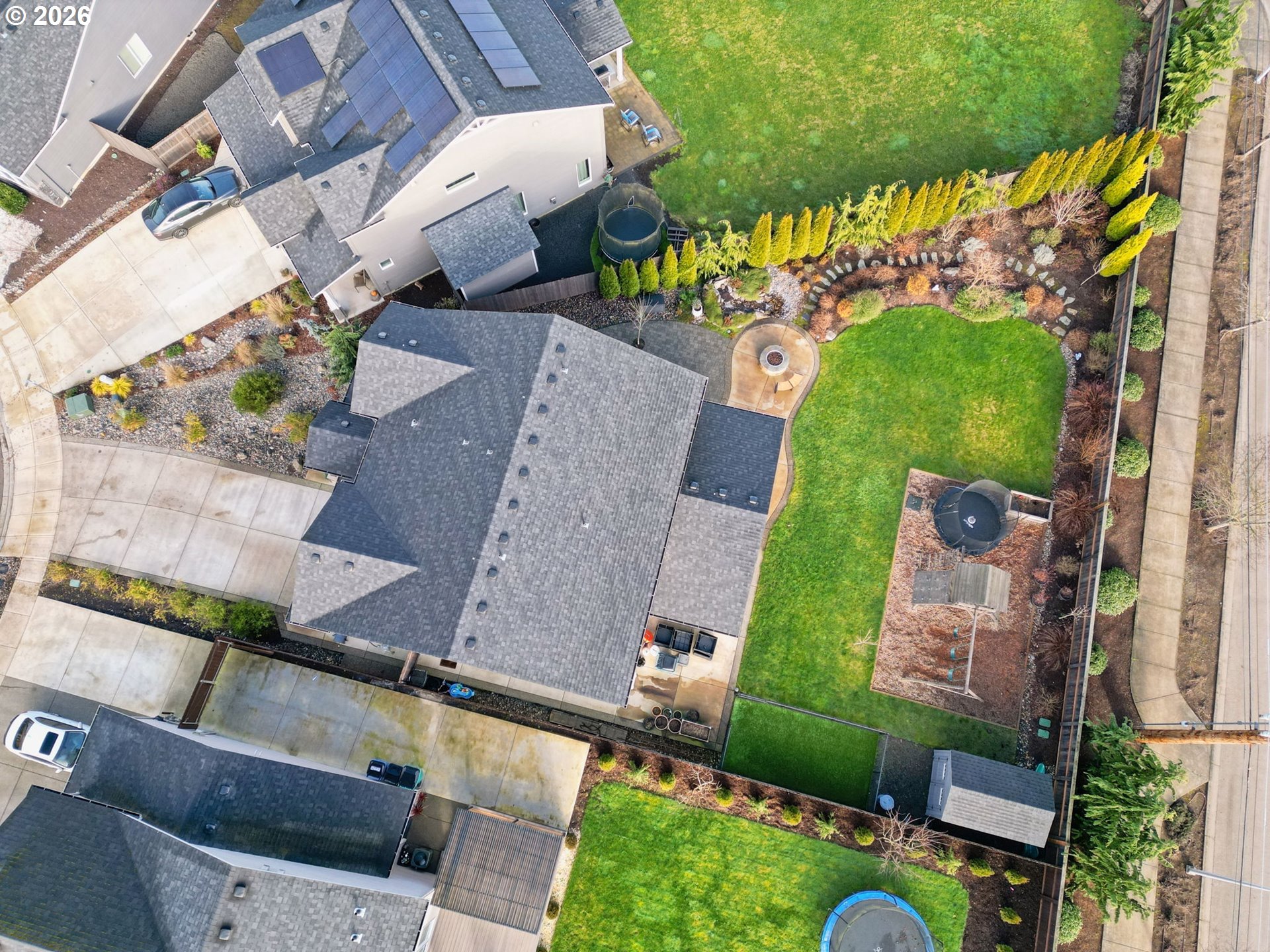 (503) 336-1515Immaculate, move-in ready, and filled with thoughtful upgrades, this stunning New Tradition home truly feels brand new. From the moment you arrive, you’ll notice the beautifully landscaped, fully irrigated front and backyard with consistent flowering trees and plants that bring color and charm from spring through fall. Inside, the home is designed for both comfort and style with hard surface flooring throughout the main living areas and plush carpet only in the bedrooms. Custom cordless window treatments add a clean, modern look, with blackout shades in every bedroom for restful nights. A dedicated home office on the main level provides the perfect work-from-home setup, homework space, or quiet retreat. The main level open-concept living space allows for effortless flow from living to kitchen and dining — ideal for entertaining. The kitchen and living areas connect seamlessly to the backyard with everything you could want: a covered patio, pond-less water feature, custom natural gas fire pit (no propane tanks needed), bark-chipped play area with play structure, garden shed, and a fully fenced, turfed dog run with drainage for easy maintenance and year-round enjoyment. Upstairs you’ll find a bonus room featuring custom built-ins with soft-close cabinetry — perfect for a media room or play space. All three bedrooms are located on the upper level and feature closets complete with custom organizers, maximizing both storage and function. The primary suite is a relaxing retreat with a soaking tub, dual shower head tile shower, dual vanity, and walk-in closet. The home is smart-home ready with a smart front door lock, smart garage door opener, fiber internet connection, and dual-zone HVAC for efficient climate control. Out in the three-car tandem garage you’ll find sealed floors and a finished space set up for home fitness, including a minisplit system for comfortable year-round use. This home blends modern design, smart technology, and outdoor living into one tr