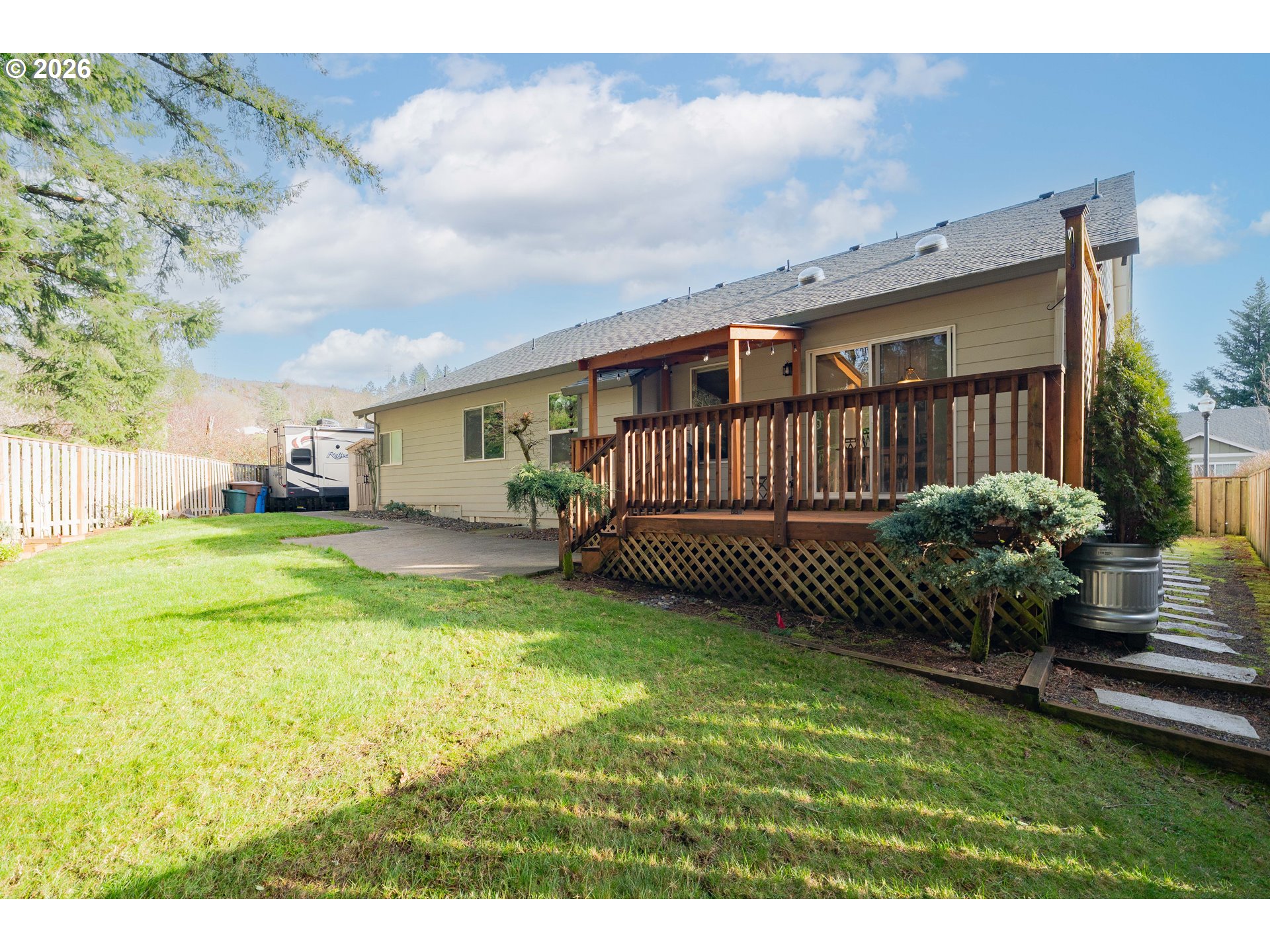 (503) 336-1515This one has it all! Desirably located Rolling Meadows property on a dead end street bordering a green belt and Campen Creek Gateway, offering privacy and serenity. Ample parking with oversized 3 car garage and parking pad out front, coupled with 40’ RV pad and 50 amp power plug in the back. Manicured, fully fenced yard includes a covered deck, bbq space, sprinklers, tool shed, and concrete patio with hot tub hook up. Meticulously maintained home is semi-open concept with a wall between the living/dining and family/kitchen spaces, perfect for both formal and intimate entertainment. Upgrades include new roof, HVAC, gas oven, and interior/exterior paint. No details spared with high ceilings, Casablanca ceiling fans, closet motion lights, honeycomb blinds, fire sprinklers, sound system wiring, and much more. Must see!!