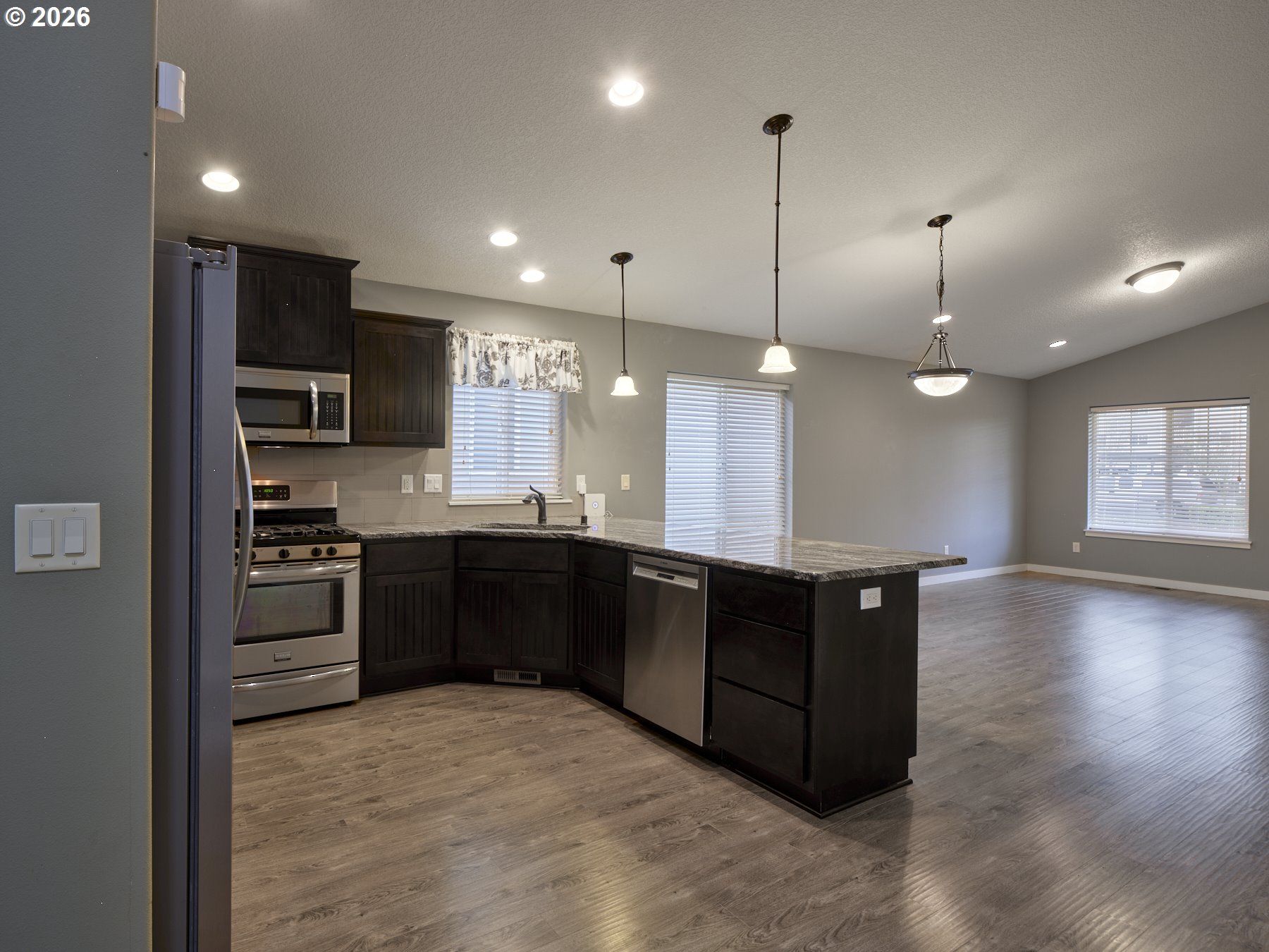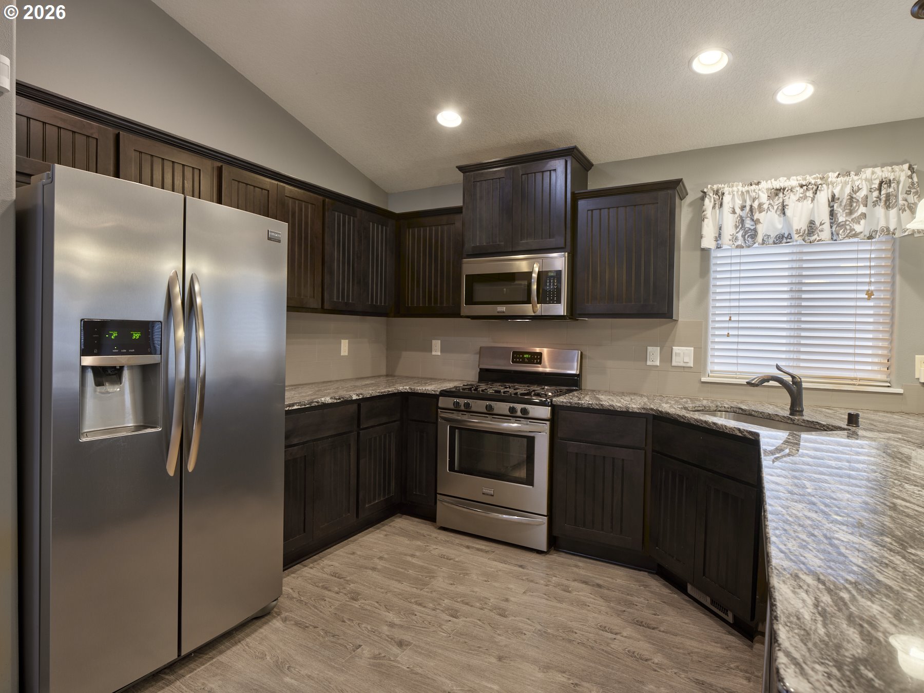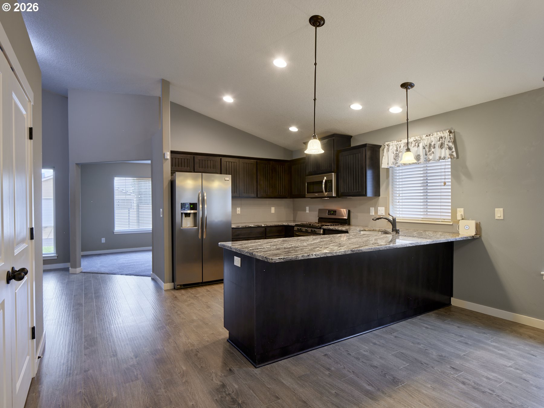 (503) 336-1515Look no further for your next home! This wonderful 3-bedroom plus den/office, 2 full bath, 2-car garage home offers an open layout with vaulted ceilings. The gourmet kitchen features stainless steel appliances, a gas range, slab granite countertops, and a stylish tile backsplash. You will appreciate the shaker cabinets, knotty alder front door, faux window blinds, and laminate flooring throughout the kitchen, great room, dining area, and hallways. Vaulted ceilings in the main living area create a bright, spacious feel perfect for everyday living and entertaining. Both bathrooms include tile floors for easy maintenance and a high-end look. The primary suite boasts a luxurious bath with a jetted tub, walk-in shower, and double sinks. Additional features include a finished, fully insulated garage with a gas line and utility sink, ideal for hobbies or projects. Walking distance to shopping, park, hospital/clinic, and food. This home is truly a must-see! OPEN HOUSE FRI 1/16 11a-1pm & SAT 1/17 11a-2pm.