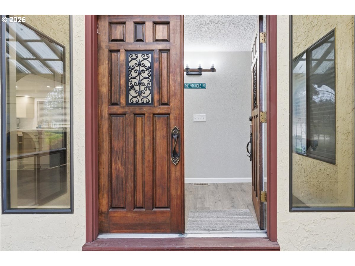 (503) 336-1515A beautifully remodeled, Mediterranean-inspired custom home offering true move-in readiness. Perfectly positioned along the 5th fairway of Club Green Meadows Golf Course, this one-level estate is a dream for golf and tennis lovers. Thoughtful updates throughout blend seamlessly with the home’s original character, creating bright, inviting spaces filled with natural light. The expansive kitchen—with its generous eating bar—opens to an impressive great room featuring vaulted ceilings, a cozy fireplace insert, and panoramic views of the course. The primary suite includes a fully updated spa-style bath with a soaking tub, a ceiling fan, and private access to the large wood deck. A formal living room with another fireplace insert and a serene atrium complete the warm, welcoming layout.