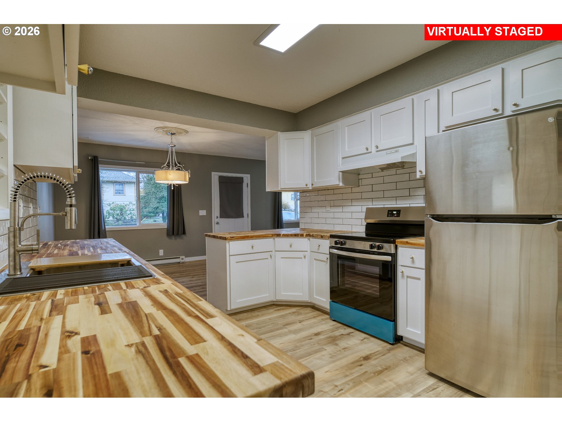 (503) 336-1515Welcome home to this charming 3-bedroom, 1-bath single-level residence that blends comfort, functionality, and thoughtful updates throughout. Step inside to an open living and dining area highlighted by laminate flooring and a cozy wood-burning fireplace, creating a warm and inviting atmosphere. The updated kitchen features stainless steel appliances and flows seamlessly into the main living space, perfect for everyday living and entertaining.This home also offers a dedicated laundry room and a versatile family/bonus room, ideal for a home office, playroom, or additional living space. Outside, enjoy a large fenced yard with plenty of room to relax, garden, or play, along with a covered porch for year-round enjoyment. A detached garage adds extra storage and convenience. With updates throughout and so much to offer, this home is truly move-in ready and not to be missed.