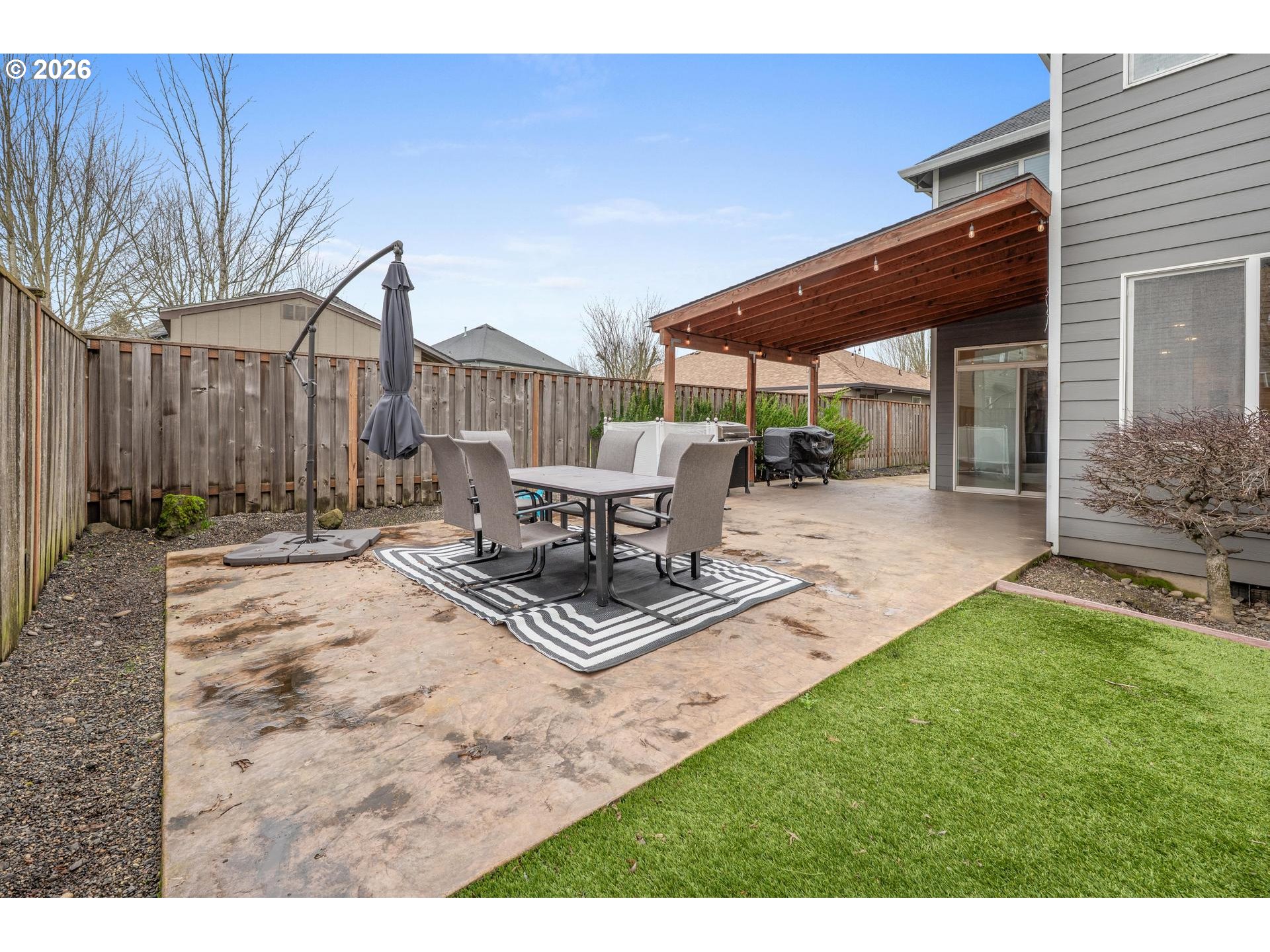 (503) 336-1515Discover this exceptional two-story residence, perfectly positioned on a quiet cul-de-sac. Designed for both elegance and comfort, the expansive open floor plan is enhanced by rich hardwood floors and a chef’s kitchen featuring quartz countertops, pantry, cook island, breakfast bar, and a generous dining nook. The formal dining room offers a refined setting for entertaining, while the great room—anchored by a fireplace—flows effortlessly from the kitchen. The luxurious primary suite is a private retreat with its own fireplace and a spa-inspired bath with tiled finishes and double vanities. A versatile fifth bedroom currently serves as a media/bonus room. Outdoor living is elevated with an upper-level deck, lower covered patio, and a fully landscaped, fenced backyard featuring low-maintenance turf and a custom putting green.