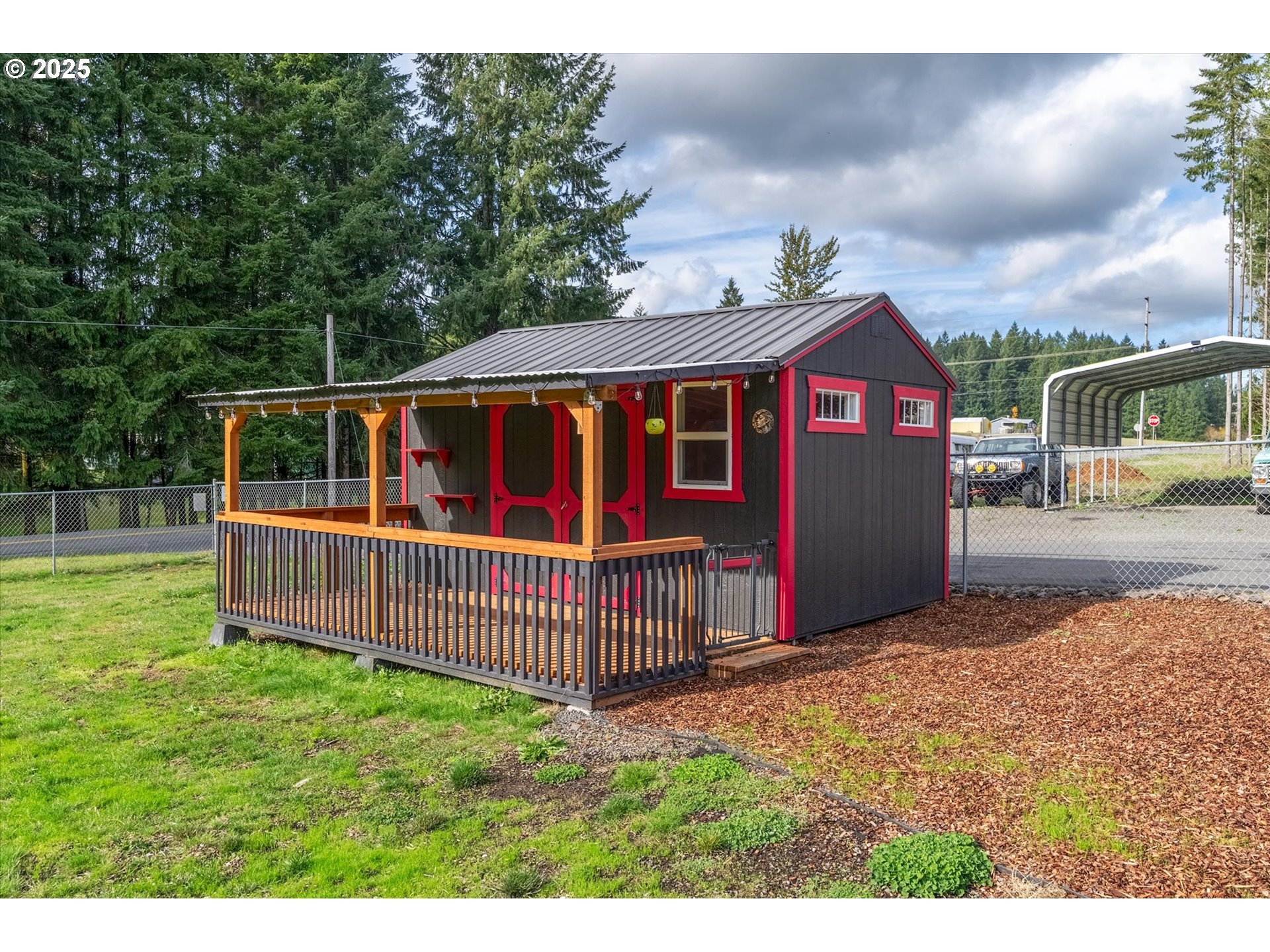 CoveredDeck, Deck, DogRun, Fenced, FirePit, Garden, GuestQuarters, Outbuilding, Patio, Porch, PublicRoad, RVHoo