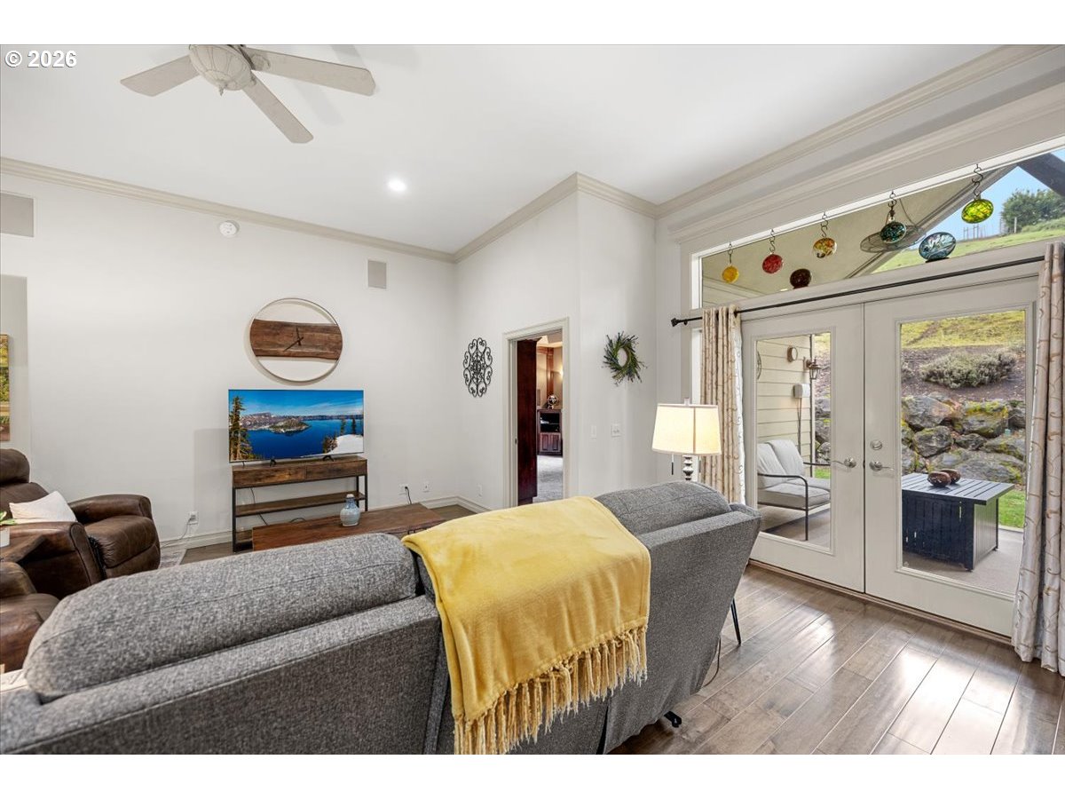 (503) 336-1515Fabulous Mediterranean-style 3 br/2 ba home in desirable Hucrest neighborhood. Split primary suite with sliding door to covered patio and luxurious en-suite bathroom with large walk-in closet, jetted tub and 2-person shower. Open kitchen with stainless steel appliances, granite countertops and breakfast nook. Home boasts high ceilings, crown molding, French doors from LR to covered patio, theatre room with surround sound, screen, projector and seating. Sound system includes theatre room, great room, patio and primary suite. The flex room - music room/office is nice and bright with wainscoting and French doors. Dining room has nicely painted walls and a coffered ceiling to make it look decadent. The covered patio with a ceiling fan sets the stage for a quiet and peaceful oasis for enjoying your favorite beverage and watching the wildlife that visit. Several ceiling fans and lots of storage throughout the home. Large 3-car garage with substantial attic storage. Home warranty included. The hillside behind the house is owned by a neighbor to ensure nothing will be built on it.
