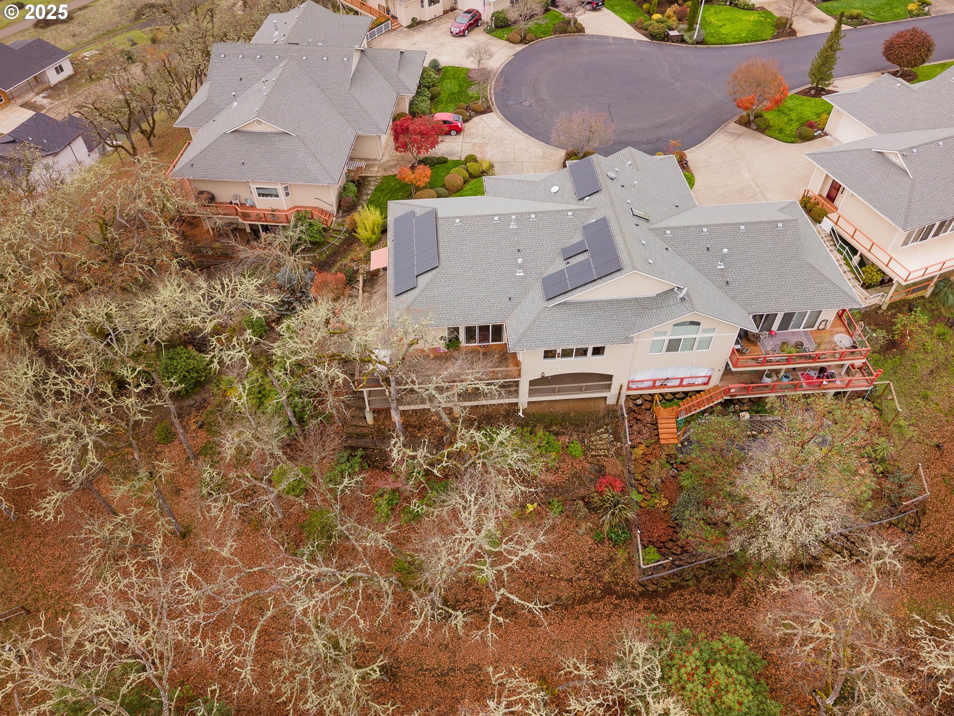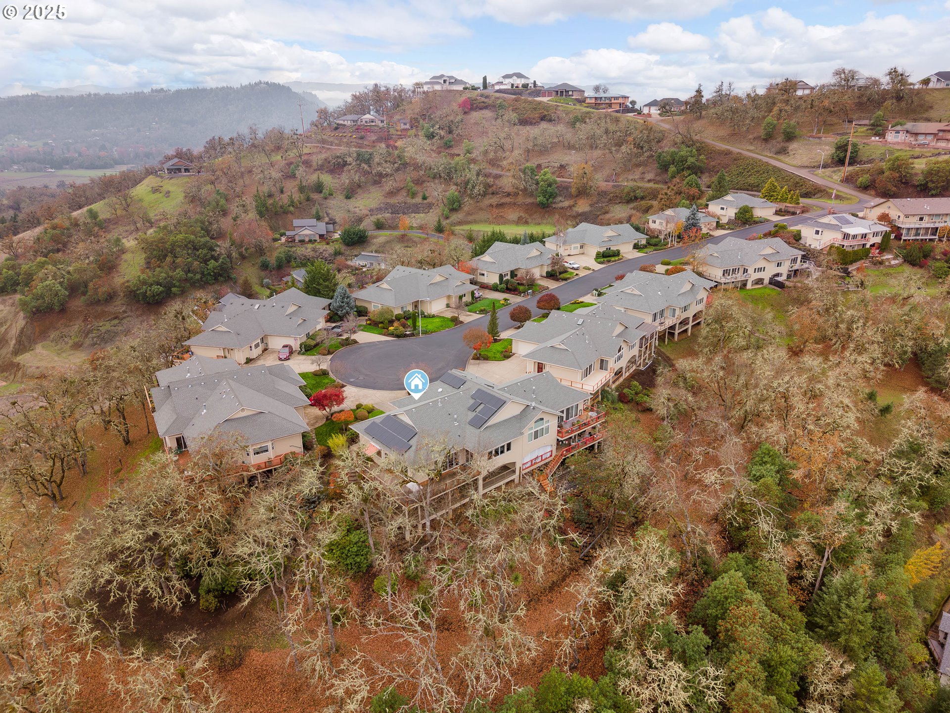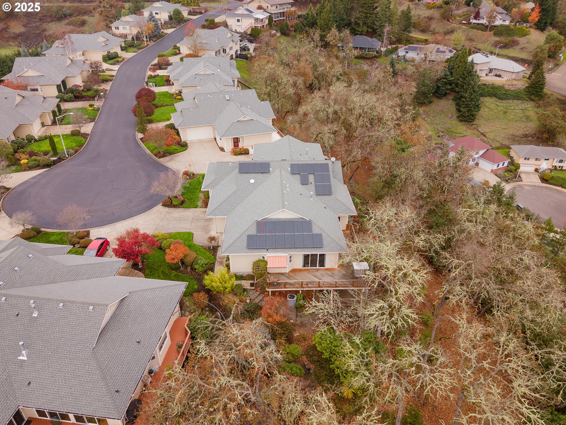 (503) 336-1515The views of town are quite remarkable from this townhome. Perched above the city in "The Point", Roseburg's premier gated 55+ neighborhood, this home features beautiful town views while still being nestled in the tree tops. The open floor plan features a spacious and well equipped kitchen with a large island, vaulted ceilings, cozy gas fireplace and two sets of large sliding glass doors that flood the space with natural light and provide access to the large deck. The generous primary suite has a slider to access the deck. Primary bathroom features a custom shower, double vanity and walk in closet. Downstairs provides a cozier feel for the third bedroom and third full bath. family room has the fourth sliding glass door to the covered deck down below. Don't miss the unbelievable amount of storage. Solar panels were professionally installed and help minimize utility cost and carbon footprint.