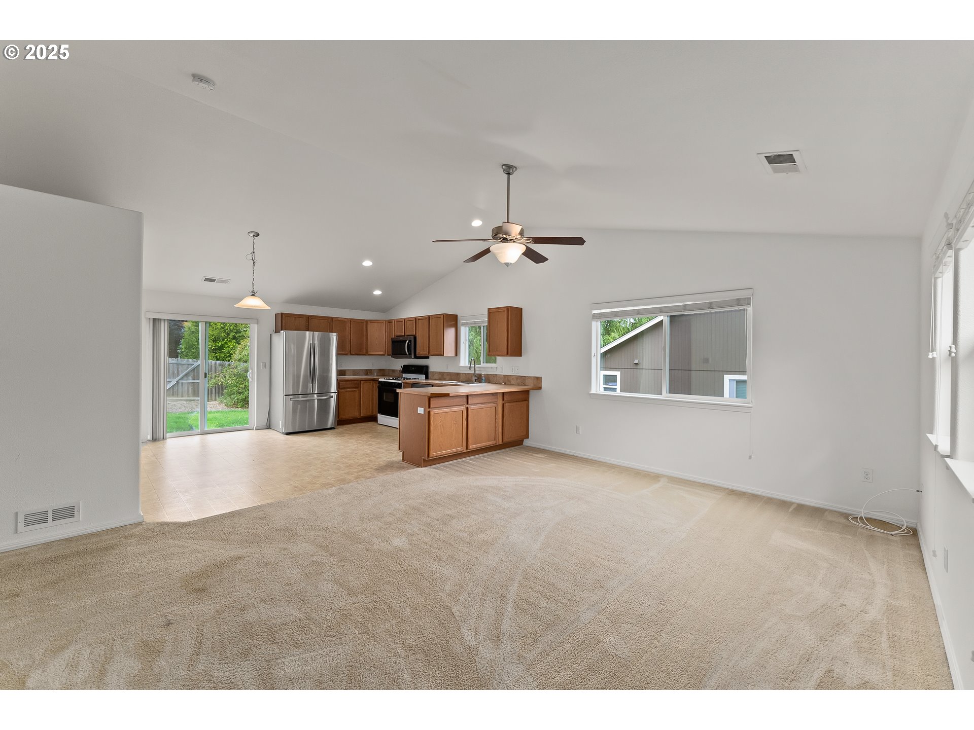 (503) 336-1515Located at the end of The Rolling Hills, this three-bedroom, two-bath home sits in a quiet, well-kept neighborhood. The interior has just been professionally cleaned and offers a practical, easy-to-live-in layout with vaulted ceilings and good natural light. The kitchen includes stainless steel appliances, a Samsung refrigerator, and a Maytag dishwasher. You'll appreciate plenty of counter space and an open connection to the dining area. The laundry room comes with a washer and dryer included, so that you can move right in without extra setup! The attached two-car garage is insulated and climate-controlled, giving you a comfortable workspace or reliable storage year-round. Out back, the fenced yard is level and open, a blank slate for gardening, pets, or outdoor projects, and features a side gate for easy access. This well-maintained home is in a peaceful location and is ready for its next owner. Schedule your private tour today!