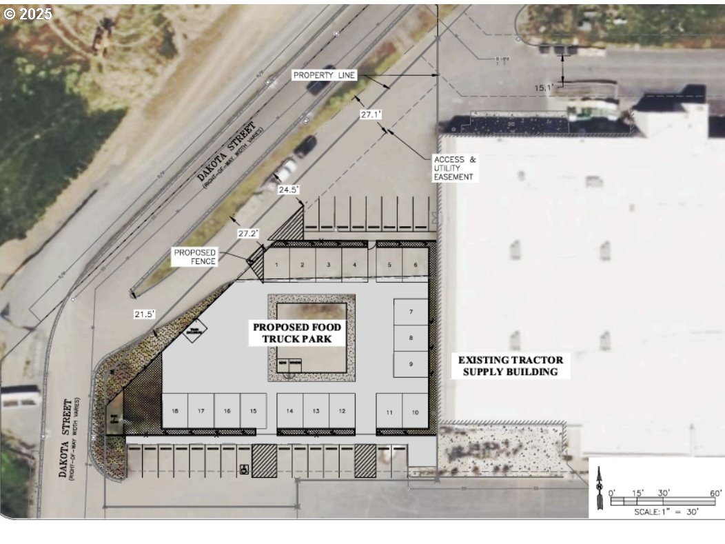 (503) 336-1515Prime Commercial Development Opportunity in Sutherlin’s Expanding West Side! Fully permitted and approved 18 space food truck pavilion! Branding in place for the Outpost! This .73-acre commercial lot in Oak Hills Plaza offers an exceptional turnkey opportunity for investors or owner-operators. Approved for an 18-space food truck pavilion, complete with plans for an onsite bar or restaurant structure, this project is designed for success. Branding is already established—setting the stage for a seamless launch. Located in a high-traffic corridor across from Oak Hills Golf Course, this property benefits from excellent visibility and accessibility. Surrounded by an expanding area of residential and commercial growth, it’s positioned near a newly built 78+ unit apartment complex and surrounded by adjacent neighborhoods, Fairway Estates, Knolls Estates, Fairway Ridge, and Montclair Estates, plus new developments along Fort McKay. All utilities are underground. System development charges are already paid for! The Tesla Supercharger Station is just a short walk away. With permits, plans, and infrastructure in place, this is a rare chance to bring a vibrant dining and entertainment hub to one of Douglas County’s fastest-growing communities. Approved plans and additional details available upon request.