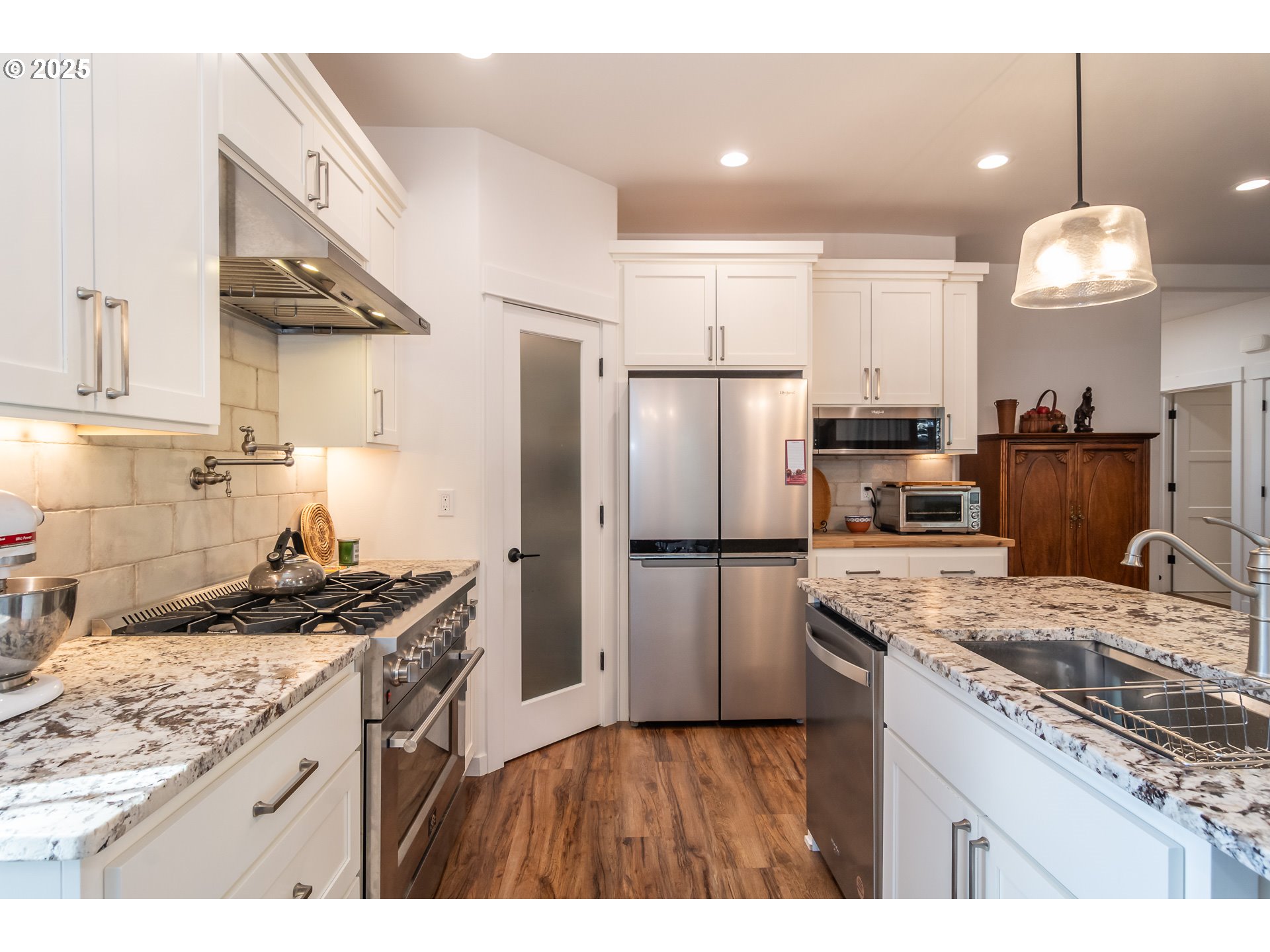 (503) 336-1515Stunning Modern Home with High-End Finishes, Valley Views & RV Parking. Built in 2021, this beautifully designed 3-bedroom, 2-bath home blends modern luxury with thoughtful functionality. Located near the end of a quiet cul-de-sac in a peaceful neighborhood, this must-see property offers premium features throughout. Step inside to high ceilings and luxury vinyl plank flooring that flows seamlessly through the open-concept living spaces. The heart of the home is the chef's kitchen, featuring a Forno 6-burner stainless steel gas stove with XL oven, pot filler, tile backsplash, walk-in pantry, leathered granite countertops, large refrigerator, and a large island with sink that looks directly onto the cozy gas fireplace with stone surround. The primary suite is a true retreat, with a sliding glass door to the back deck, spacious walk-in closet, and a spa-inspired en suite bath complete with barn door, custom tile walk-in shower, soaking tub, and dual sinks set in more leathered granite. Both bathrooms feature tile floors for easy maintenance and timeless appeal. Enjoy the outdoors with a covered composite back deck, ideal for entertaining or relaxing, and a front deck that offers beautiful views of the valley and surrounding hills. The easy-care landscaping includes artificial turf and a fully fenced yard—perfect for pets. RV parking with hookups. This move-in-ready home is the perfect blend of comfort, elegance, and practicality. Schedule your private tour today and experience the quality for yourself!