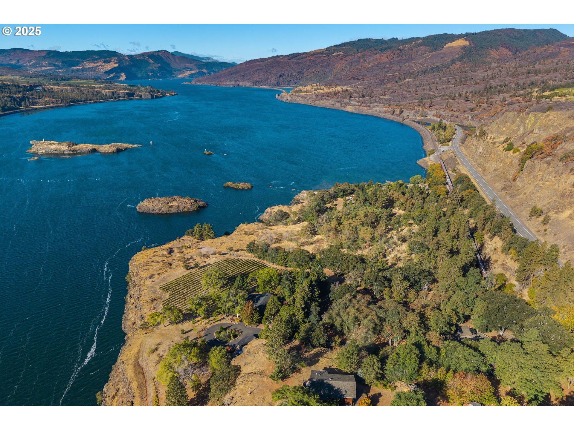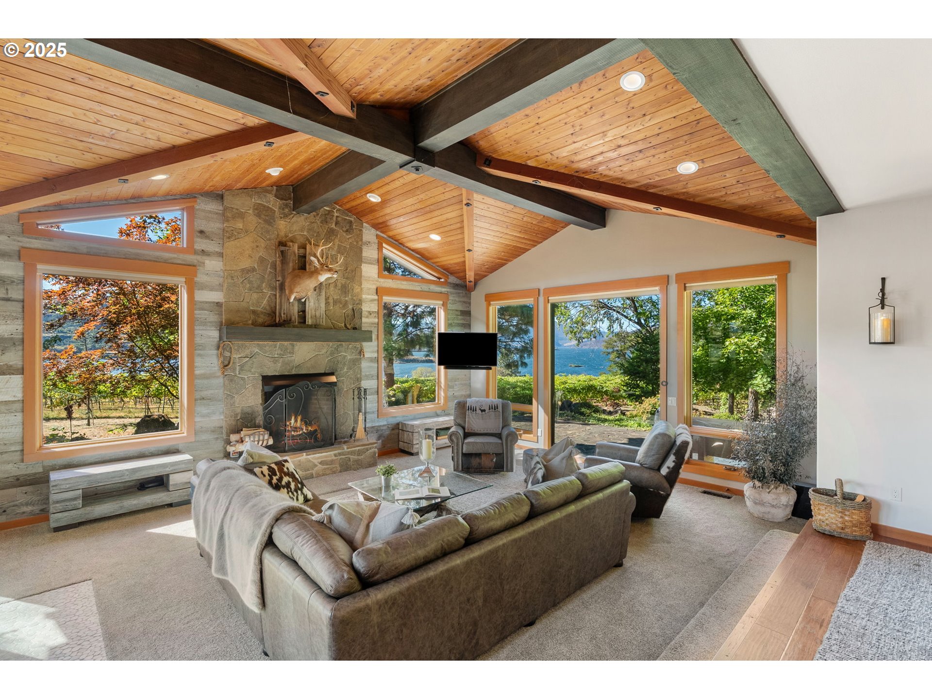 (503) 336-1515Experience the rare combination of breathtaking scenery, privacy and craftsmanship in this one-of-a-kind Columbia River estate. Situated on 5+ acres overlooking the Columbia River and nestled in the Lyle canyons, this custom-built 3 bedroom, 2 bath lodge inspired home offers an unmatched connection to the beauty of the Gorge. Expansive floor-to-ceiling windows showcase panoramic views from nearly every room. The grand stone fireplace defines the open living space and the chef’s kitchen features granite countertops and warm, wood finishes. The open primary suite offers comfort with private fireplace, built-in desk and shelving, oversized closet and jetted soaking tub, plus walk-in shower and heated tile floors - all designed to capture the views and serenity. The finished lower level adds flexibility for a wine cellar, media room or bonus space. Additionally there is an attached, extra deep two car garage, plus detached one car garage, and a 26x40’ insulated double-bay shop with over 9’ doors, ideal for RVs, boats and workshop. Outside, mature Syrah and Viognier grapevines frame the landscape, enhancing the property’s natural beauty and sense of place. Multiple outdoor settings extend the living space into the outdoors, perfect for entertaining or simply soaking in the Gorge’s beauty. Mature and meticulously maintained landscaping creates a true park-like setting. Just minutes from the heart of the Gorge’s dining, wineries, and recreation, yet perfectly secluded, this estate captures the true allure of the Columbia River Gorge.