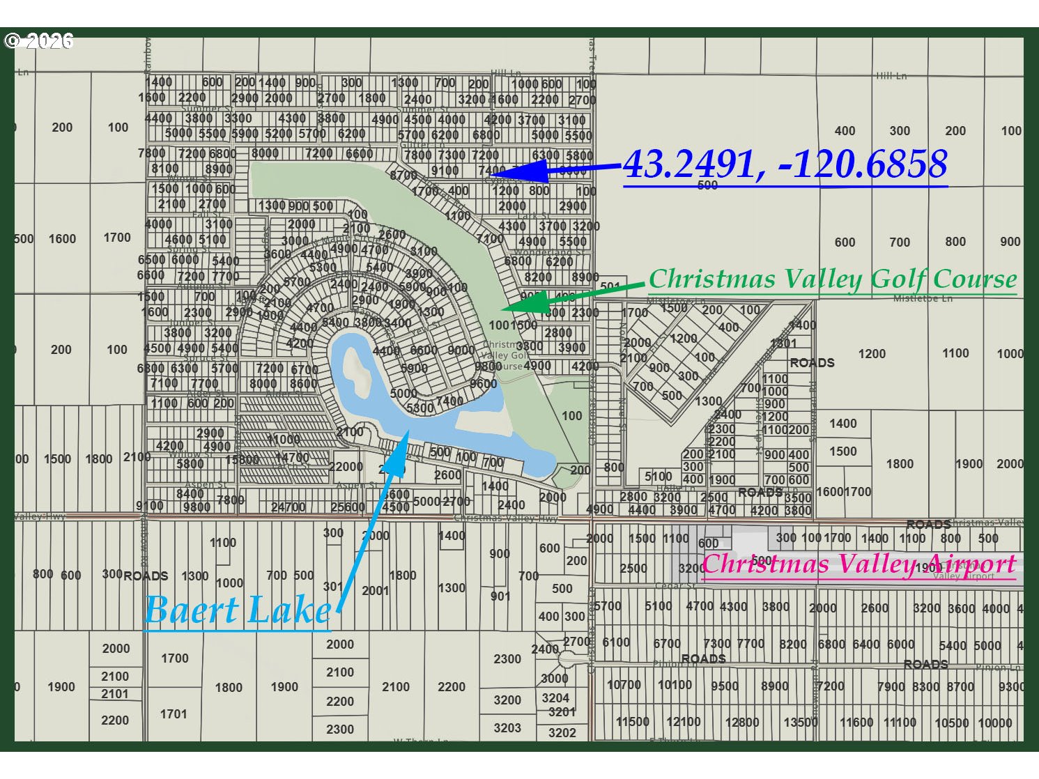 (503) 336-1515This ~14375 sq ft parcel, located in the heart of Christmas Valley, offers convenient access to Baert Lake and the Christmas Valley Golf Course. This property is great for anyone looking to build upon. With accessible power tucked behind the parcel, phone and fiber optics ran along the roads in Christmas Valley, and easy parcel access. This land is great for a wide variety of folks with local attractions and activities enjoyed by many of the residents. Since the sand dunes are just a short drive away and the town itself is surrounded by several million acres of government land, you can camp, hunt, fish, or just go for a relaxing drive.