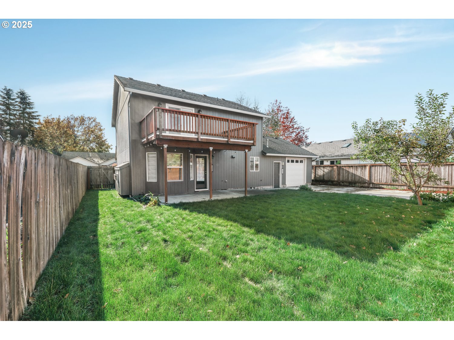 (503) 336-1515Brand new roof in November 2025 - Stunning Home with Exceptional Features and Custom Possibilities. This beautifully updated 3-bedroom, 2.5-bath home offers style, comfort, and functionality throughout. The open-concept living and dining areas create a seamless flow perfect for entertaining, highlighted by gorgeous laminate flooring that extends through the main level. The updated kitchen has lots of cabinetry and prep space, under-cabinet and above-cabinet lighting, and a layout that flows effortlessly into the inviting family room. Enjoy cozy evenings by the gas fireplace flanked by custom built-ins, enhanced by built-in surround sound speakers, and access to a covered patio making it ideal for year-round entertaining. A convenient half bath and laundry room complete the main floor. Upstairs, the primary suite is a private retreat featuring laminate flooring, surround sound speakers, and sliding doors leading to a new balcony deck that's perfect for watching the Eugene Rodeo fireworks or relaxing under the stars. The ensuite bath offers a dual vanity, walk-in closet, and modern finishes. Two additional generously sized bedrooms with new carpeting and a full bath complete the upper level. This home has been thoughtfully maintained and upgraded, with a heat pump replaced in 2014, stylish tile work, fresh paint, and LED porch lighting. Enjoy peace of mind with a 4K wired 7-camera security system. A rare feature of this property is the drive-through garage with upper storage and access to a reinforced concrete pad that is ready for a future shop, RV parking, or even a tiny home. The possibilities are endless for customization. The fully fenced backyard provides privacy and space for gardening or play, while the covered patio invites outdoor living and summer barbecues. Located conveniently near dining, shopping, quality schools, and the Eugene Airport, this home blends modern living with thoughtful design offering long term value.