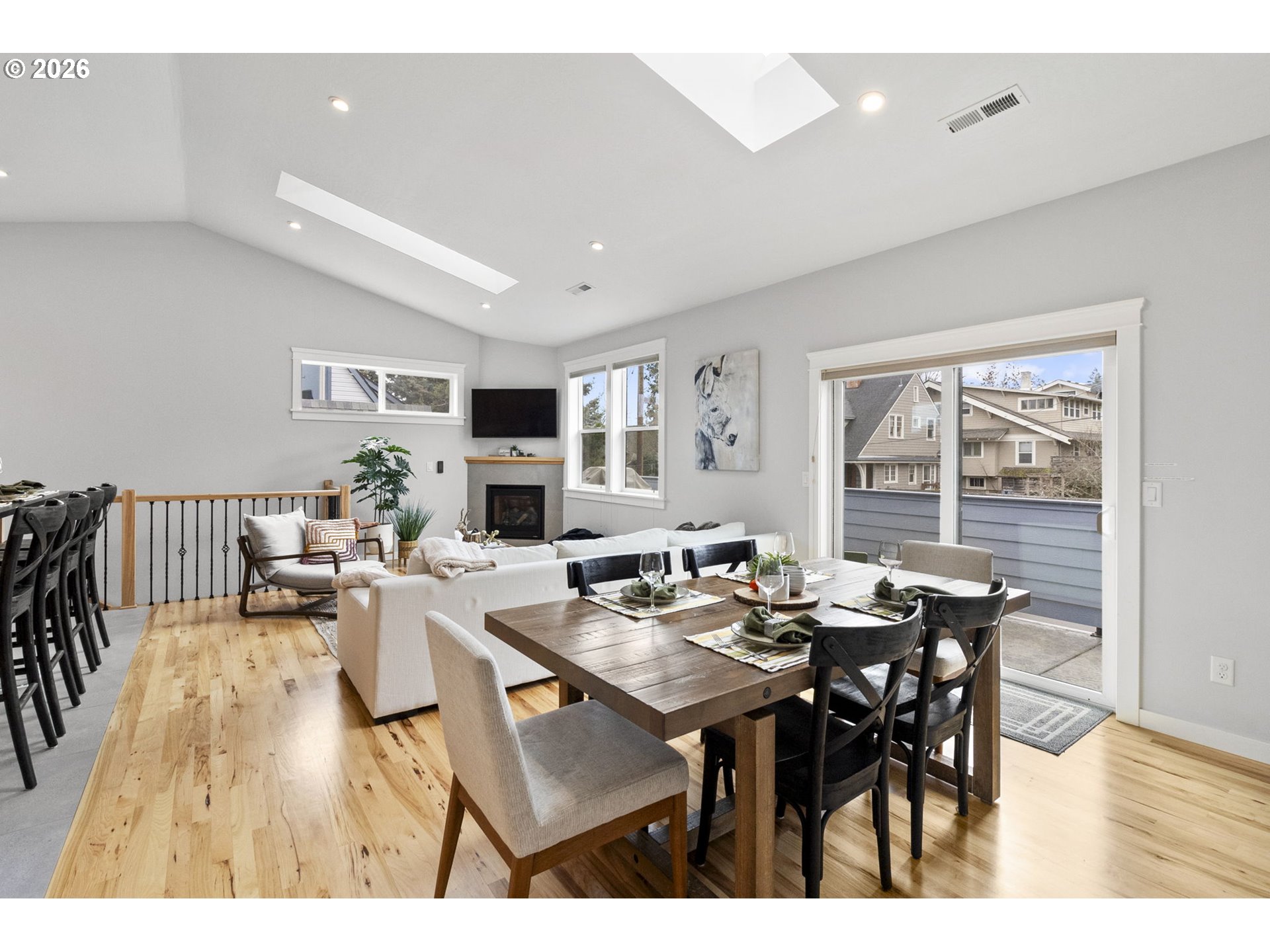 (503) 336-1515Lovely newer home (2020) and located in Mid-Town, this home features two primary bedrooms, one on ground level, and one on the upper level, each with walk-in closets and baths, spacious living areas with hardwood floors, vaulted ceilings, skylights, gas fireplace, dining, gourmet kitchen with stainless appliances, gas cooking and eating bar, indoor laundry, upper level deck with southern exposure, off street parking, 1-car garage with E-car charging station. Located just north of College Hill near shopping, restaurants, and South Eugene schools. Currently being used as an AirBNB with strong rental history, and would be ideal for a residence with easy access to U of O and Downtown.