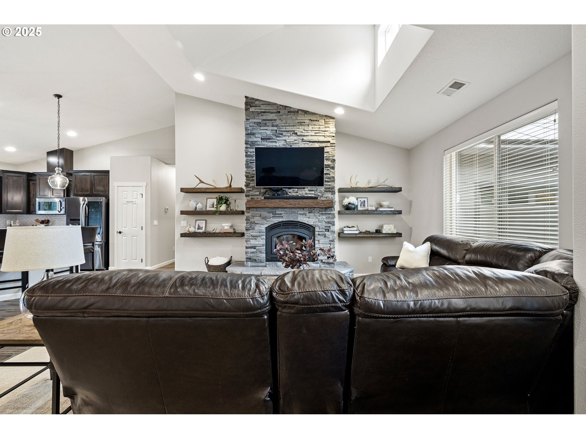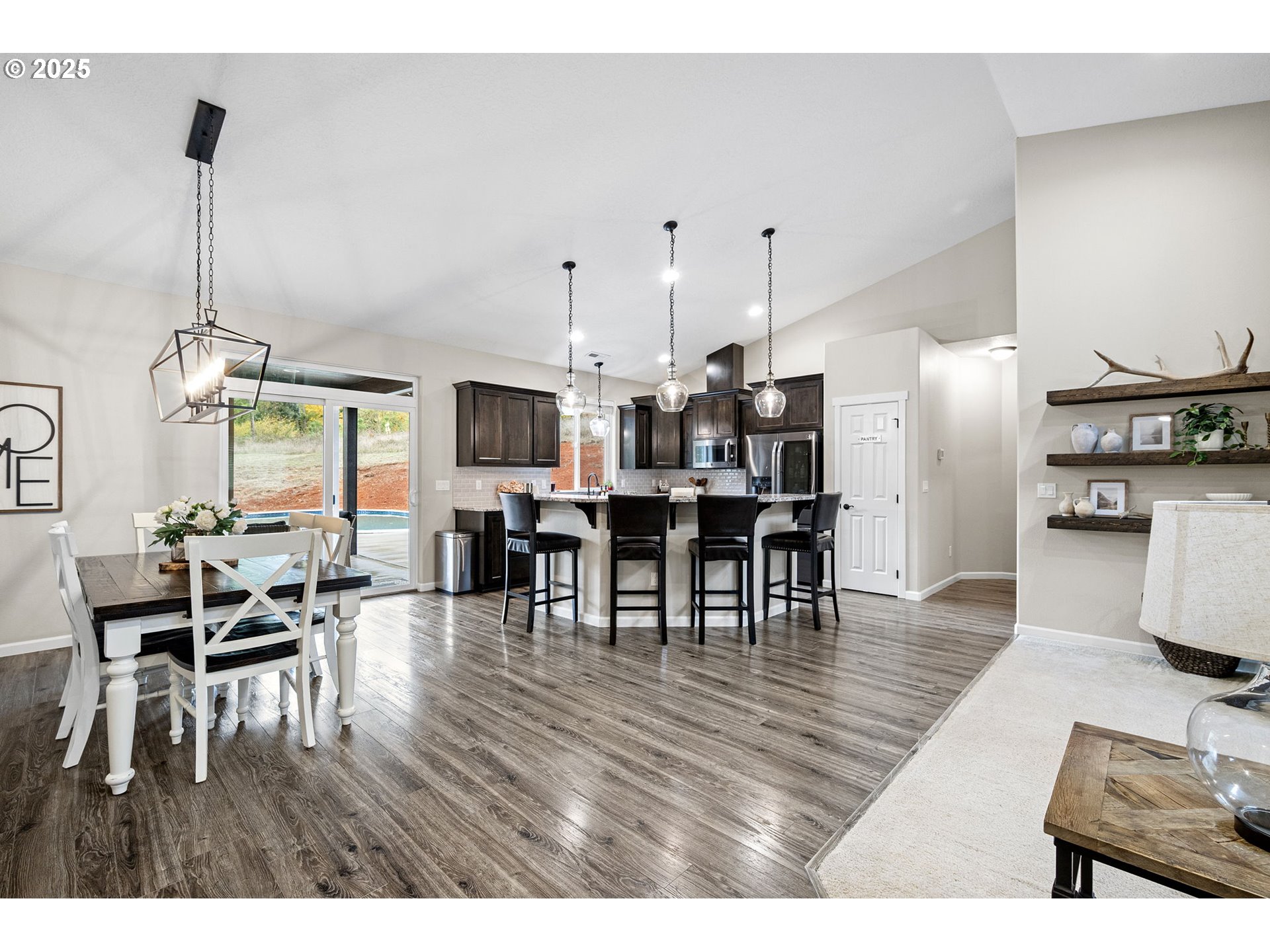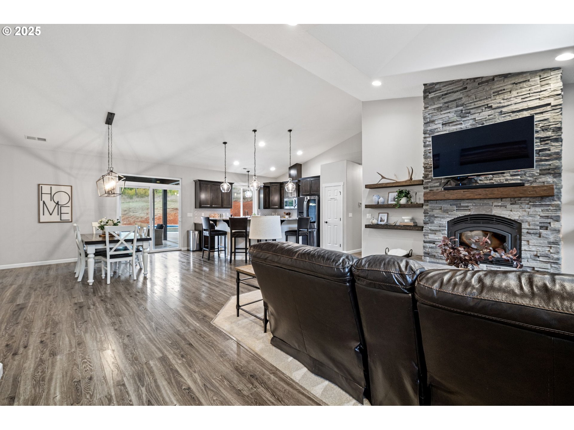 (503) 336-1515Modern Farmhouse on 2.7 Acres with Pool & Solar Power. Experience refined country living in this 2019 custom-built single-level home. Blending modern design with farmhouse charm, this home welcomes you with expansive windows, a floor-to-ceiling stacked stone wood-burning fireplace, and open-concept living spaces filled with natural light. The gourmet kitchen is a chef’s dream, featuring a massive island, slab granite countertops, gas range with convection oven, stainless steel appliances, and a spacious butler’s pantry for additional prep and storage space. The primary suite offers comfort and sophistication with luxury vinyl plank flooring, granite-topped vanities, a generous walk-in closet and separate shower and bathtub. Three additional large bedrooms and a full bath provide space for family, guests, or a home office setup. Step outside to your private backyard retreat complete with a large trex deck, covered patio and swimming pool (38' x18') — perfect for relaxing or entertaining. This property features a 25 panel Enphase solar array, tankless water heater, RV hookups w/ electrcity, pump house and exceptionally low utility costs. This home combines luxury and efficiency in one exceptional package.