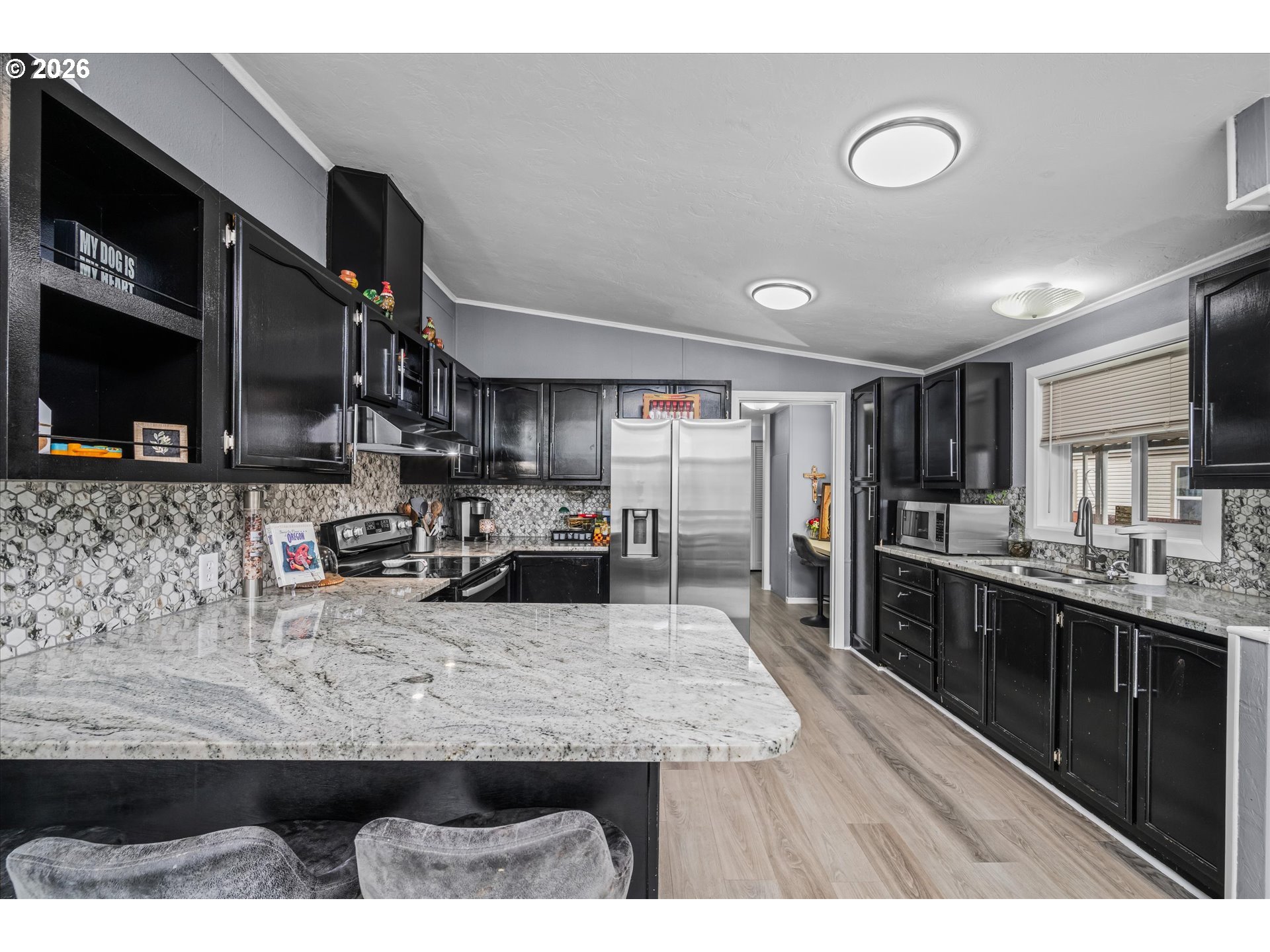 (503) 336-1515Lovely, updated two bedroom, two bathroom home in a cul de sac. Waterproof vinyl flooring throughout, remodeled kitchen & bathrooms feature newer flooring, sinks, and countertops. Spacious fenced backyard includes a covered deck, a tool shed, and two bonus rooms (endless possibilities: home office, extra storage, gym, art studio). Large laundryroom/utility room with a built-in desk. Extra deep carport plus an RV/boat parking pad. Newer siding and a newer roof. All for $175,000. Space rent only $765/mo in this all-ages park.