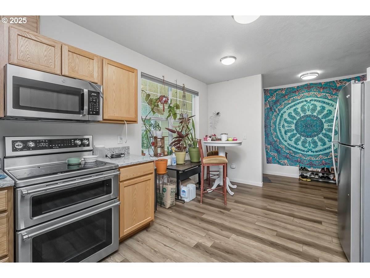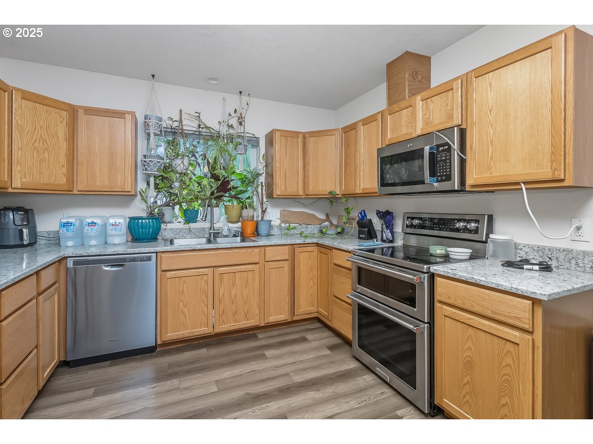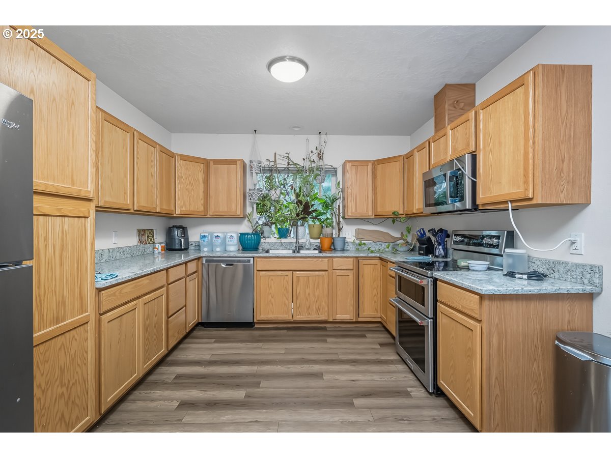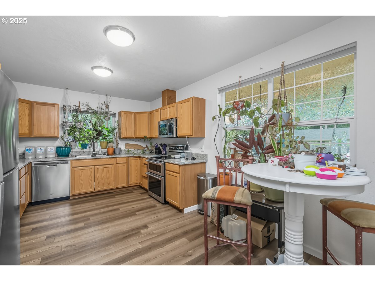 (503) 336-1515Oh WOW!! Charming 3 bedroom 2 bath one level directly across from River Road Elementary. Tucked away on a no-through street sits this awesome home built in 2018 and surrounded by privacy and trees. An uncommon floor plan with the primary suite at the opposite end from the other bedrooms. A covered front porch for sipping coffee and raised planter beds with space on the side of the home for a RV or Boat! High efficiency mini split offers warm winters and cool summers. The primary suite has its own bathroom. A generous sized kitchen is spacious in design with solid surface counters, a double oven, loads of cabinets and an eating area. The back yard features a cover porch area, firepit and is fully fenced. Come check out this home before its gone!!