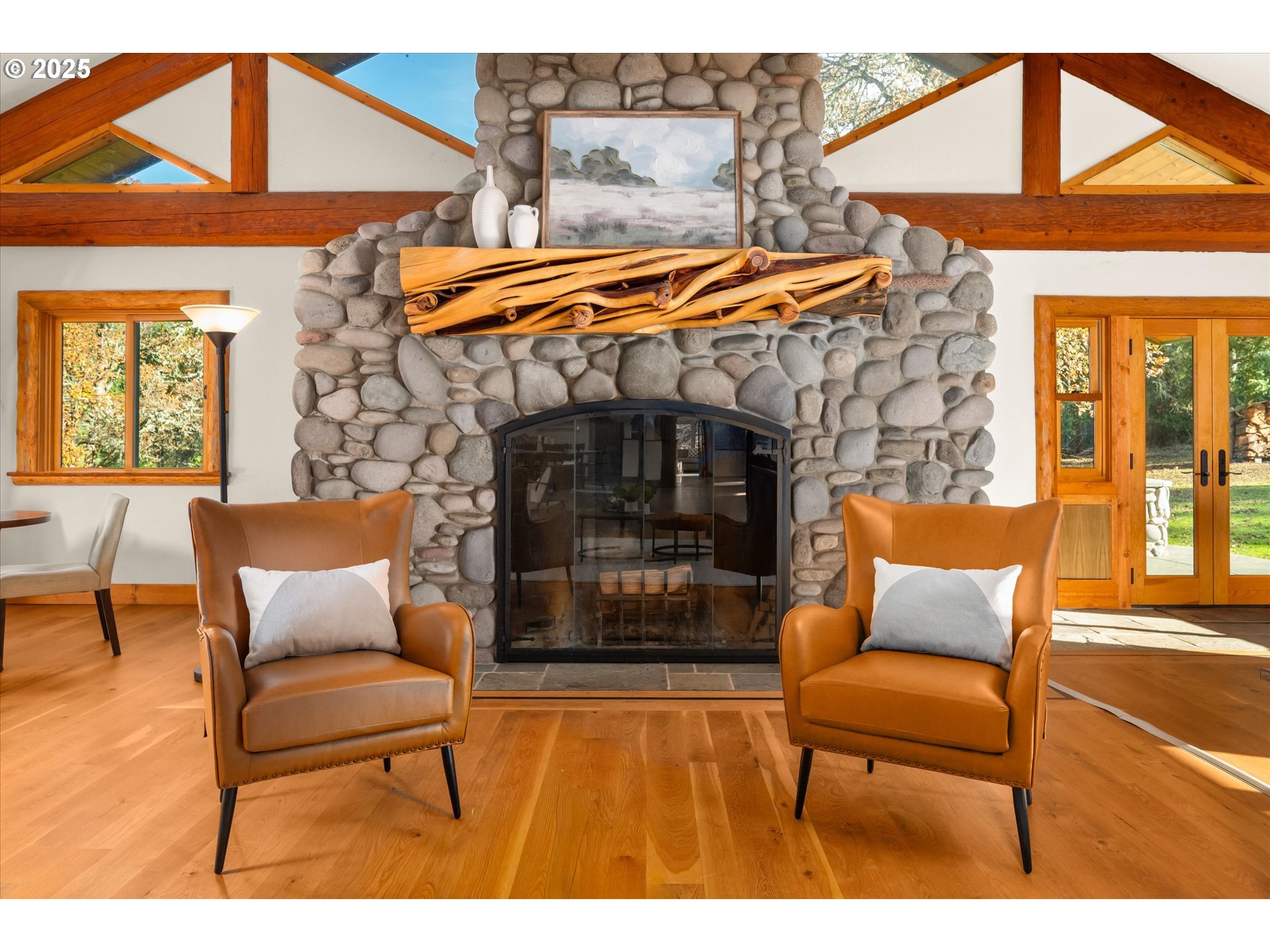 BeamedCeilings, Fireplace, HardwoodFloors, Skylight