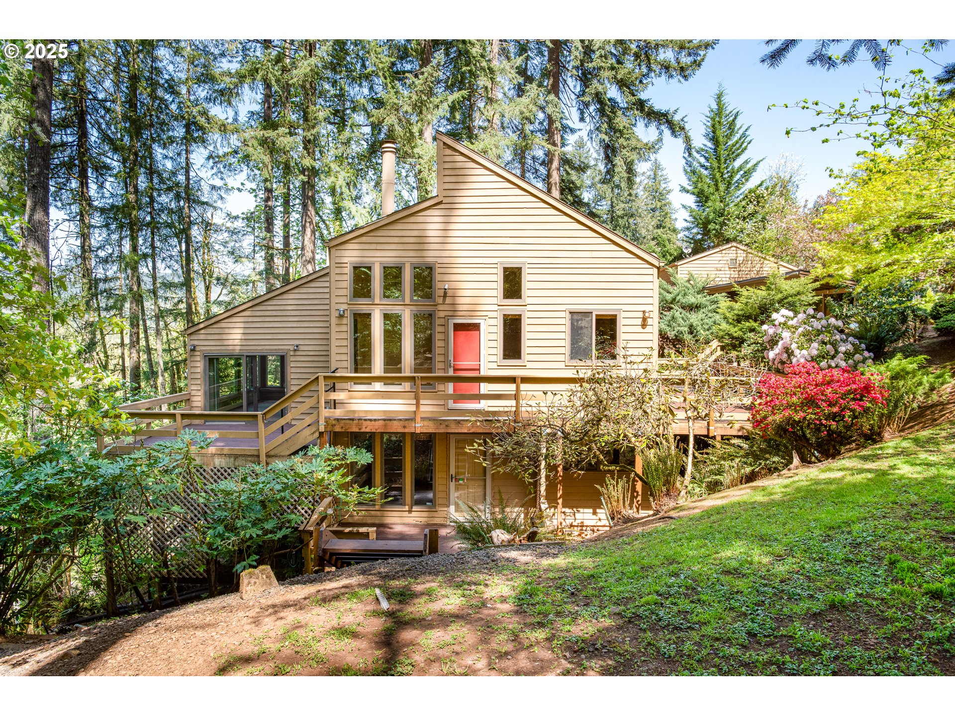 (503) 336-1515Discover the charm of this rustic home in the highly sought-after Shangri-La subdivision. Built in 1976, this 3-bedroom, 2-bathroom home offers 2,648 sq. ft. of living space on a 1+ acre lot, featuring breathtaking views of the McKenzie River, the surrounding valley, and the mountains from its expansive wraparound deck. Inside, the main level boasts vaulted ceilings, large windows, and skylights, filling the space with natural light. The living room features a cozy fireplace, multiple windows, and an Andersen sliding door that leads out to the deck. The kitchen is fully equipped, with ample cabinetry and countertop space, and it flows seamlessly into the dining area, both adorned with durable tile flooring. The primary suite is conveniently located on the main level and features vaulted ceilings, a walk-in closet, a private loft, a skylight, and an en-suite bathroom with a walk-in shower. Downstairs, the spacious 13' x 22' family room features a second fireplace, perfect for relaxing or entertaining. This level also includes two generously sized bedrooms, a full bathroom, and a utility room. Outside, a covered walkway leads to a large detached 2-car garage with ample attic storage. The yard is beautifully landscaped with a sprinkler system and includes a storage shed for garden tools. Don’t miss this opportunity to own a serene retreat with unbeatable views! A new roof was installed in July of 2025.