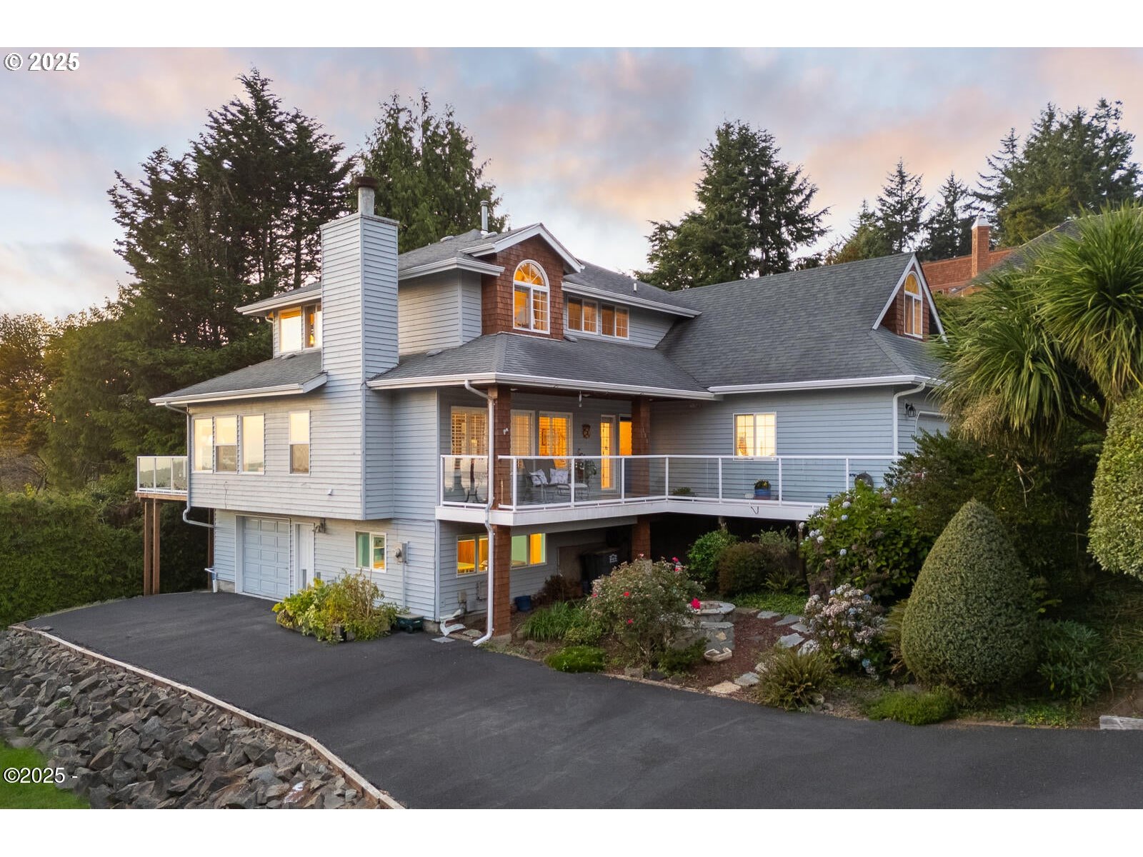 (503) 336-1515Set above Newport's Historic Bayfront with sweeping views of the ocean, bay, and bridge, this coastal home offers space, privacy, and unforgettable scenery. Nestled in a quiet, wooded setting just minutes from town, it strikes a rare balance between seclusion and convenience. Inside, the layout is generous without feeling overwhelming. With five bedrooms, three and a half baths, and plenty of flexible living space, there's room for guests, work, hobbies, or whatever your life calls for. The kitchen is designed for serious cooking and gathering, opening into bright, airy living areas and extending to expansive Trex decks that reach toward the water. Downstairs, a bonus room with a wet bar opens up possibilities for entertaining, hobbies, or multigenerational living. The privately positioned primary suite features its own stunning view, and throughout the home you'll find thoughtful details: a 900-bottle wine cellar, office or craft room, central vacuum system, and a spacious three-car garage with room to spare. Leaf Filter Gutters with a transferable lifetime warranty add long-term peace of mind. Newport's best attractions are just minutes away. Stroll the Bayfront for fresh-caught seafood, explore tide pools at Yaquina Head, or enjoy dinner at Local Ocean, Clearwater, or Ocean Bleu. South Beach State Park, the Oregon Coast Aquarium, and Rogue Brewery are all nearby. Whether you're watching storms roll in or catching the last light of day over the bridge, this home gives you a front-row seat to life on the coast.