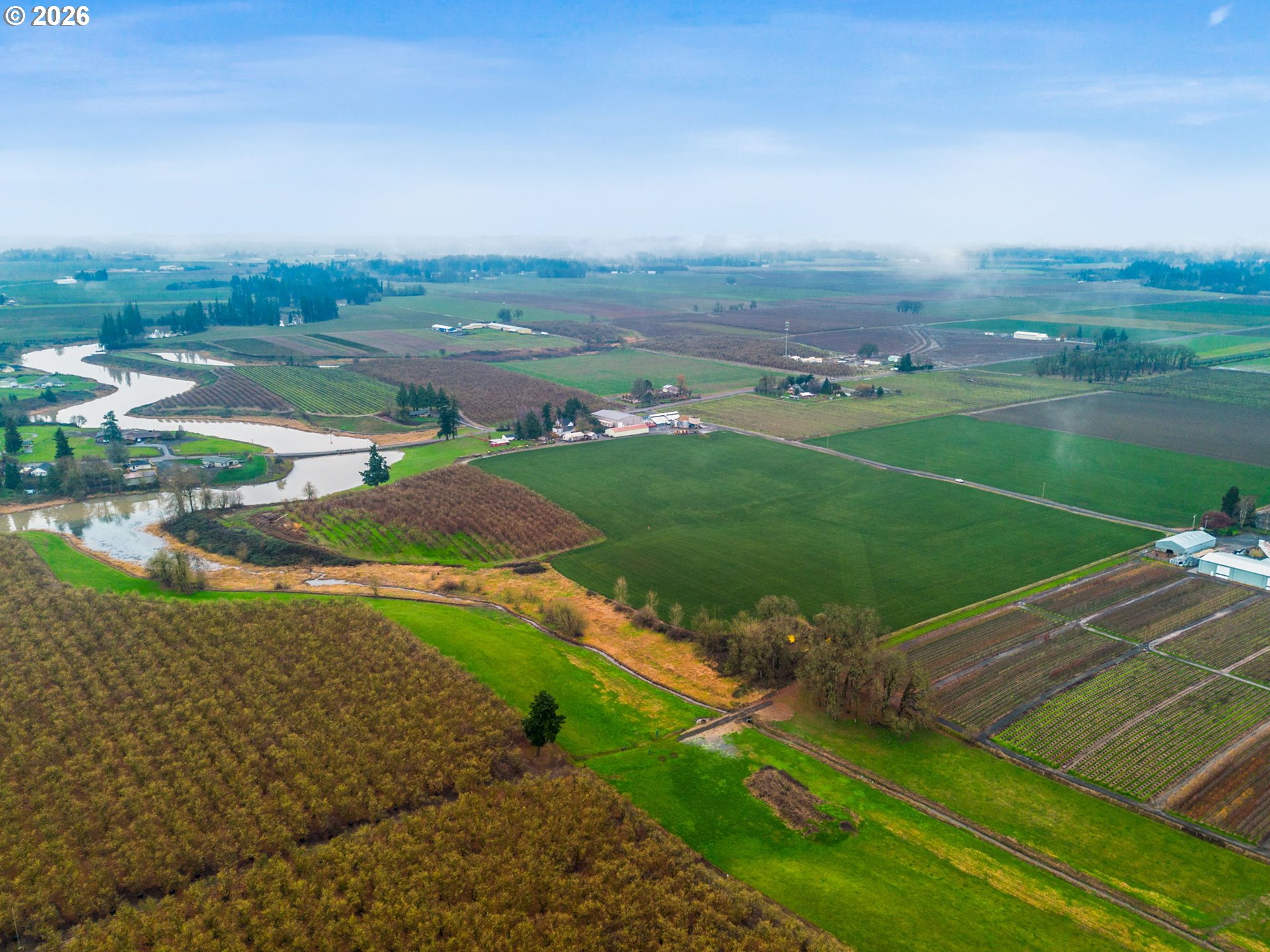 (503) 336-1515Prime Farm Opportunity with just over 175-acres (±151-tillable), primary irrigation water rights, patterned tiled, and mostly Woodburn Class 2 soils. Situated in the heart of Willamette Valley, the state’s premier agricultural hub. This farm has ±31.6ac in hop yard, ±20.9ac in hazelnuts, and remainder in grass seed/garlic production. Buildings include a shop/machine shed, picker/dryer buildings, and a 11,700 SF clear span warehouse built 2017 w/baler to process/store up to 400 ac of hops. A 2016 triple-wide manufactured home w/2,736 SF overlooks the creek and a small pasture area w/barn. Info package available for more details!