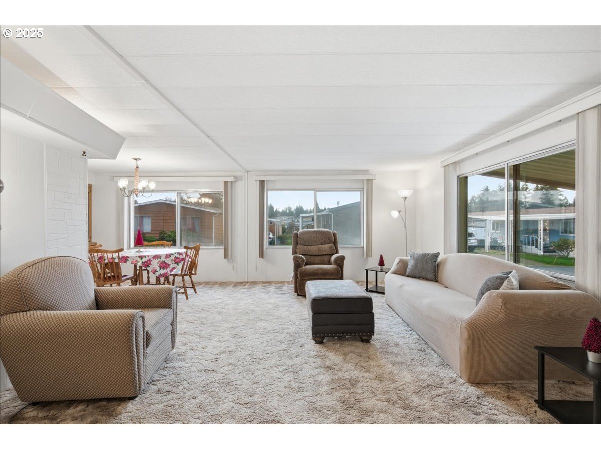 (503) 336-1515Discover comfort and convenience in this charming, move-in-ready 1973 doublewide home located in the desirable Sunnyside Mobile Home Park, a welcoming 55+ community. With 1,344 sq ft of living space, this home offers a bright open-concept layout and a wheelchair ramp leading to the front door for easy accessibility.Inside, enjoy two large bedrooms, two full bathrooms with new flooring and toilets, a spacious living room, cozy family room with an electric fireplace, and a dedicated utility room. The walk-in shower adds extra comfort, and the home has been professionally cleaned, including carpets. Central heating and AC, along with a new HVAC system and water heater, ensure year-round comfort. The kitchen comes fully equipped with all appliances—dishwasher, range/oven, refrigerator, microwave—and the washer and dryer are included. Plenty of storage throughout, plus a carport with an attached shed. All furniture is negotiable. The roof has been recently resealed, offering peace of mind. Space rent is only $815/month, with water/sewer/garbage billed separately at approximately $80/month. Community amenities include a clubhouse, workout room with brand-new exercise equipment, pool table, and a forest picnic area. All buyers must be park-approved. Cash only. This beautifully maintained home won’t last long—schedule your showing today!