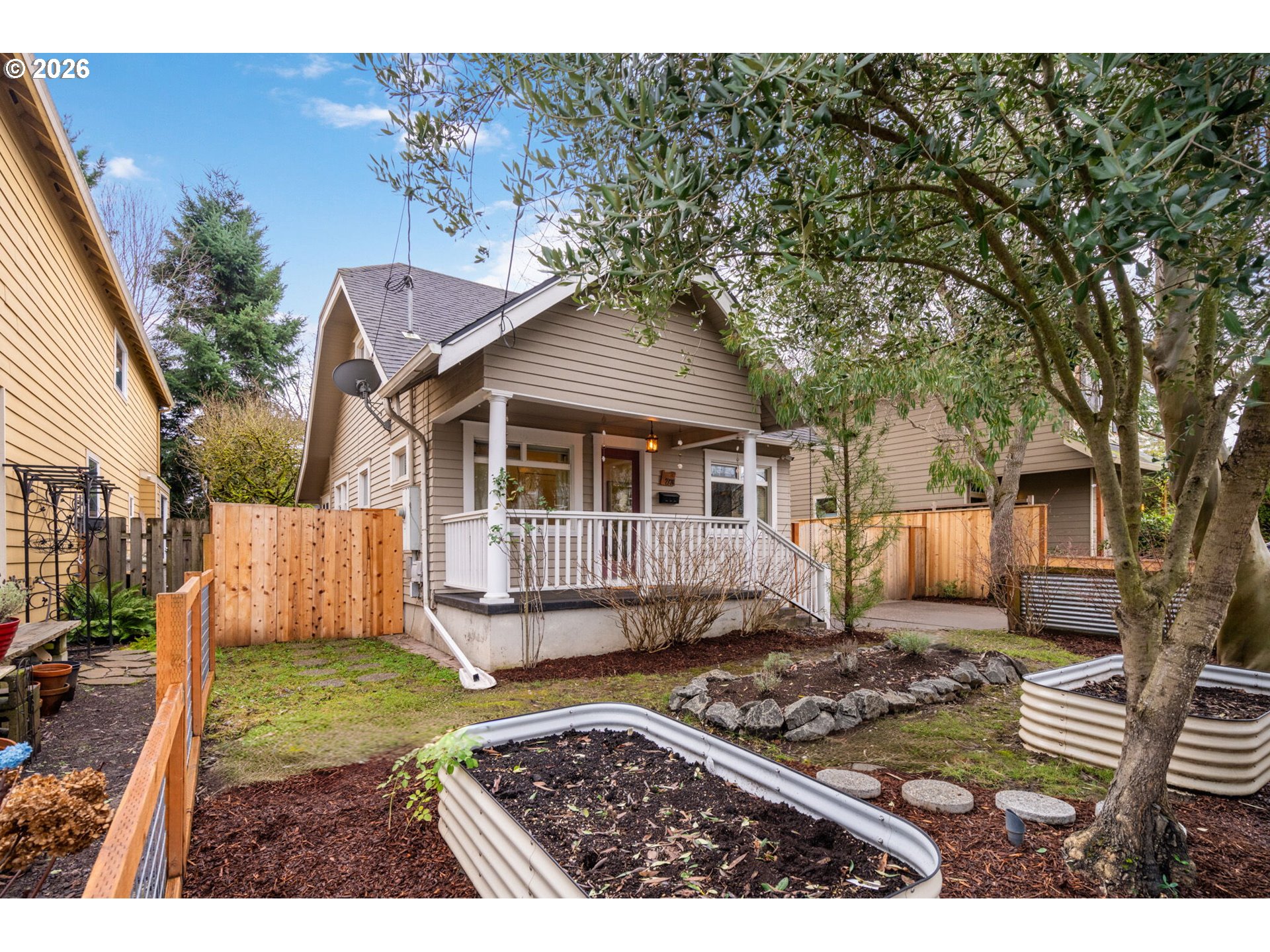 (503) 336-1515This classic Kenton bungalow welcomes you with open arms...1927 style meets modern day living! Picture mornings on your covered front porch with coffee in hand, watching the neighborhood come alive and roll on by, then stepping inside to sun-filled rooms with original hardwood floors and graceful archways that connect living to dining with effortless style. Your updated kitchen beckons with quartz counters and gas cooking, a pantry that ends clutter for good, and a mudroom that keeps daily life organized right from the get go. Upstairs, the spacious primary suite offers a peaceful retreat with a bonus sitting room, perfect for unwinding with a book and a view, while two main-level bedrooms provide flexibility. The basement with great headroom and an exterior entrance becomes your wild card: playroom today, workshop tomorrow, yoga studio next month, the choice is yours. Outside, the oversized detached two-car garage and extra-long gated driveway handle cars, RVs, trailers, boats, and weekend projects with room to spare, while the fully fenced backyard with mature fruit trees and multiple raised beds offers private outdoor living at its finest. Step beyond your yard and Kenton delivers: Posies Bakery and Presso Coffee are minutes away, Fred Meyer handles groceries in five, and Kenton Park, Columbia Park, and the vibrant Denver Avenue shops make this neighborhood feel like home from day one. This is classic PDX bungalow living with space, style, and a location that checks every box. [Home Energy Score = 3. HES Report at https://rpt.greenbuildingregistry.com/hes/OR10036022]