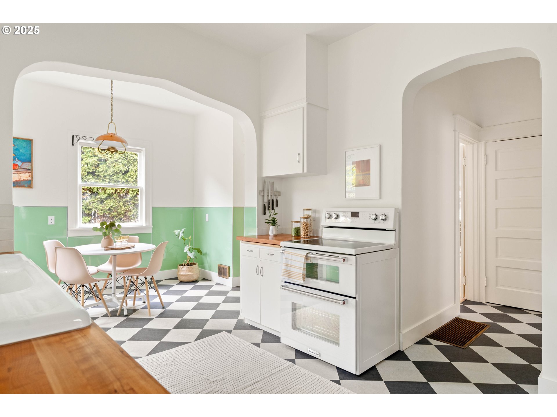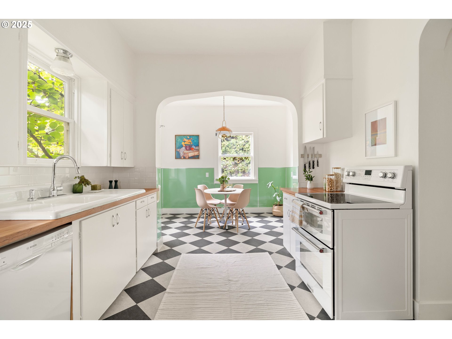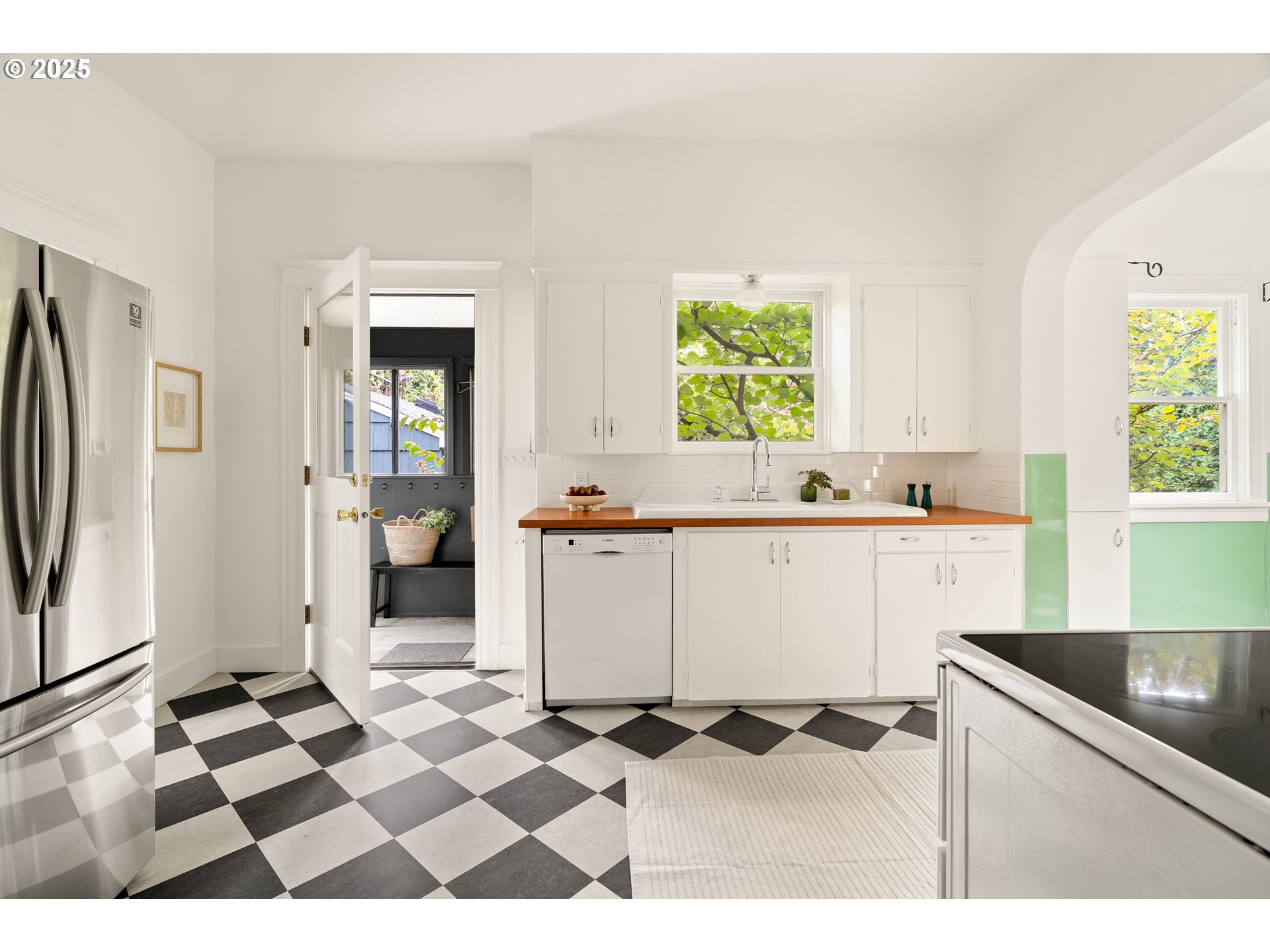 (503) 336-1515Curve Appeal! This one will truly make your heart skip: a vintage charmer where big living spaces glow with south-facing light and graceful curved archways and signature character abound. Original oak and fir floors were just refinished to a gleam. The kitchen? A stunner. Your friends will 100% be jealous. Spacious, remodeled with loving care, with full timeless charm intact. Picture yourself in the cutest eat-in jade nook you’ve ever seen, sunlight dappling the checkerboard floor, Bosch dishwasher quietly humming under Boos solid cherry butcher block counters. A mudroom and door into the backyard makes indoor-outdoor flow a breeze. The bathroom was fully remodeled with timeless tile work by Hawthorne Tile and a Strom bath fixture that keeps the vintage soul alive but adds modern function. The upstairs space works as almost anything you want. Primary bedroom with walk-in closet, play room, out-of-the-way of office? Your choice! Updates throughout mean you get both style and peace of mind: Carrier heat pump with central A/C (2023), 2017 electrical panel, re-wired and grounded main floor outlets, updated second-floor wiring and insulation (2025), Level 2 Siemens EV charger in the driveway, updated plumbing lines (copper + PEX), and detachable storm windows.The basement is just a basement, but it’s perfect for storage or workshop space, with a convenient exterior door to the back yard. The fenced back yard has plenty of room to garden or lounge, and the big front porch is just begging for slow mornings and summer evening hang-outs (plus lots of mature blueberries to share). Grab a coffee or juice at Best Friend Café just down the street, with parks, restaurants, and shops so close! Walk Score 81 (very walkable), Bike Score 94 (biker’s paradise).This isn’t just a house, it’s a warm welcome into a sweet neighborhood where light, charm, and community curve together perfectly. Come see! [Home Energy Score = 5. HES Report at https://rpt.greenbuildingregistry.com/hes/OR10241981]