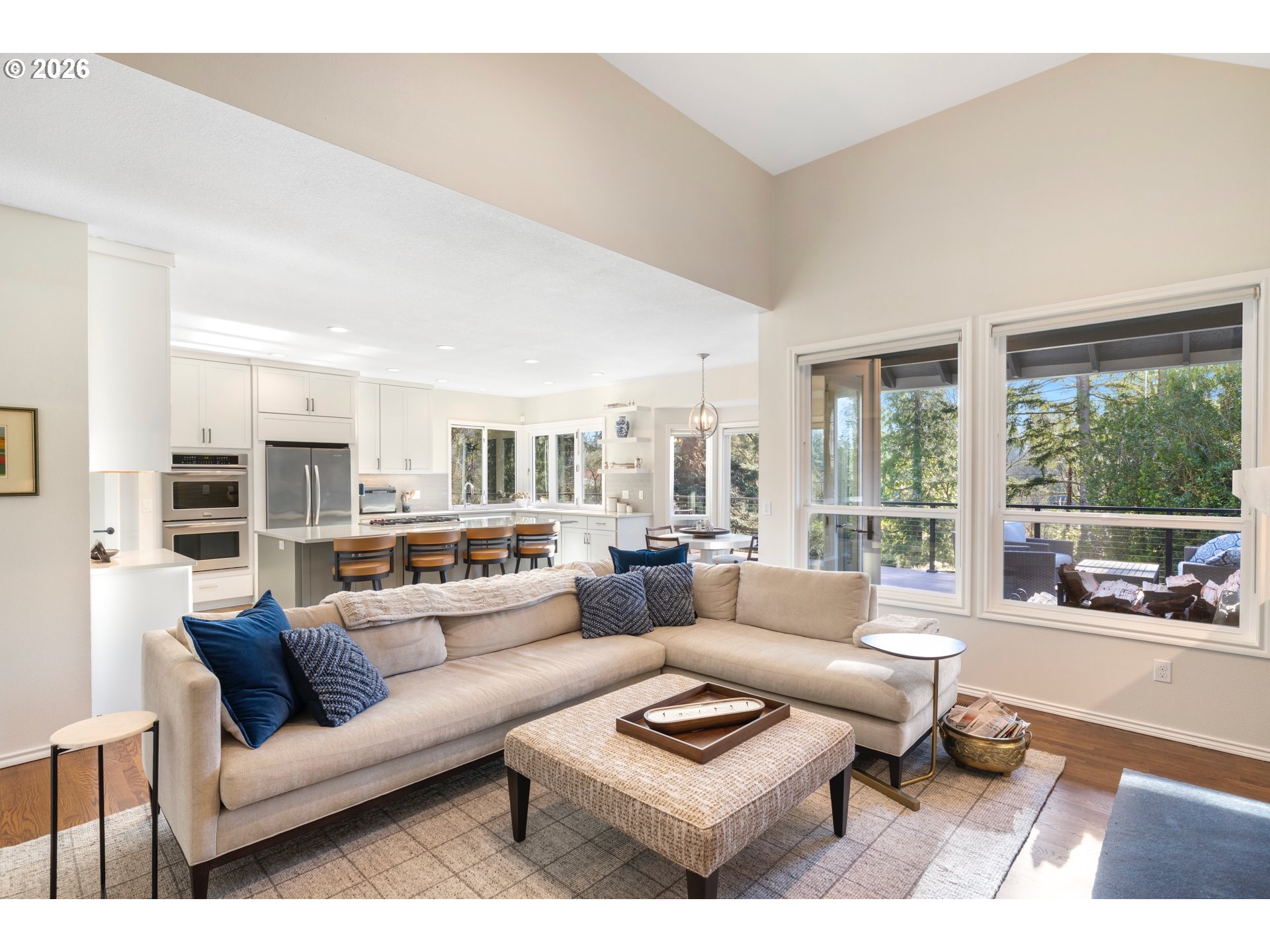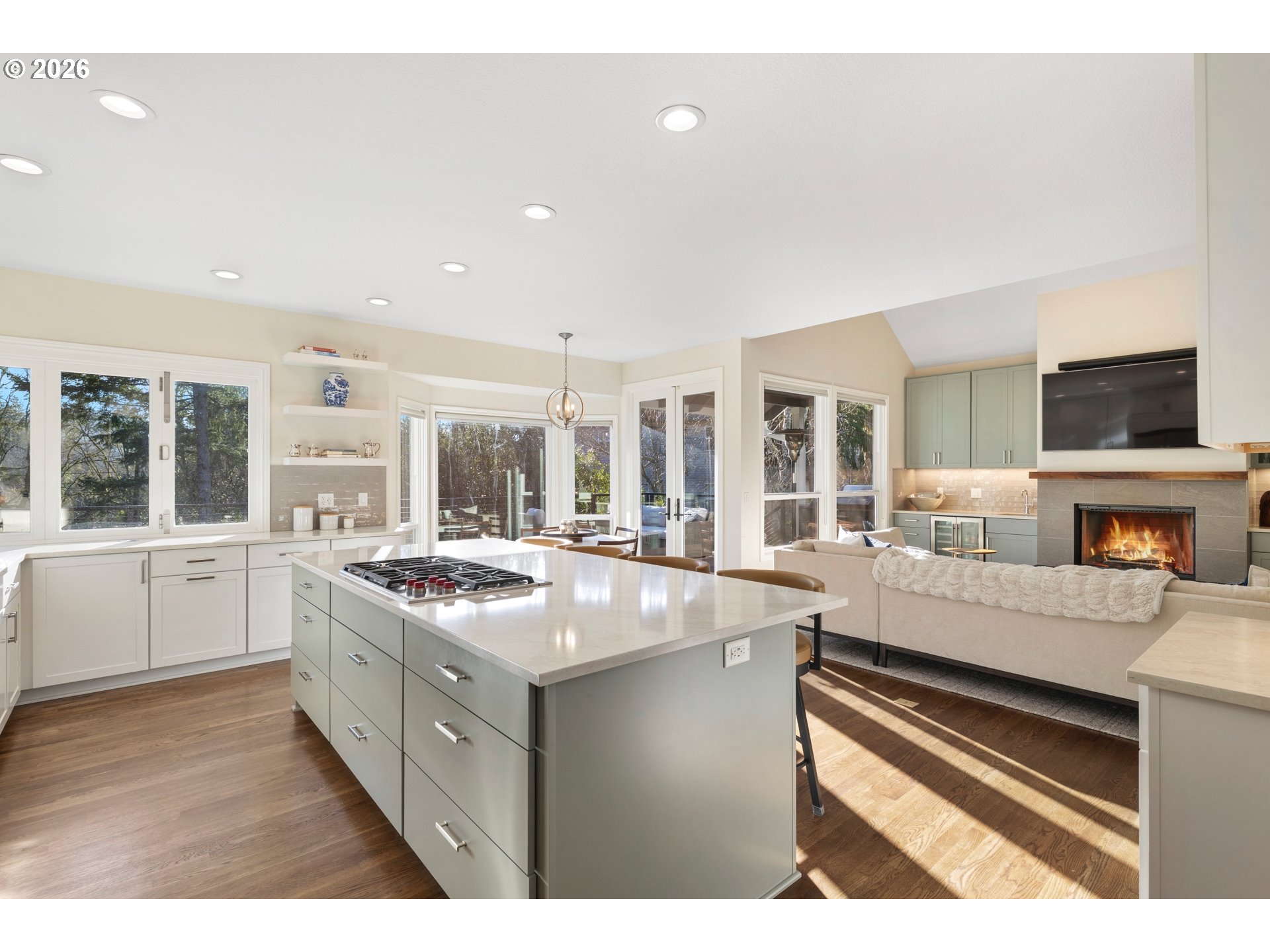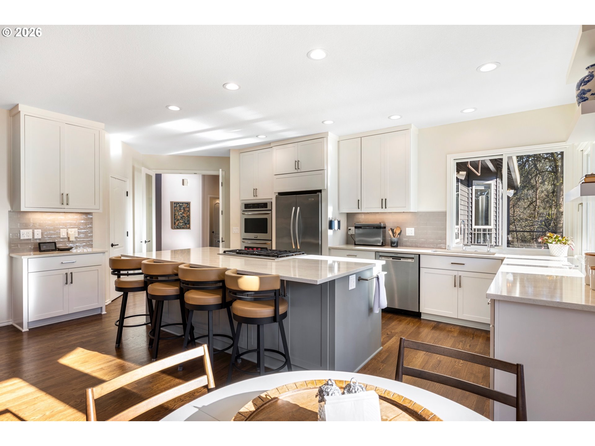 (503) 336-1515This stunning traditional sits on nearly a third of an acre at the end of a quiet cul-de-sac in the highly desirable Bridlemile neighborhood. A one of a kind floor plan and head to toe remodel that is meticulously maintained and enjoys a forest like green space off the back. The main level features a show stopping kitchen that has all new cabinets, quartz countertops, tile backsplash, a Wolf cooktop, a massive island, a walk in pantry, a breakfast nook, and a one of kind bifold window for access to the outside bar. The family room has a stunning custom gas starter fireplace with builtin cabinets, a beverage and wine fridge and expansive windows. The hard to find primary on the main enjoys high ceilings, deck access and an elegantly updated bathroom with two vanities, a free standing tub, a tile steam shower, and a walk-in closet with a high end custom builtins. The rest of the main level features a cozy den, an entertainer’s dining room, a large formal living room with a gas starter fireplace, a powder bathroom, and a functional laundry room equipped with a sink, fridge and ample counter and cabinet space. The upper level comes with three spare bedrooms, two beautifully updated bathrooms, and a large bonus room that can serve multiple purposes. The one of a kind exterior enjoys a stunning green belt and creek, mature trees and shrubs, and a large flat grass area perfect for outdoor activities. Entertaining is a dream with the new composition deck stretching nearly the entire width of the home, an outdoor bar, a covered area for all weather enjoyment and a inviting fire pit. The massive crawlspace is accessed with a standard size door and is perfect for storage, a shop or opportunity to finish for additional living space. Rest easy with the newer 50 year roof, oversized 3 car garage, high end cedar siding, fresh interior & exterior paint & more! Top of the line schools and only minutes from Hamilton Park, Multnomah Village, Oregon Zoo, OHSU, major highways & trails! [Home Energy Score = 2. HES Report at https://rpt.greenbuildingregistry.com/hes/OR10243711]