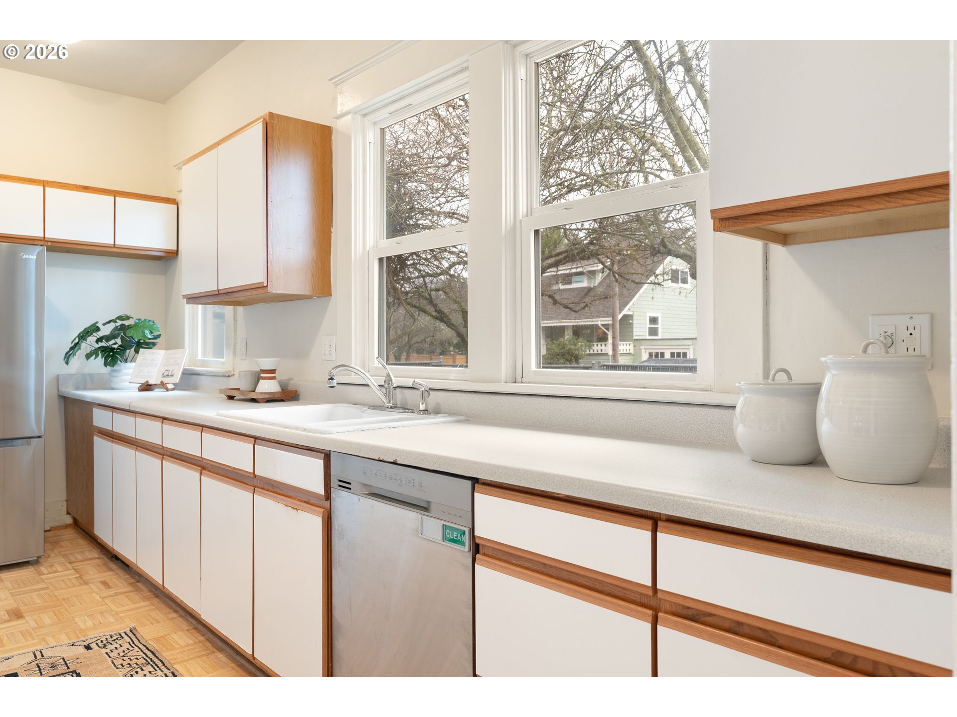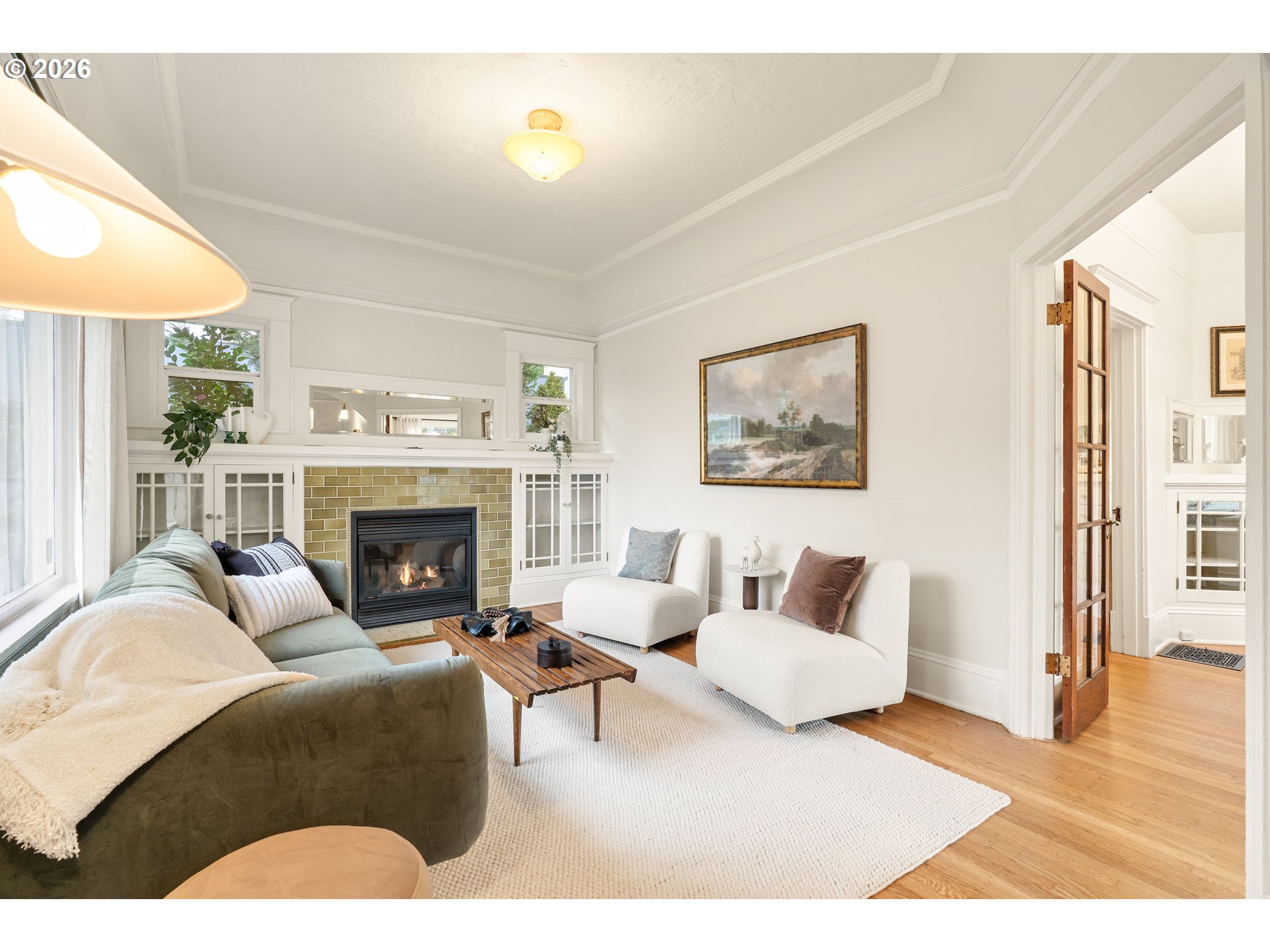 (503) 336-1515This classic 1908 charmer sits on a sunny corner lot in the heart of one of North Portland’s most walkable neighborhoods, with a wisteria-wrapped front porch offering front-row seats to the hustle + bustle of Overlook. Inside, timeless character shines with refinished hardwoods, fresh interior paint, and lofty 10-foot ceilings with picture railing, original millwork, and a cozy gas fireplace framed by artisan tile and original built-ins. French doors lead to the dining room with antique lighting, a beautiful picture window overlooking the garden, and a built-in buffet with beveled mirror backsplash and glass knobs. With 3 bedrooms and 2 bathrooms, there’s plenty of room to live, work, and/or entertain to your heart's content. The unfinished basement provides generous storage and laundry space, with future finishing potential for those with vision. The fully fenced yard features a sliding gate that provides secure off-street parking, along with raised garden beds, fruit trees, and an established grape arbor. Major updates include: new roof (2019), exterior paint, double-pane windows, furnace and A/C (2023), sewer line (2013), and a decommissioned oil tank. Zoned CM1, offering flexibility for small business, office, or mixed-use with strong exposure along Greeley St and excellent visibility to vehicular traffic, public transit riders, cyclists and pedestrians alike, making it appealing to both owner-occupants and investors seeking live/work or income potential. Just steps to Adidas HQ, as well as neighborhood coffee shops, food carts, pubs, restaurants, parks and easy transit to the rest of the city. Don't "Overlook" this opportunity! [Home Energy Score = 2. HES Report at https://rpt.greenbuildingregistry.com/hes/OR10241795]