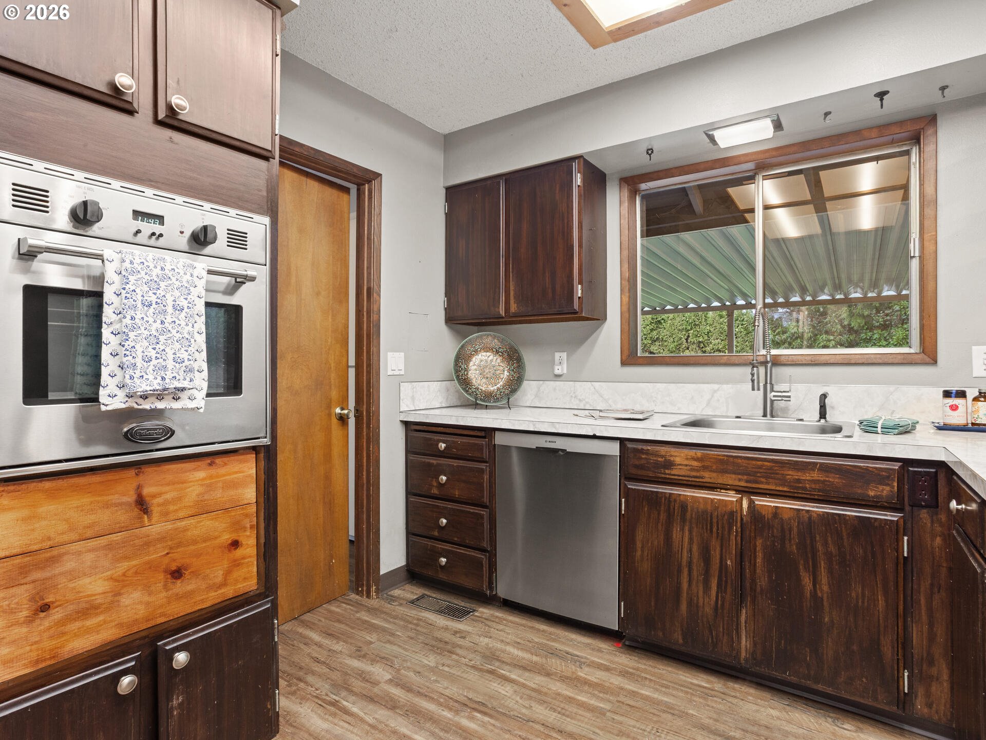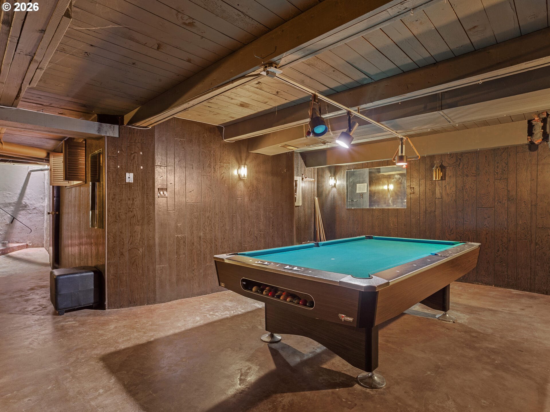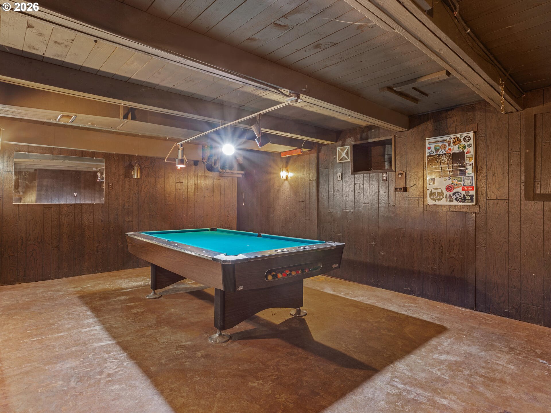 (503) 336-1515Mid-Century Modern Ranch Dream in Excellent Vermont Hills Location! Enter the hand scraped wood entry through oversized double doors, into this tastefully updated home, with thoughtful consideration to character and charm of mid-century living. Hand crafted wood paneled entry cove bench with area for shoe and coat storage, vinyl plank wood like floors throughout. Open living room with stately double sided brick fireplace, complete with large picture windows, overlooks the tree lined view of SW Portland. Spacious kitchen with plenty of storage and stainless steel appliances. Dining area with double doors leading to terraced backyard, garden beds, flat seating or possible firepit area, and hot tub pad with hookup. 3 full bedrooms, complete with primary suite and full updated bath with poured concrete countertops, custom overmount sink, and designer mirror and lighting. Patio door in primary leading to spacious and private backyard setting, with concrete pad, perfect for patio seating or a hot tub. Built-in shelving and desk in second bedroom. Oversized two car garage with additional workspace for hobbies and toys. Garage stairs lead down to finished storage area, perfect for hobbies, play, storage, or bring your imagination. Pool table included. New 25-year composition roof to be installed and included prior to closing. Open house Sunday, 01/11, from 11am - 1pm. [Home Energy Score = 5. HES Report at https://rpt.greenbuildingregistry.com/hes/OR10243343]