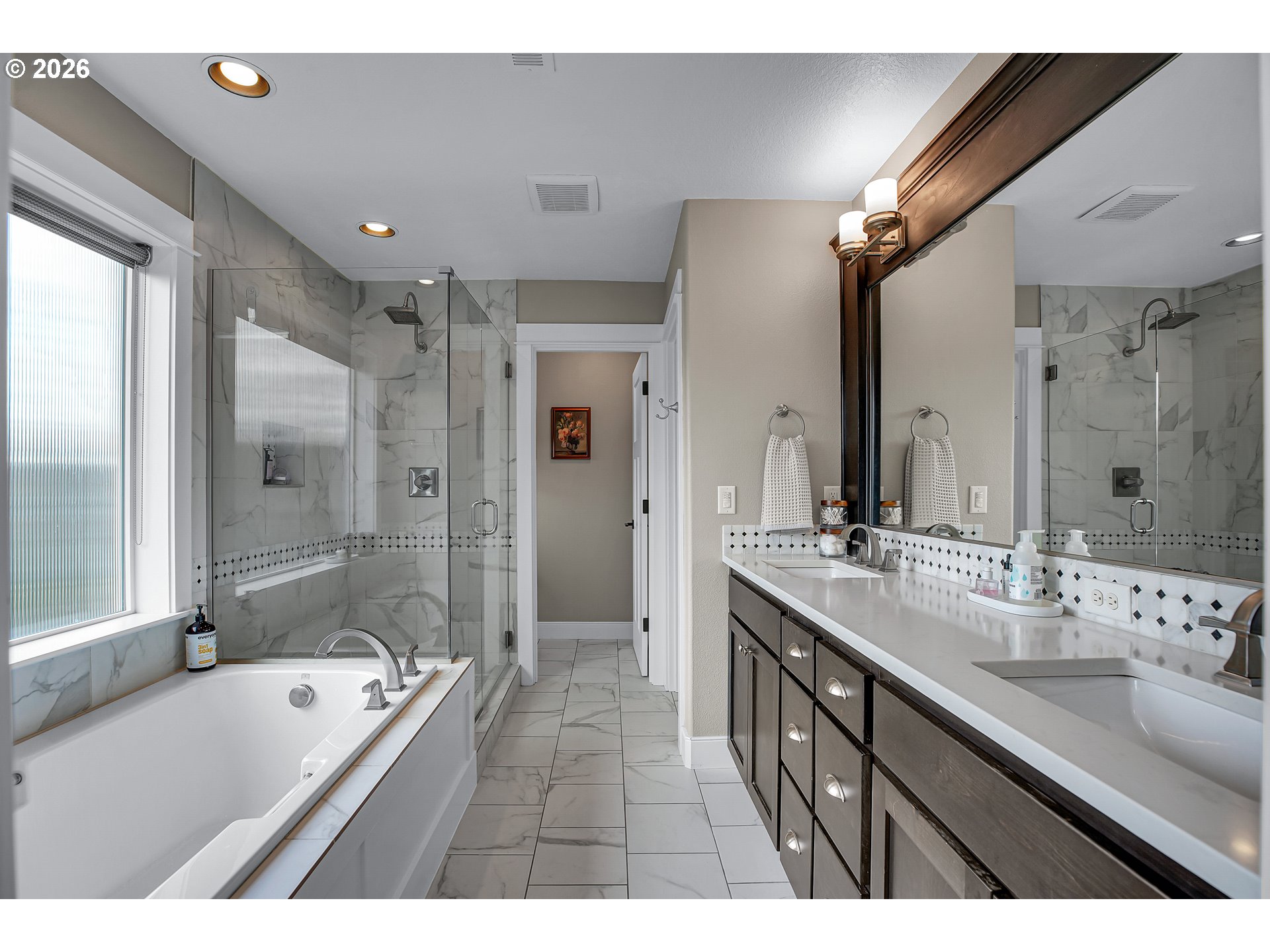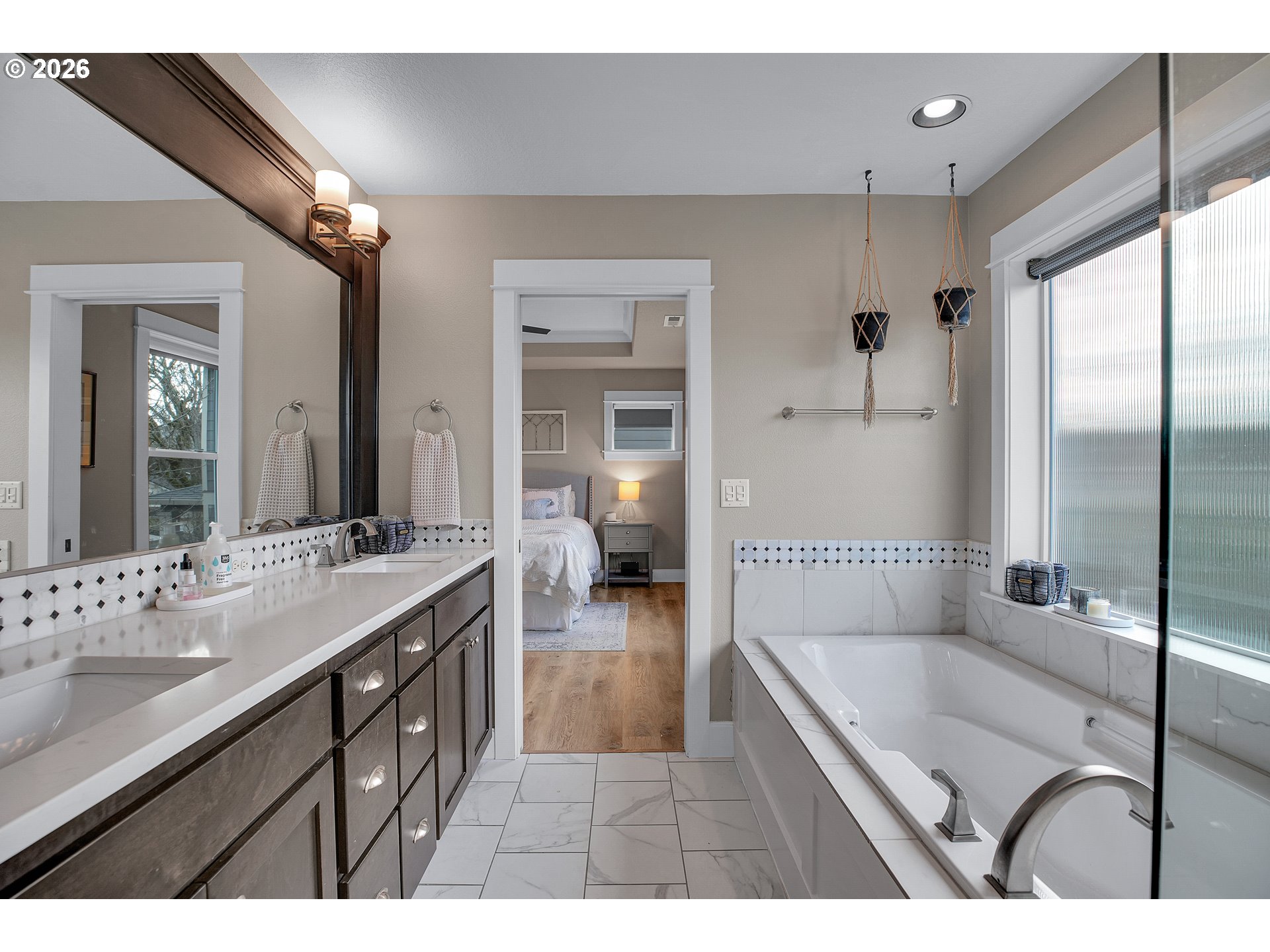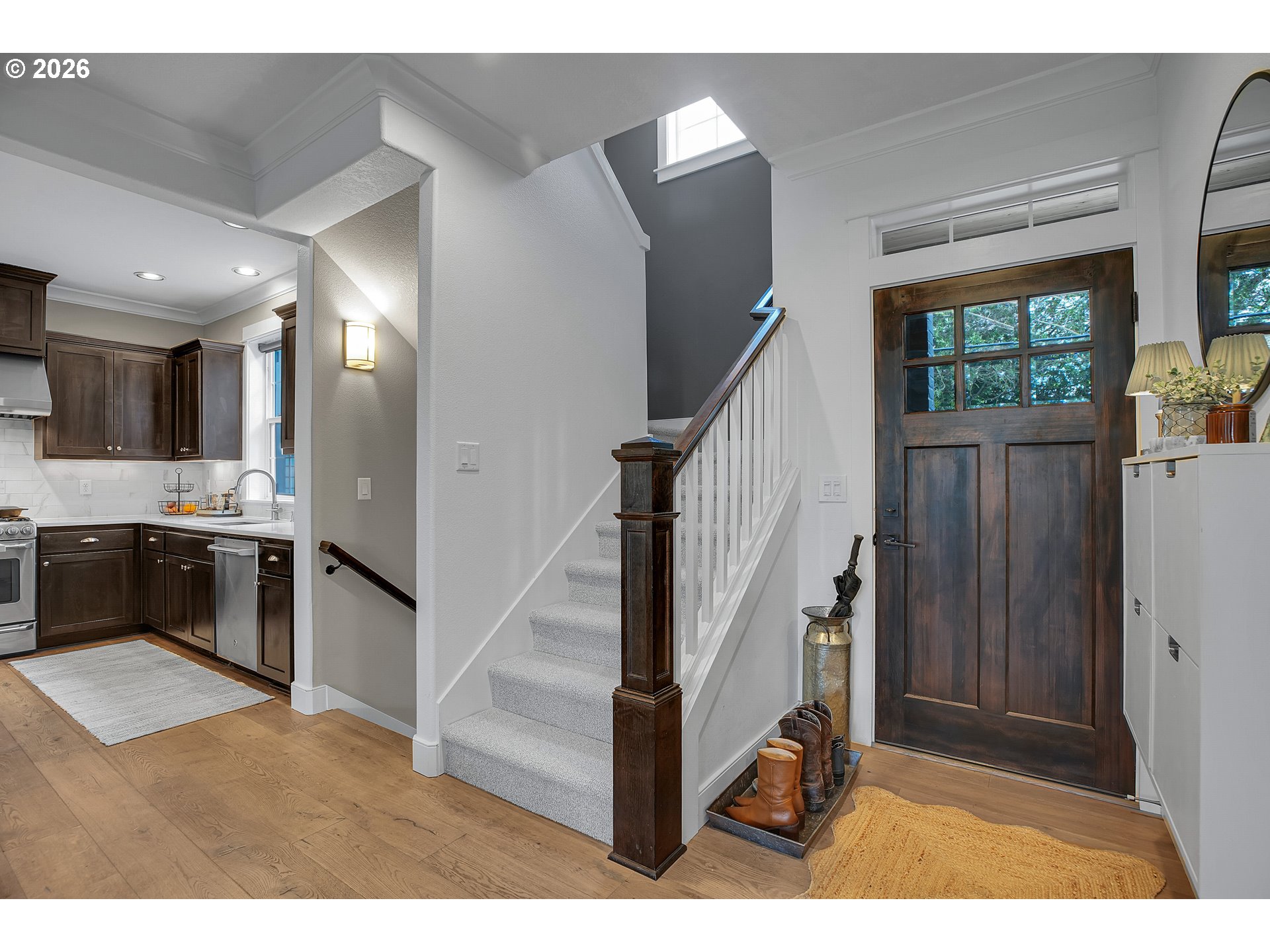 (503) 336-1515This light-filled, spacious home is designed to make everyday living feel effortless. From the moment you enter, tall ceilings and a striking coffered entry create a welcoming first impression, complemented by hand-scraped wide plank floors, elegant millwork, and custom built-ins that add both beauty and function. The open-concept layout is ideal for today’s lifestyle, flowing seamlessly into a chef’s kitchen with quartz countertops, stainless steel appliances, and plenty of space to cook, connect, and entertain. A cozy gas fireplace anchors the main living area, while a second gas fireplace on the covered patio extends your living space outdoors—perfect for year-round enjoyment. The private, landscaped backyard is a peaceful oasis where you can enjoy morning coffee, host friends, or relax into the weekend. Upstairs, you’ll appreciate the convenience of a centrally located laundry room. The primary bedroom has a sun-filled en suite bathroom with a deep soaking tub, double sink, and walk in closet. Every space is thoughtfully planned to maximize comfort, flow, and usability. The separate living quarters downstairs adds incredible flexibility—ideal for guests, multigenerational living, a home office, or potential rental income, with a history of Airbnb use. A tuck-under garage provides additional space for storage or a workshop. With 4 bedrooms, 3.5 baths, 2,247 square feet, and modern 2016 construction, this home offers the perfect balance of style, functionality, and livability. Come see for yourself—this is a place you’ll truly love coming home to. [Home Energy Score = 7. HES Report at https://rpt.greenbuildingregistry.com/hes/OR10185618]