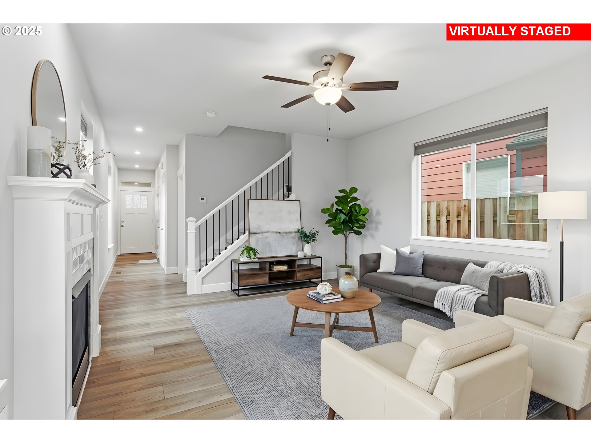 (503) 336-1515Tucked into a classic Portland neighborhood, this modern two-story home delivers clean lines, smart design, and effortless livability. The covered entry opens to a light-filled, open-concept main level where a statement fireplace anchors the living space and large windows bring the outdoors in. The kitchen blends style and function with stainless steel appliances, a tiled backsplash, an eat-up bar, and a dining nook made for slow mornings or lively dinners. Slide open the glass door to a fully fenced backyard with lush grass—your own private urban escape. Upstairs keeps things streamlined with all bedrooms on one level, a dedicated laundry room, a full hallway bath, and a generously sized primary suite complete with an ensuite soaking tub. An attached one-car garage adds everyday convenience to this polished, contemporary Portland home. [Home Energy Score = 8. HES Report at https://rpt.greenbuildingregistry.com/hes/OR10202927]