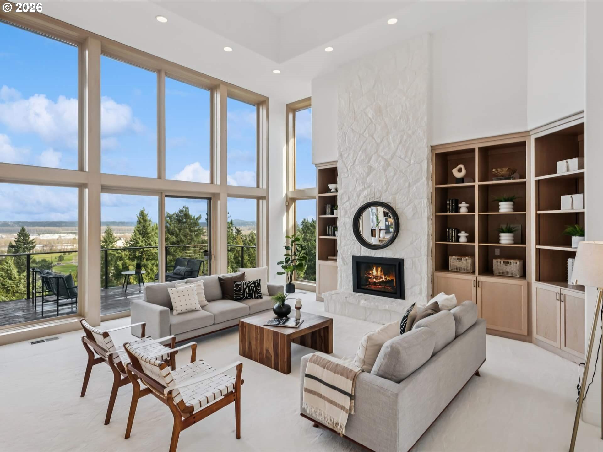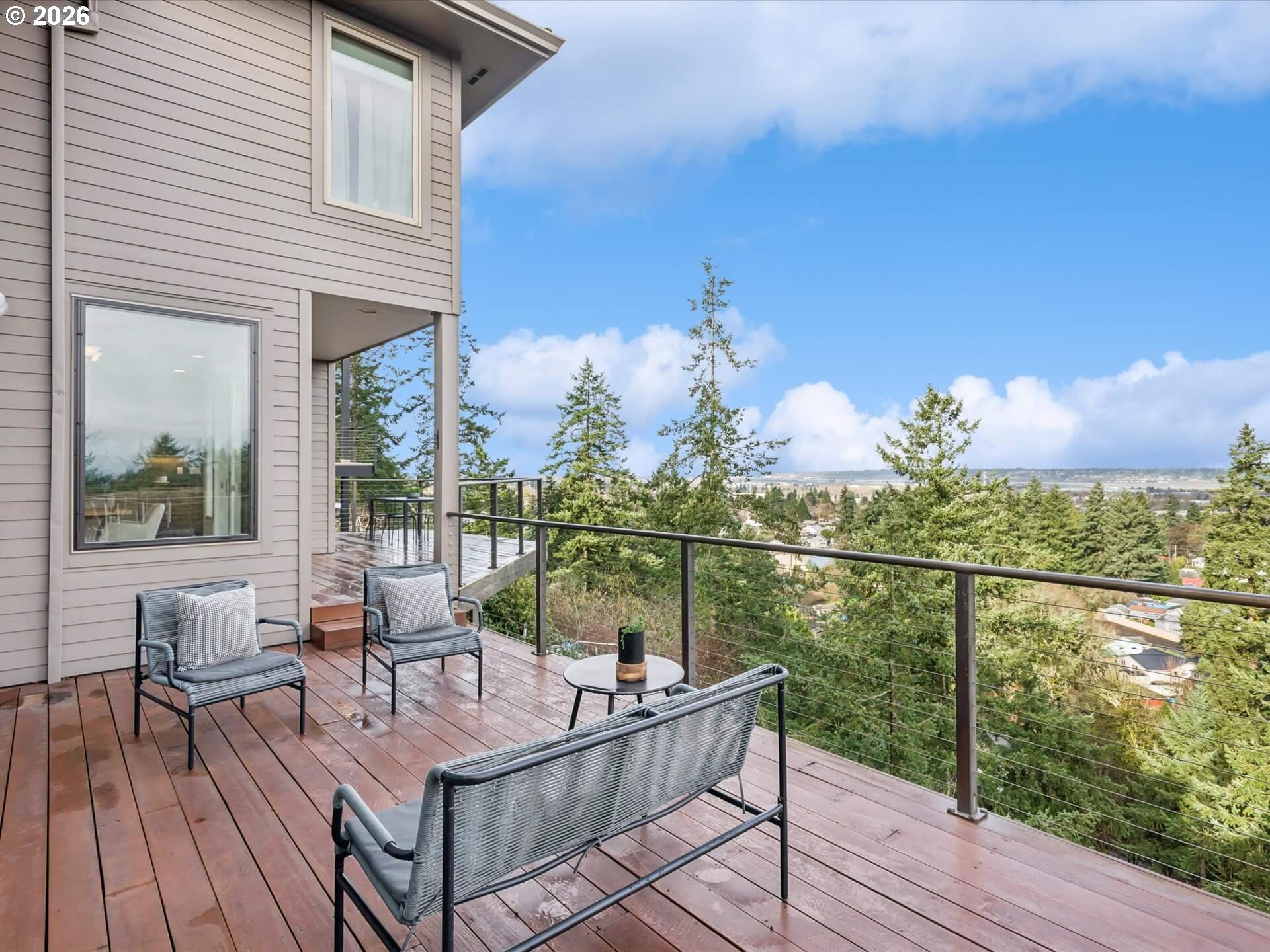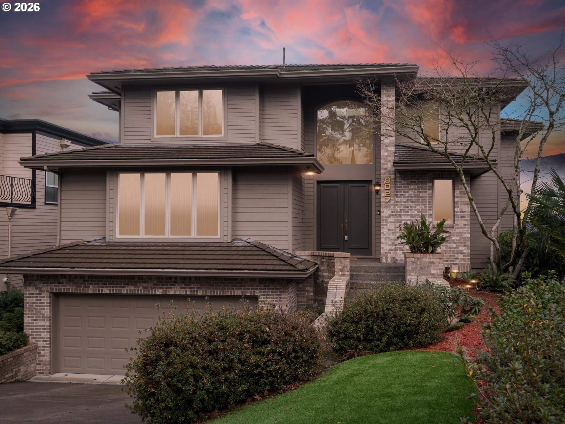 (503) 336-1515Stunning 1994 Northwest traditional with sweeping, unobstructed views of Mt. St. Helens, Mt. Adams, and Mt. Rainier. Soaring floor-to-ceiling windows and an expansive deck spanning the full width of the home create a front-row seat to the scenery. Over 5,200 square feet of thoughtfully designed living space includes a dramatic formal entry, four gas fireplaces, and an interior elevator serving all three levels. The primary suite is a true retreat with fireplace, private balcony, and north-facing mountain views. Enjoy multiple living areas, including a main-level family room or oversized den and a lower-level family room opening to a private covered deck. Tile roof, brick and fiber-cement siding, four-car tandem garage, abundant storage, private generator, sprinkler system, and central AC. A rare blend of scale, comfort, and unforgettable views. [Home Energy Score = 3. HES Report at https://rpt.greenbuildingregistry.com/hes/OR10243318]