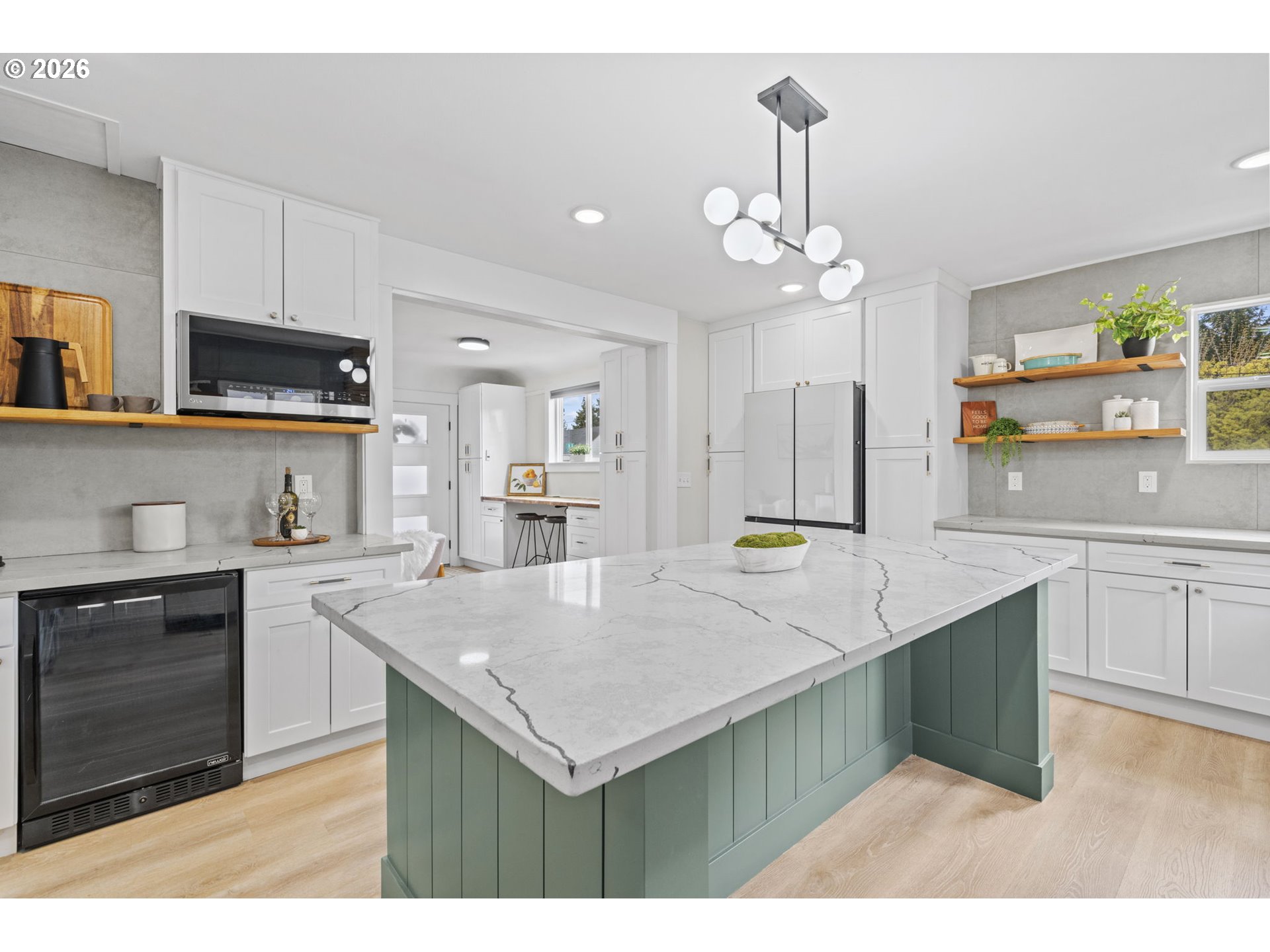(503) 336-1515Welcome home! This tastefully updated, turn-key residence is truly move-in ready. A brand-new, expansive low-maintenance Trex deck welcomes you to the front door and sets the tone for what’s inside. Step into beautiful new flooring, custom light fixtures, and thoughtfully designed built-ins throughout the entry, living room, and kitchen.The kitchen is a showstopper, featuring stunning quartz countertops, soft-close cabinetry, high-end appliances, wine fridge and a large eat-at island—perfect for everyday living and entertaining alike. The main level offers a well-appointed primary bedroom with a spa-inspired en-suite bath, complete with an oversized shower, plus a guest bedroom and convenient half bath. The lower level expands your living space with a spacious family room, kitchenette, full bathroom, dedicated laundry room, a large bedroom with an oversized walk-in closet, and a fourth bedroom or bonus room ideal for a home office, game room, or flexible workspace. The lower level has a great layout for a separte ADU and it's own entrance. Major upgrades include a new roof, electrical, plumbing, and HVAC system—providing peace of mind for years to come. With quality updates throughout and attention to detail at every turn, this home is a rare find. Hurry—this gem won’t last!