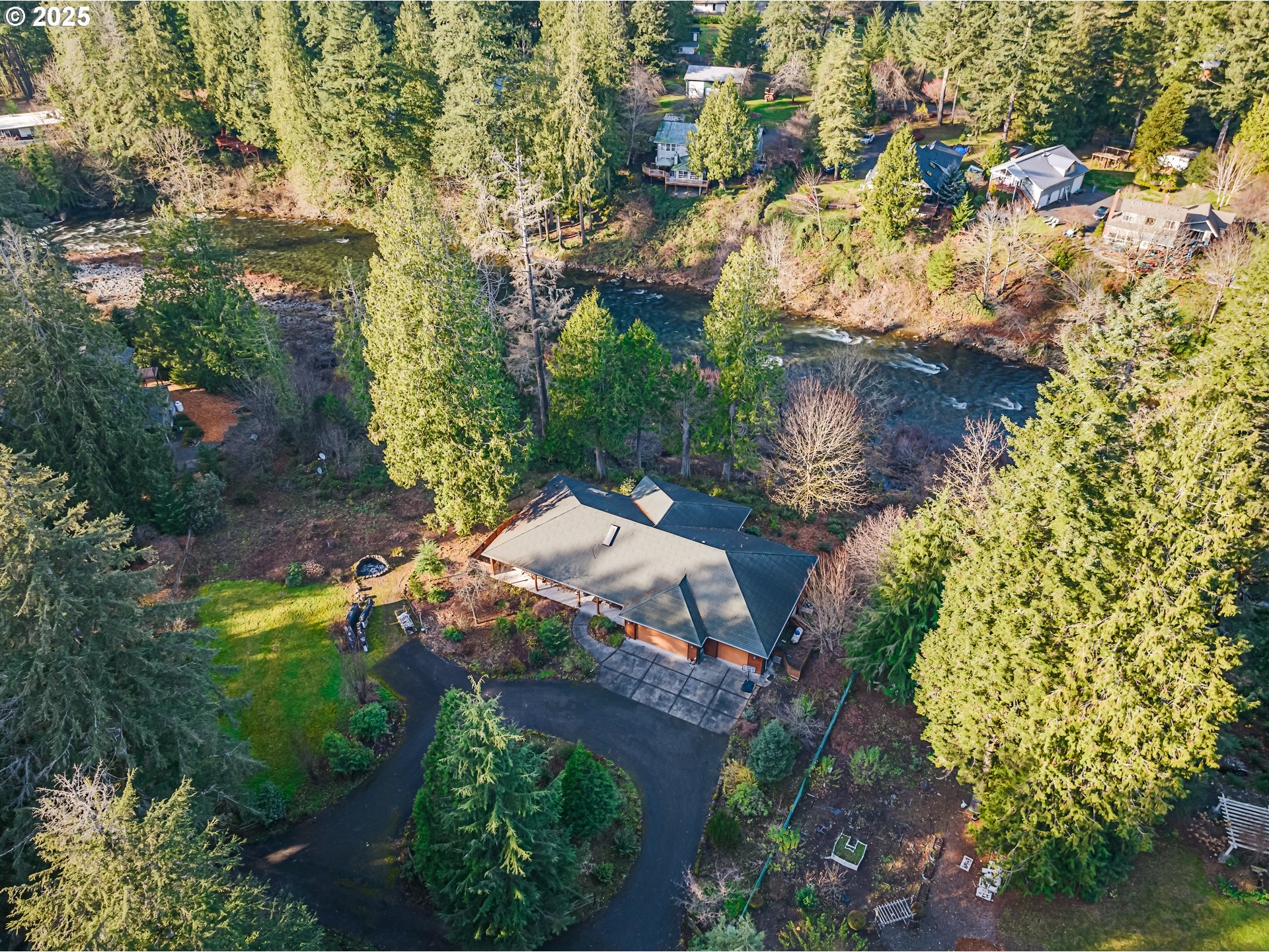 (503) 336-1515One-of-a-kind custom home on the Washougal River! Enjoy your own wooded oasis on over 2 acres with tranquil riverfront views and exceptional privacy. Inside, the home features beautiful knotty pine finishes repurposed directly from the property. The vaulted living room offers a warm retreat with an oversized propane fireplace and access to the full-length wraparound deck.The vaulted primary bedroom includes skylights and opens directly to the deck, allowing you to step outside to take in the river views and re-enter through the living room or utility room. The kitchen features granite counters, built-in oven and cooktop, and a brand-new built-in refrigerator.A large circular driveway leads to a 3-car garage, including a separate 3rd bay/workshop. Flexible spaces include a 3rd bedroom that can function as a bedroom or office, plus an additional utility/office room for extra versatility. Outside, enjoy a spacious yard with a large fire pit and room for expansion, plus ample parking for vehicles or an RV.This property offers the perfect blend of seclusion and convenience—country living just minutes from town and steps from the general store. Impeccably maintained shared well, septic system, and no HOA. Whether as a peaceful primary residence or an unforgettable vacation home, this riverfront retreat is truly unique.