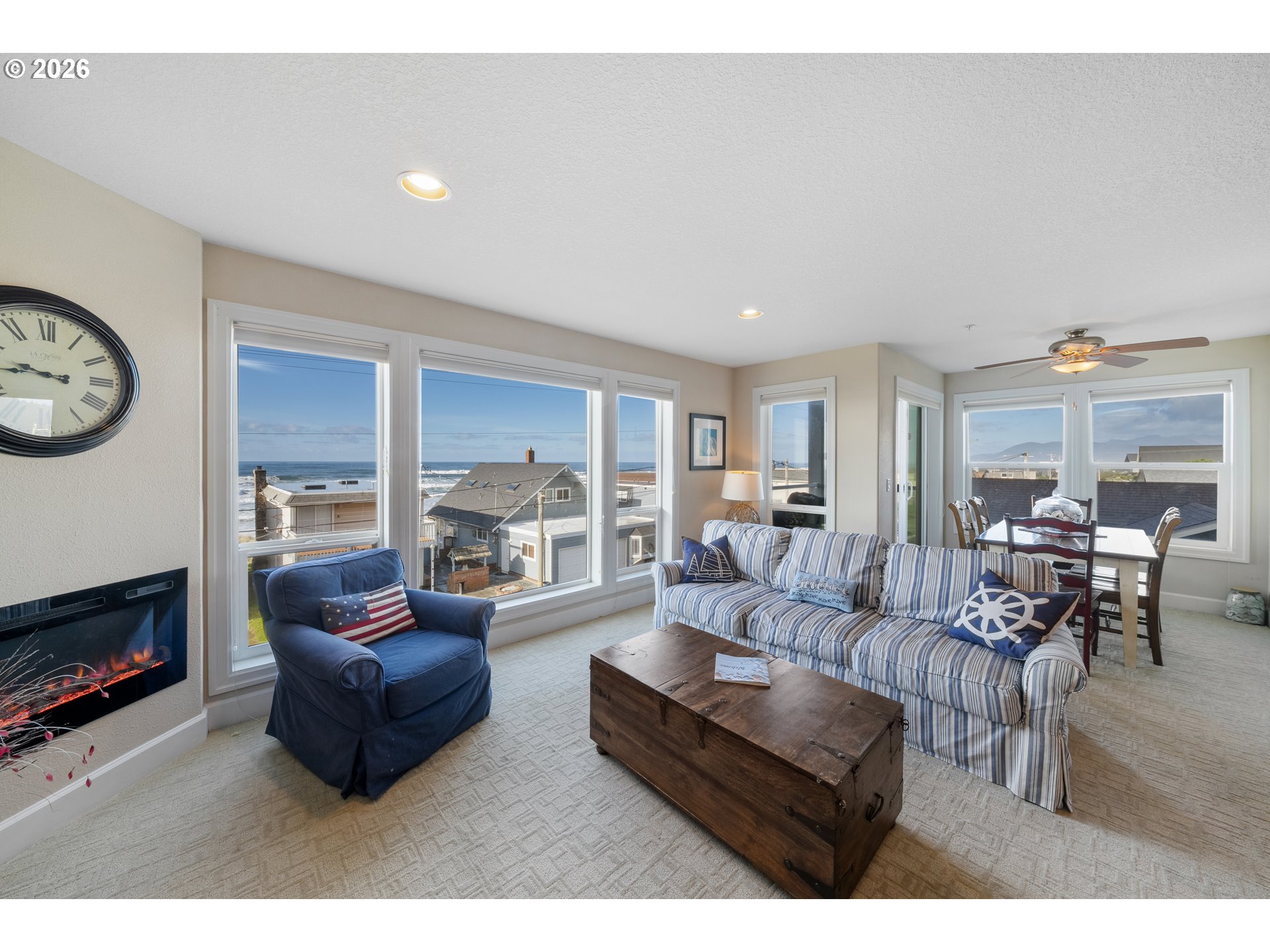 (503) 336-1515Delightful corner unit on the top floor featuring expansive ocean views -PLUS- a transferable short-term rental permit. An ideal opportunity for 1031 exchange buyers and coastal investors. Positioned as an end unit with windows on two sides, the condo is filled with natural light and big ocean views. In fact, both bedrooms and the living area feature views of the mighty Pacific. Even better, a covered balcony provides a comfortable vantage point for watching sunsets and passing storms no matter the weather. Once outside, there is direct access to seven miles of sandy shoreline right out the front door. This 4th floor unit is all on one level with elevator access making it a breeze to come and go. The open-concept living, dining, and kitchen area is designed for gathering with family or friends after long days at the beach days and coastal adventures. Chefs will delight in the kitchen with its granite countertops, generous cabinetry, and a central island for entertaining. Offered fully furnished, this well maintained unit is move-in ready for personal use or continued short-term rental operation. The primary suite includes an ensuite bath and a peaceful retreat after long walks on the beach, while the second bedroom and adjacent full bath comfortably accommodate guests or vacation renters. Includes two assigned parking spaces in the tuck-under garage. From beachcombing and kite flying to crabbing, fishing, and long walks or bike rides along the sand, Rockaway Beach offers the simple pleasures the coast is known for—saltwater taffy shops, classic arcade fun, scenic train rides, Tillamook ice cream, and an easy stroll to local restaurants, coffee shops, and boutiques. Located in a well-managed, pet-friendly complex where rentals are allowed, this top-floor corner unit delivers a compelling blend of views, lifestyle appeal, and long-term investment value on the North Oregon Coast. Reach out today to schedule your private showing!