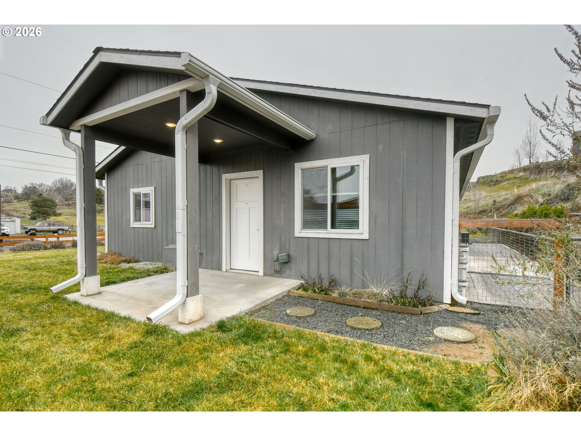 (503) 336-1515Welcome home to this beautifully built 2021 residence offering 1,200 sq ft +/-, 3 bedrooms, 2 bathrooms, and an attached garage, perfectly situated just off Tutuilla Road, across from a City park and easy walking to Sunridge Middle School - an ideal setting for kids, pets, and outdoor enjoyment. Step inside to find all the modern finishes buyers love; durable vinyl plank flooring, granite countertops, and soft-close cabinetry. The open, functional layout makes everyday living easy and entertaining a breeze. Outside, enjoy a nicely landscaped yard with a BBQ area with pavers, garden boxes, and a fenced area on the south side. The rounded driveway provides effortless RV parking and ease of access, complete with an RV outlet and RV drain—a rare and valuable feature. Additional highlights include a 10x10 storage shed, leaf-guard gutters, and exterior hot and cold-water faucets, perfect for washing vehicles or pets year-round.This home truly has all the bells and whistles and is priced perfectly for a move-in-ready, hassle-free experience. Don’t miss out—call today to schedule your showing!