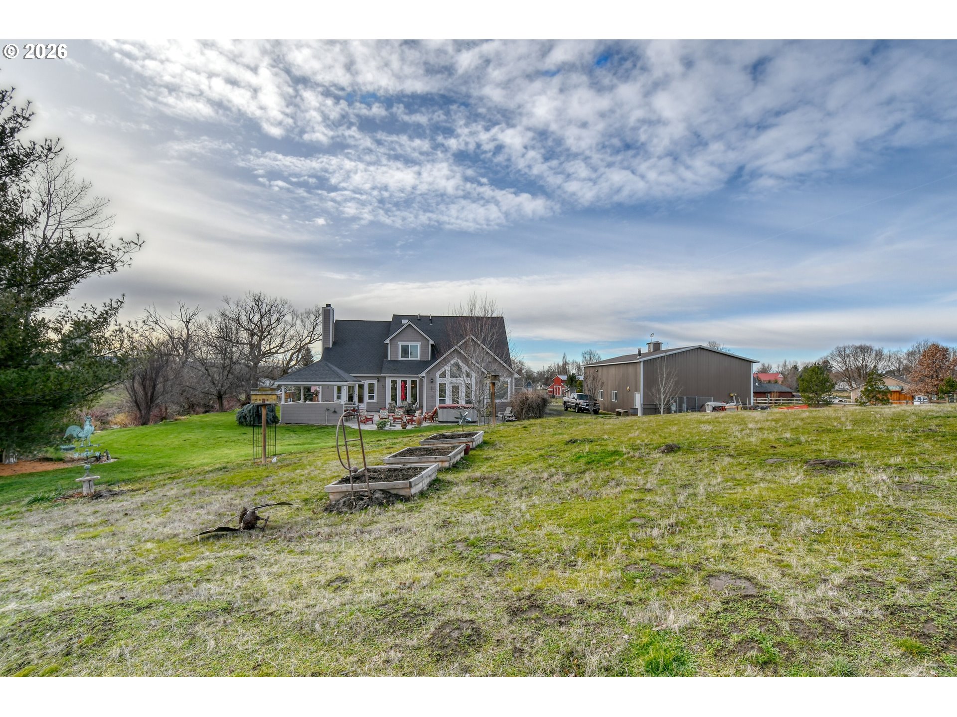 (503) 336-1515Welcome to peaceful Eastern Oregon living in the always enjoyable community of Adams. This beautifully custom-designed and built 4-bedroom, 2.5-bath home offers 2,970 +/- square feet of quality craftsmanship with convenient access to both Pendleton and Walla Walla. Step inside to soaring vaulted ceilings that feature richly colored plaster walls. Carlisle wide-plank flooring, and elegant travertine marble floors that create a timeless and inviting atmosphere. The gourmet chef’s kitchen is thoughtfully designed with stainless steel appliances and ample space for entertaining and everyday living. Outdoors, enjoy a private patio retreat featuring a gazebo fully equipped with gas and electrical service—perfect for gatherings or quiet evenings. The 5.2 acres of fenced pasture provide ideal space for a horse or outdoor recreation, complete with a mowed walking path that winds along a tranquil creek. A standout feature of the property is the 30' x 48' fully finished and insulated shop, offering room for a Class A motorhome, a boat, generous storage, and a dedicated workbench for projects of any size. This exceptional property blends refined interior finishes, functional outbuildings, and serene acreage—an ideal setting to enjoy the good life in Eastern Oregon.